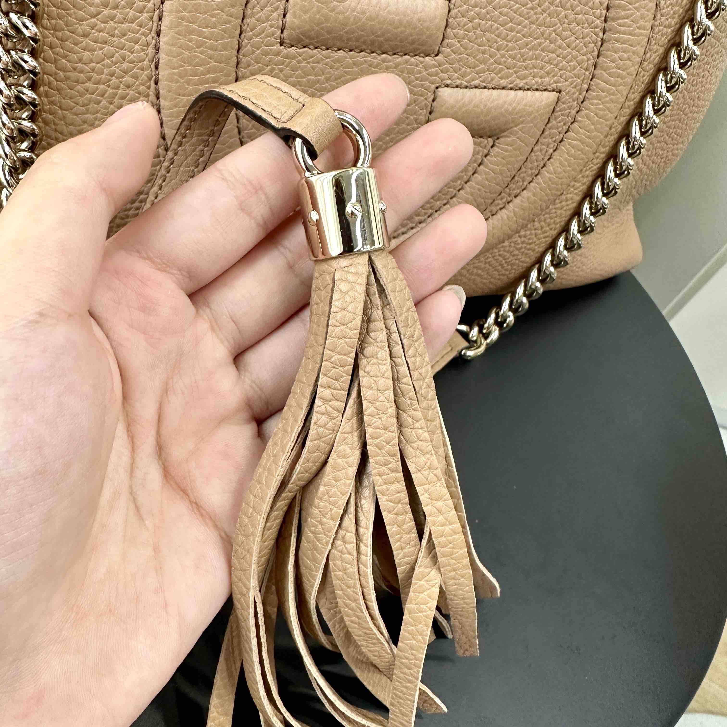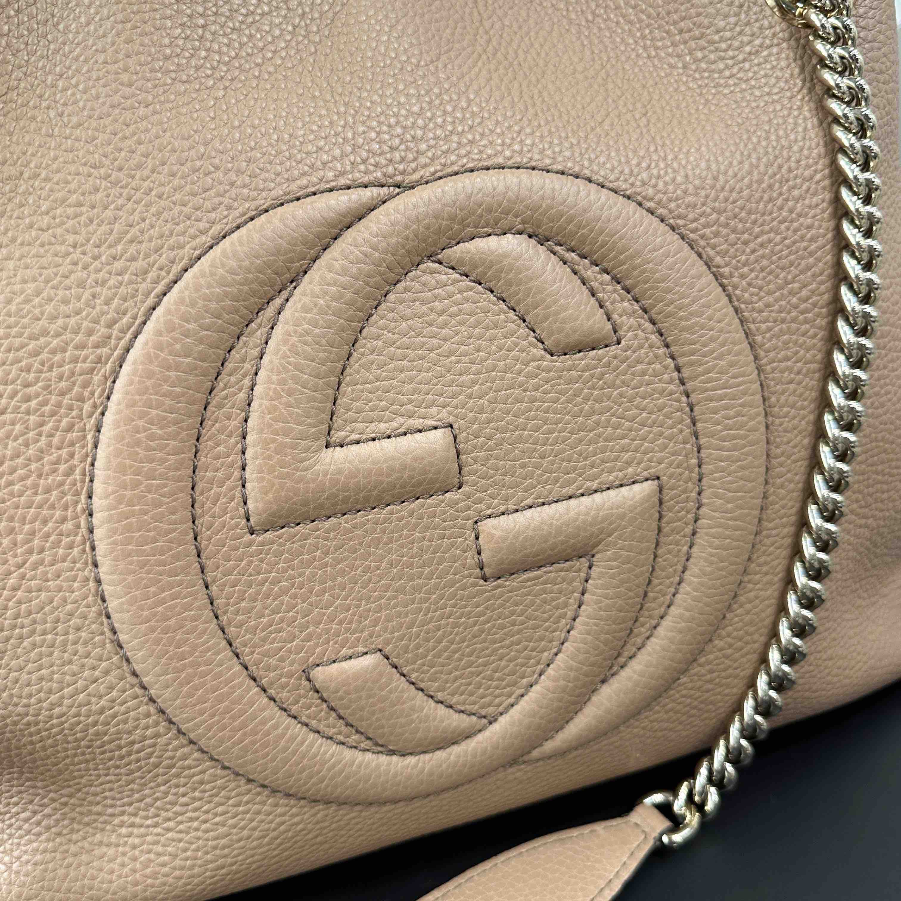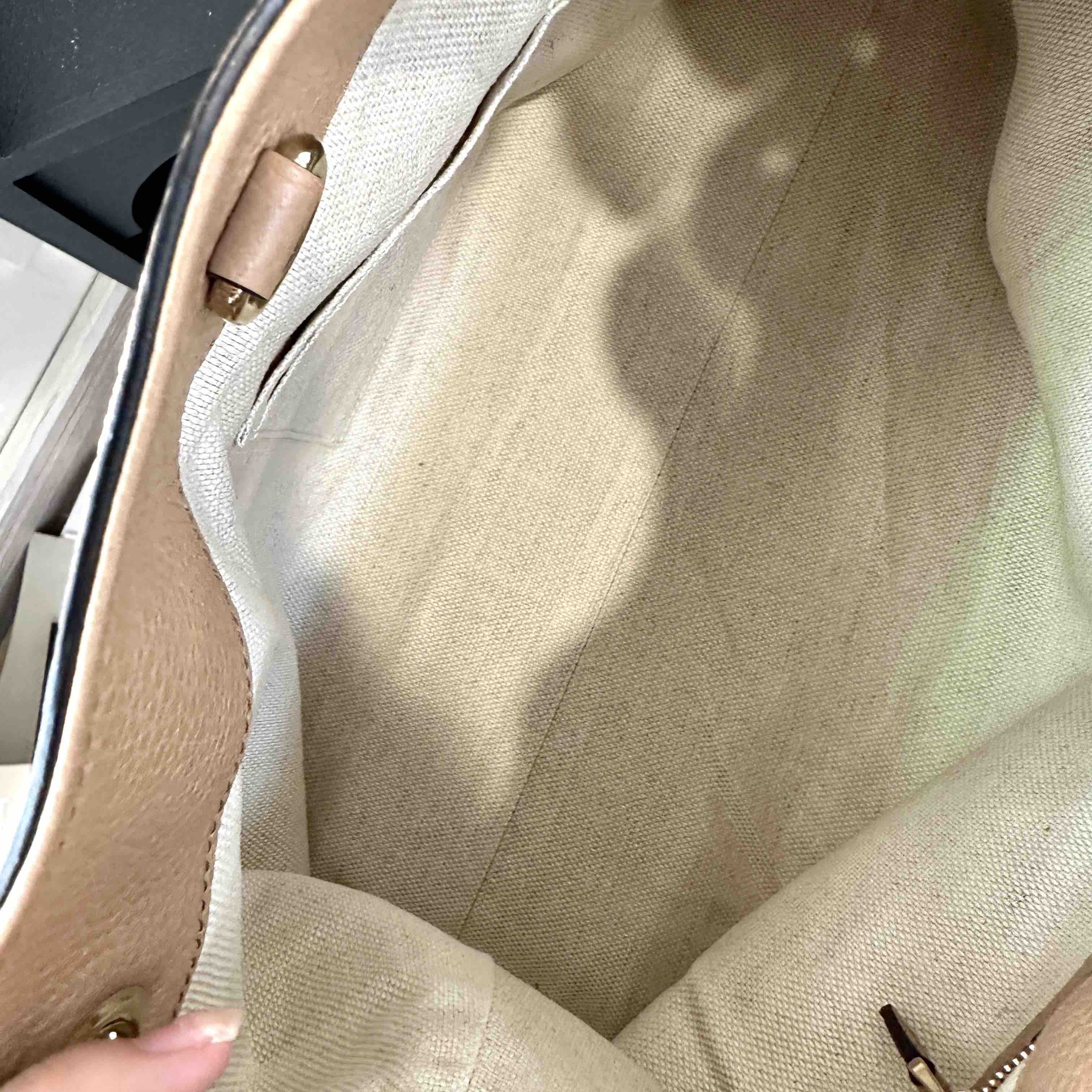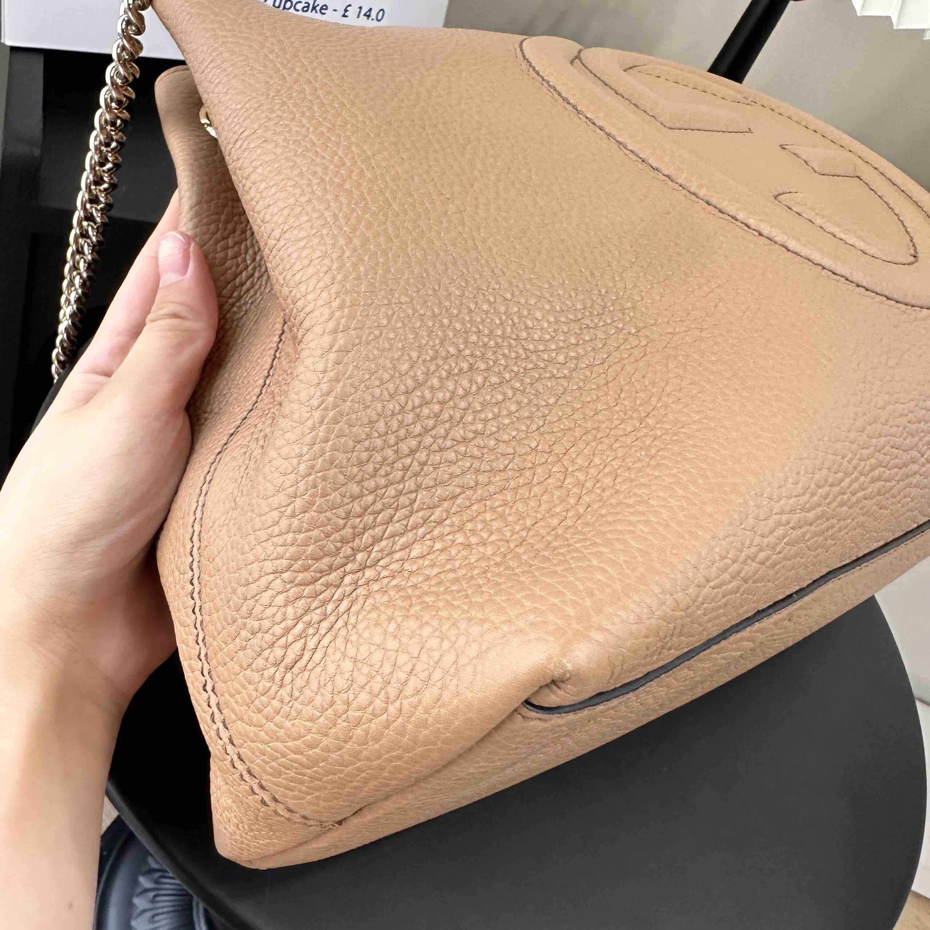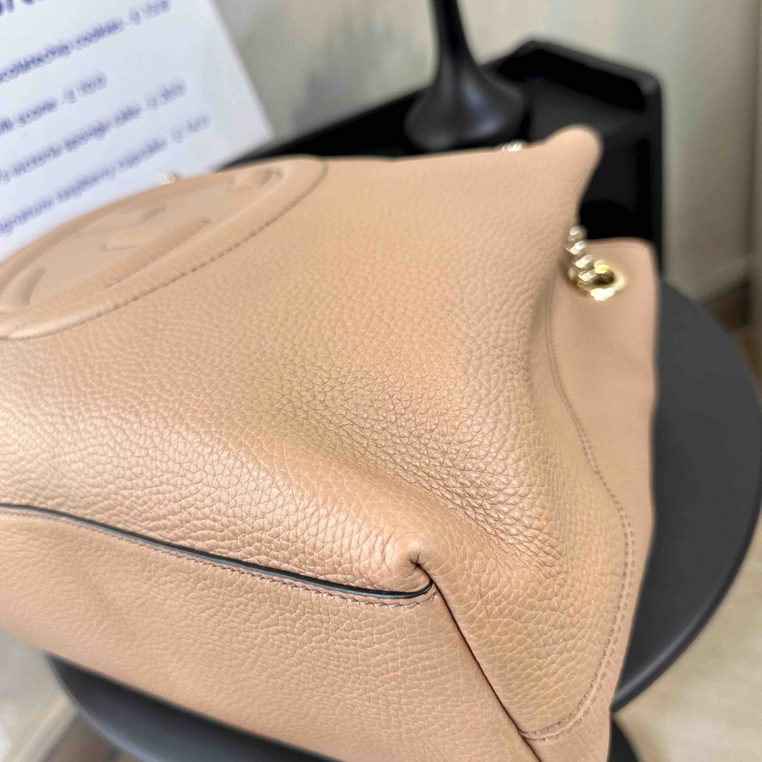 【商品描述】正品二手 Gucci soho 牛皮 沙漠色 tote包👏🏻97新 38×26 整体保存较好