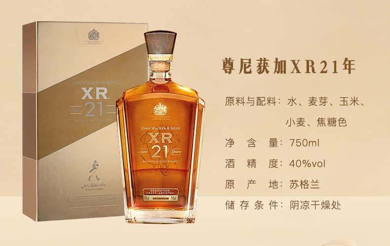 尊尼获加(JOHNNIE WALKER)甄选XR21年调配型威士忌750ml 苏格兰原装进口洋酒礼盒装高档送礼 尊尼获加甄选XR21年