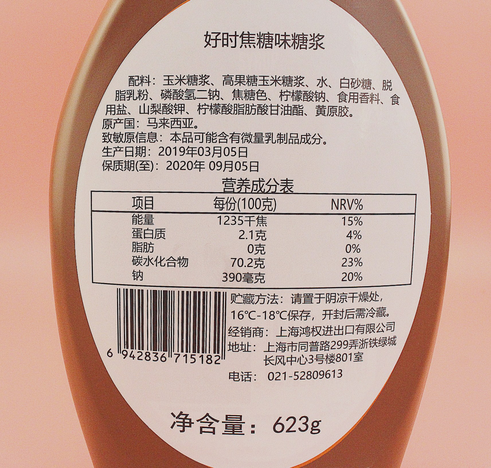 好时焦糖味糖浆 623g 焦糖味调味酱 甜品饮品原料