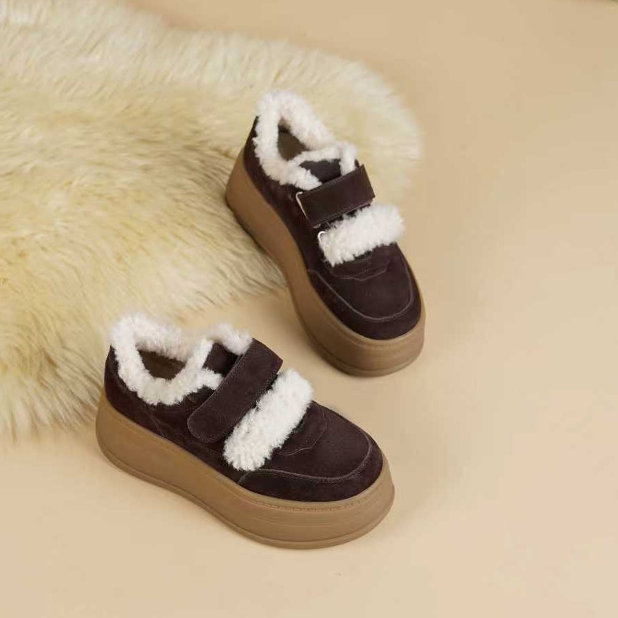 【牛剖层】西村名物2025年冬季新款舒适厚底防滑毛绒内里保暖毛毛鞋X26AM17691