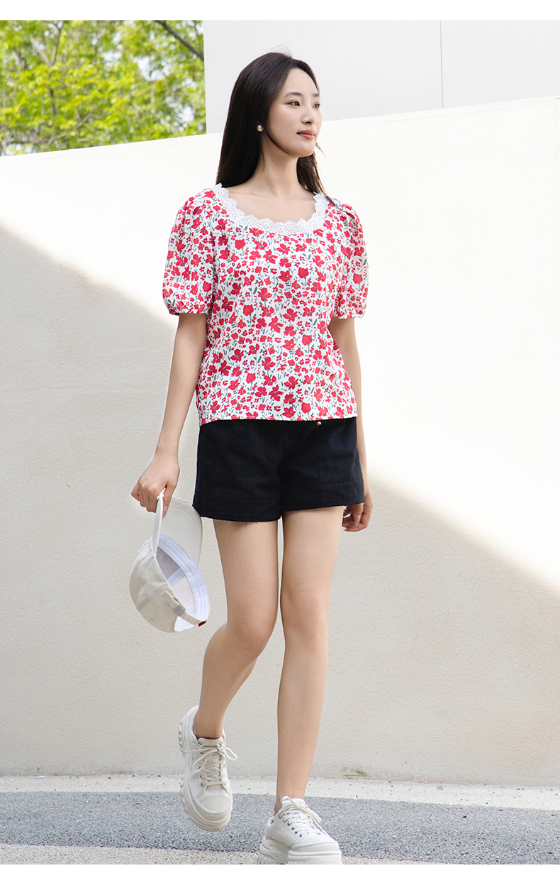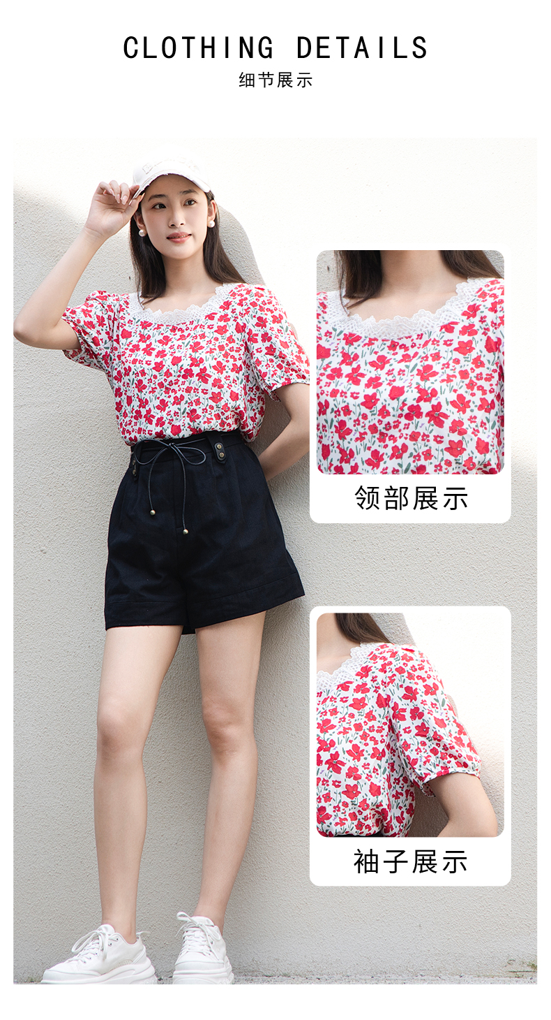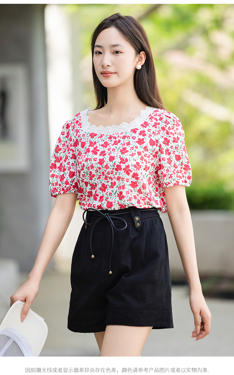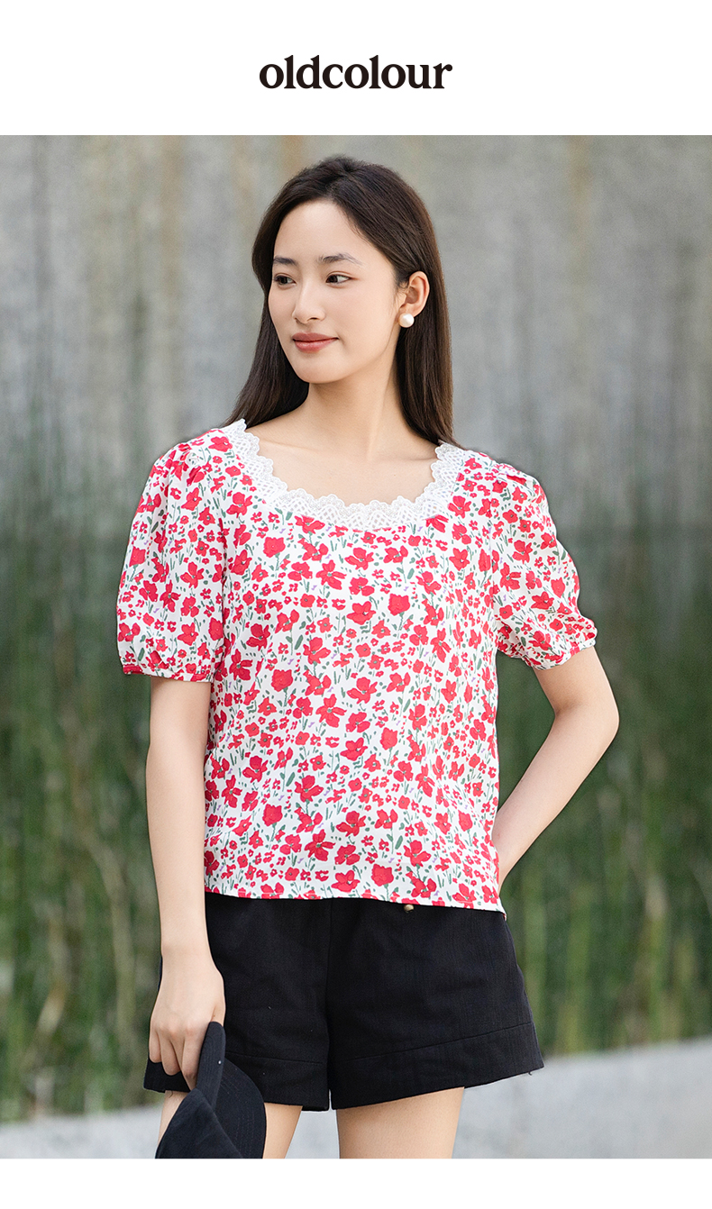 oldcolour夏季新款时尚休闲风碎花花边领套头衫女GP21011732