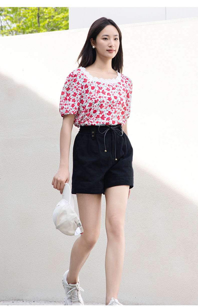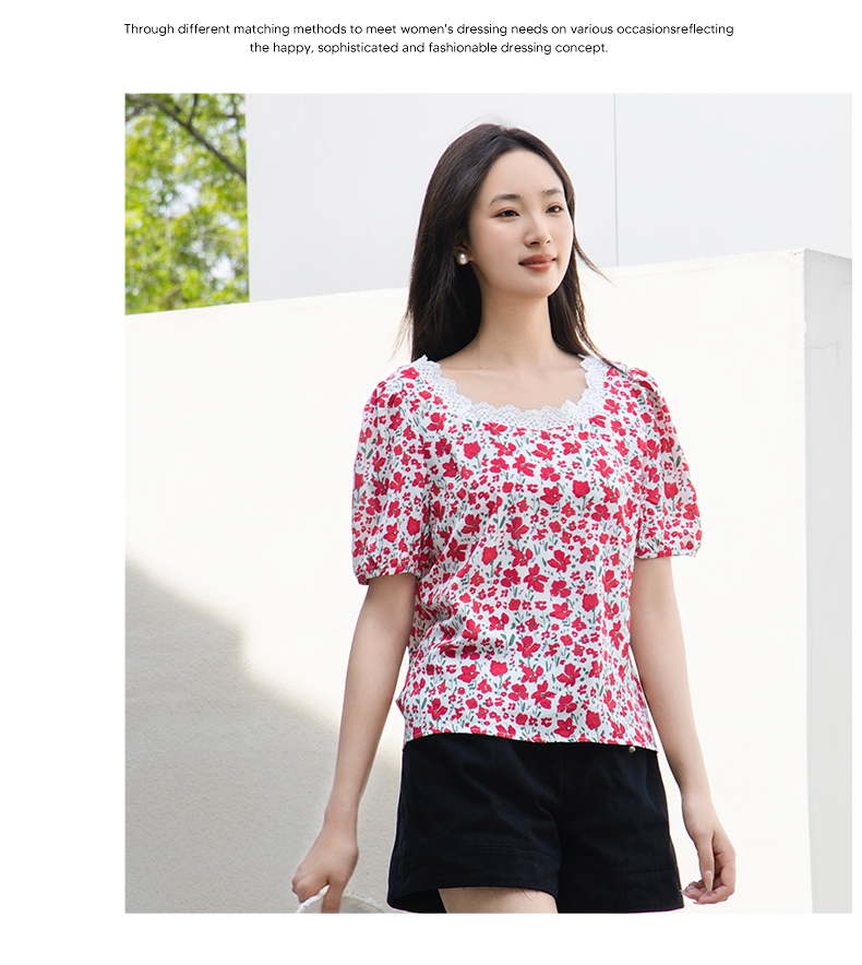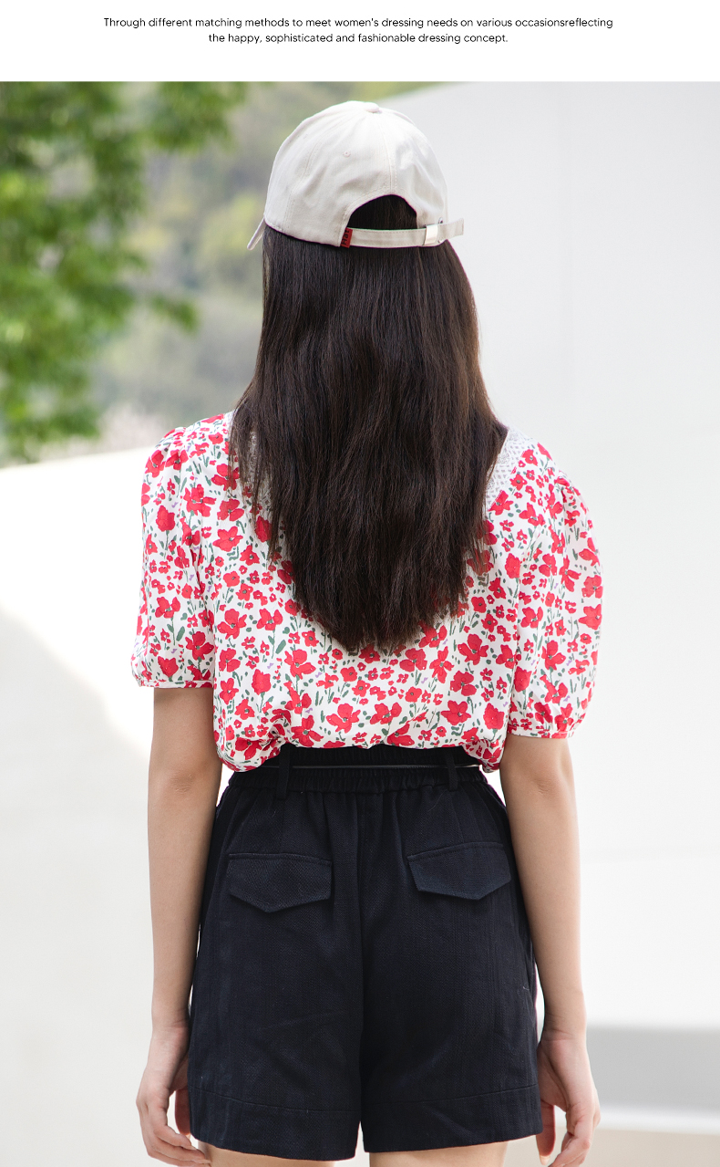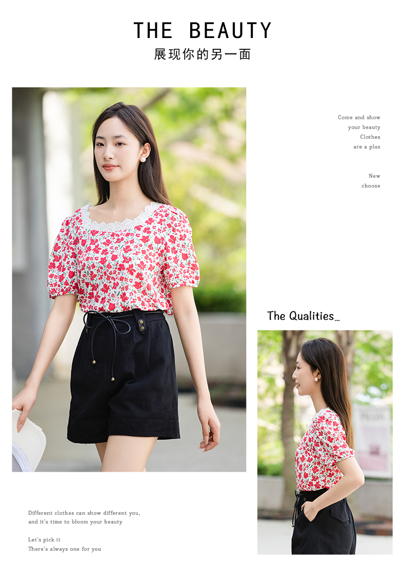 oldcolour夏季新款时尚休闲风碎花花边领套头衫女GP21011732
