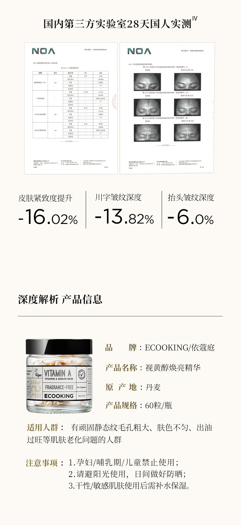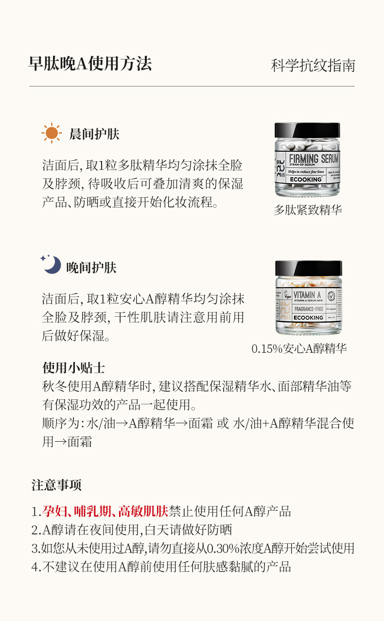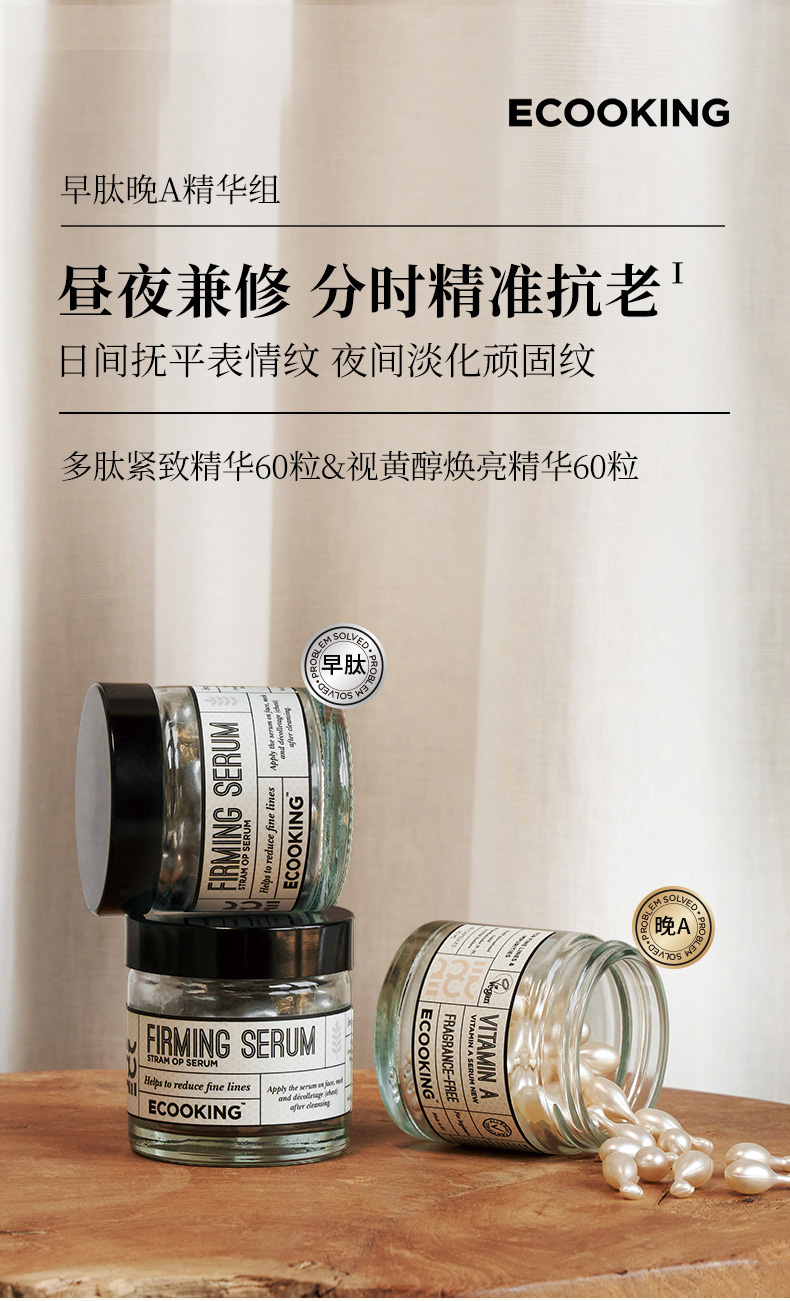 品牌直发 ECOOKING 依蔻庭 日夜紧致焕亮抗衰套组(视黄醇焕亮精华胶囊 60粒(0.15%浓度)+多肽紧致精华胶囊 60粒)
