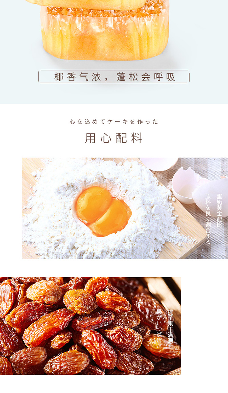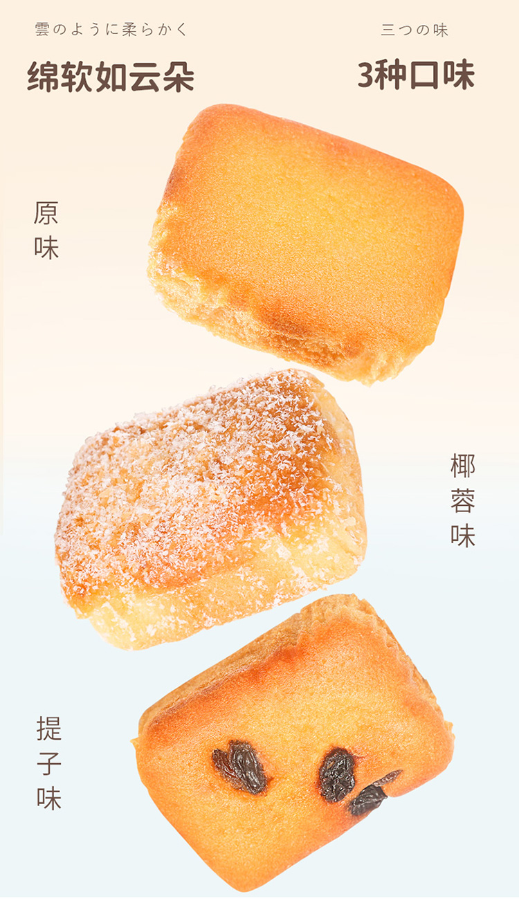 云棉蛋糕 松软可口 300g/箱 约9枚 绵密的口感 原味 椰子味 提子味 包邮