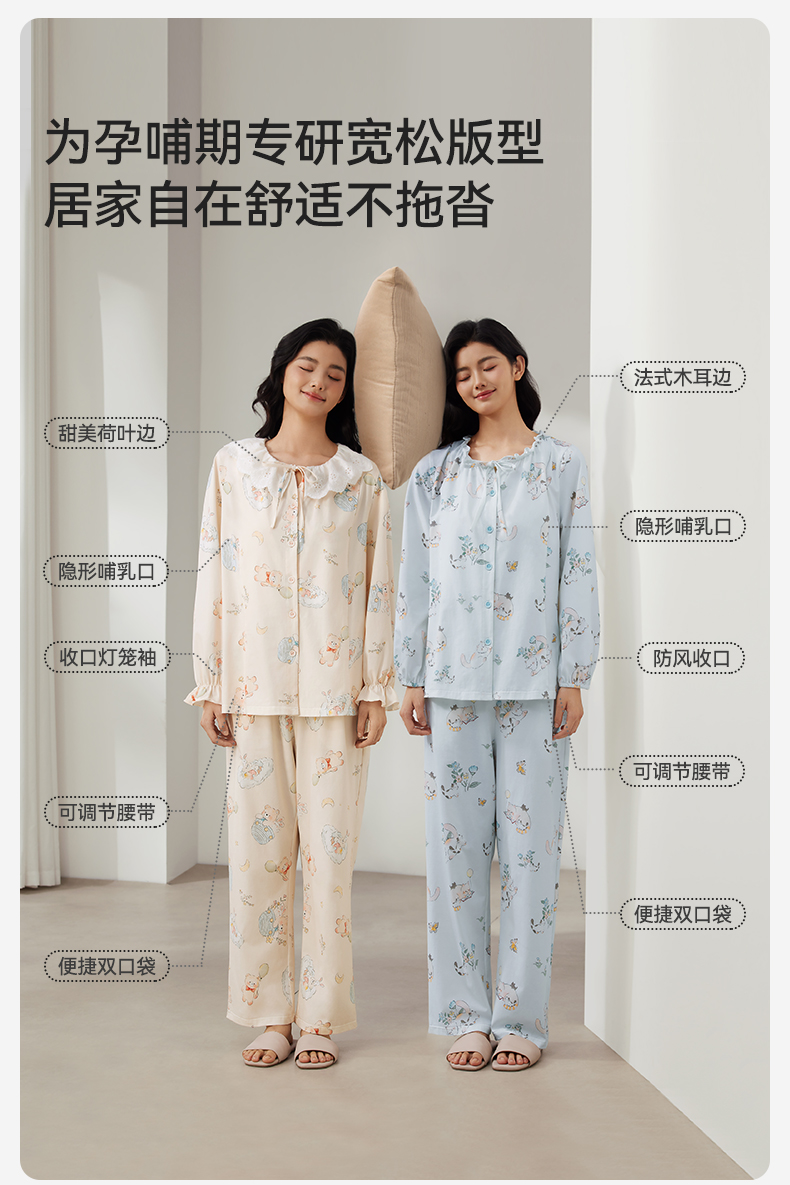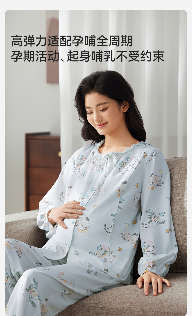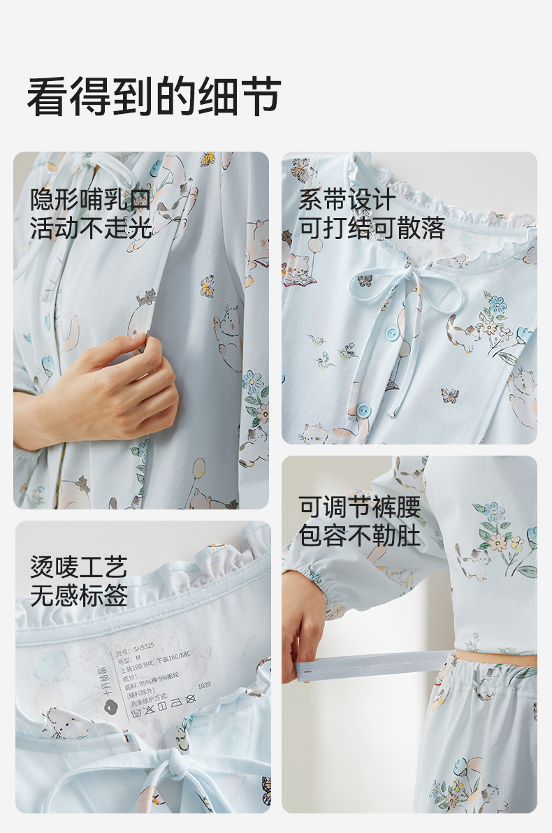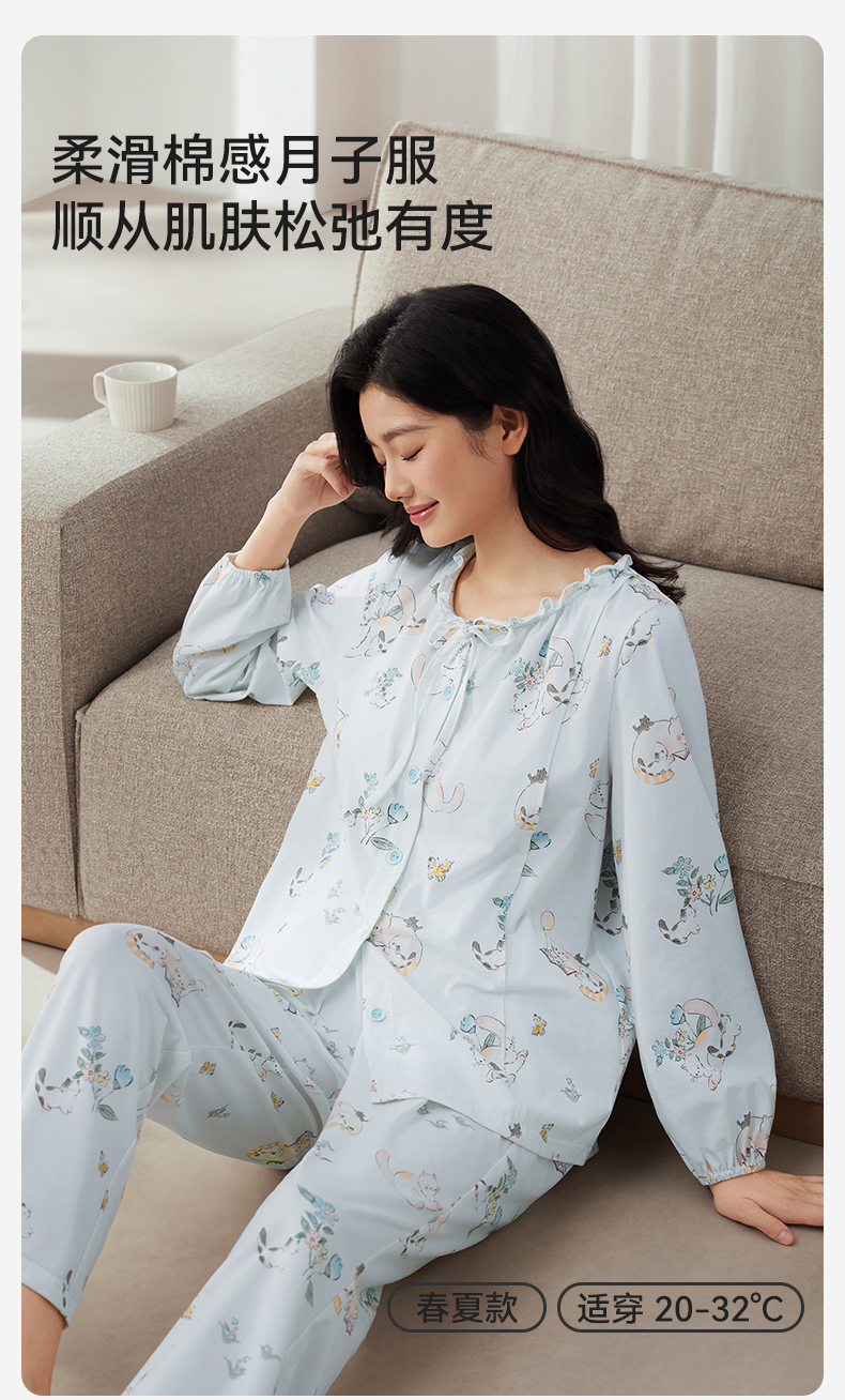 【满99-20/199-50】纯棉月子服孕妇产后喂奶哺乳睡衣甜梦物语家居服套装春季