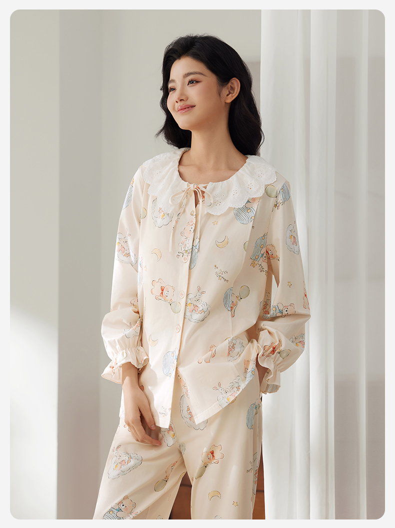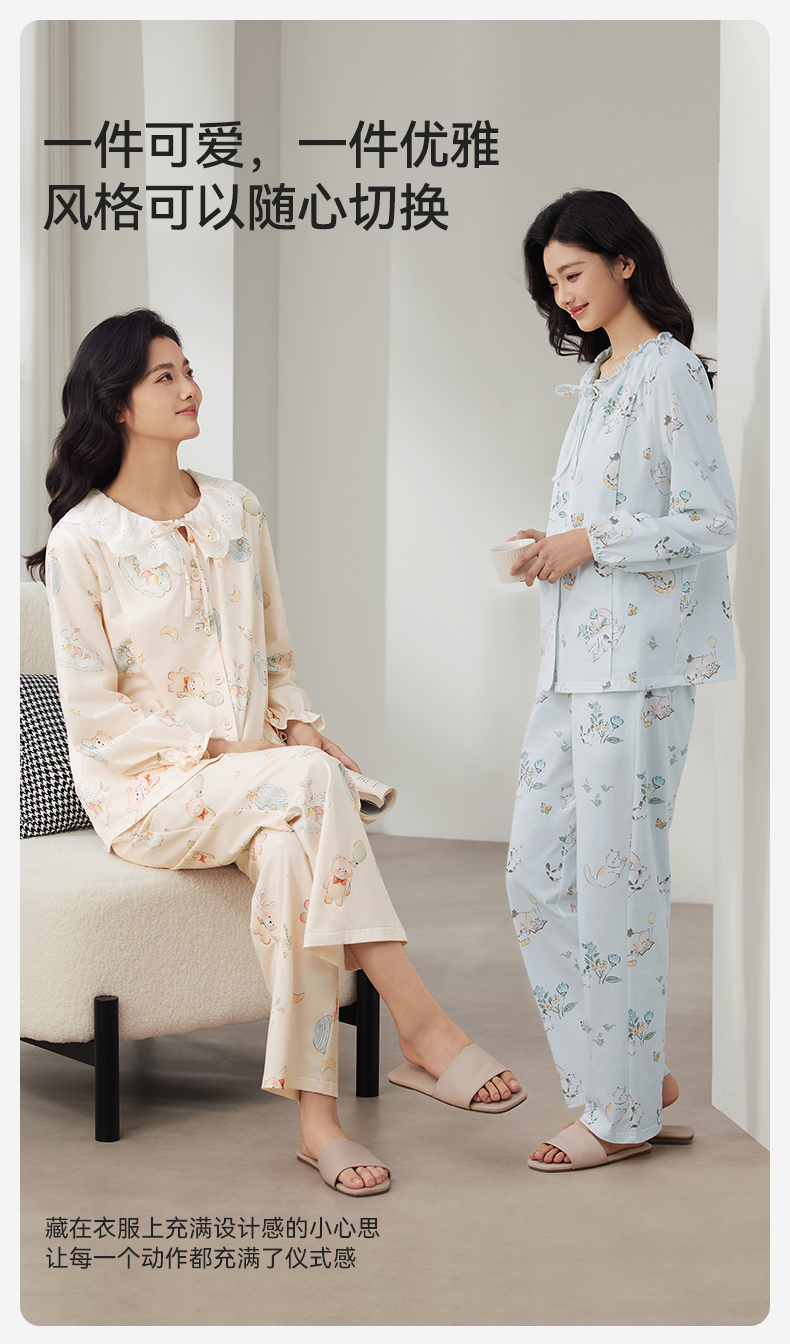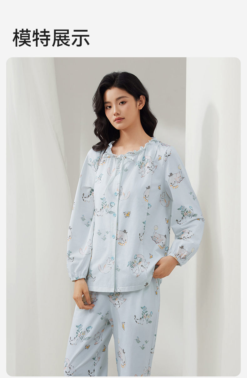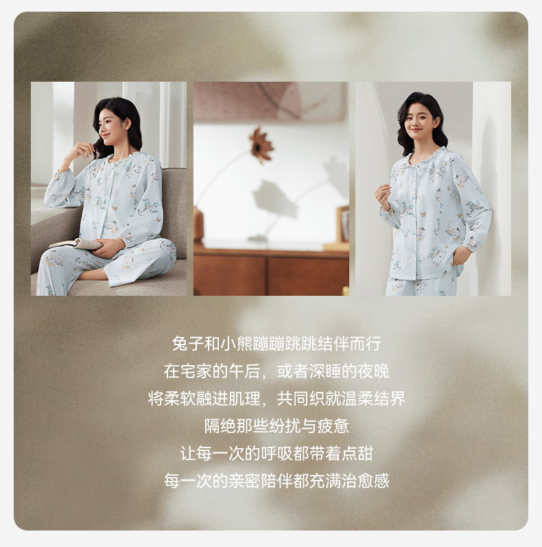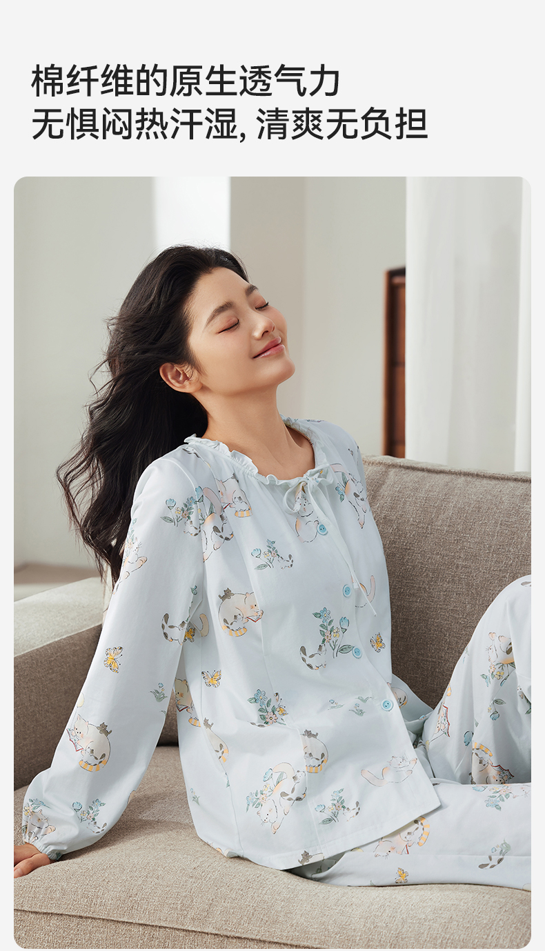 【满99-20/199-50】纯棉月子服孕妇产后喂奶哺乳睡衣甜梦物语家居服套装春季