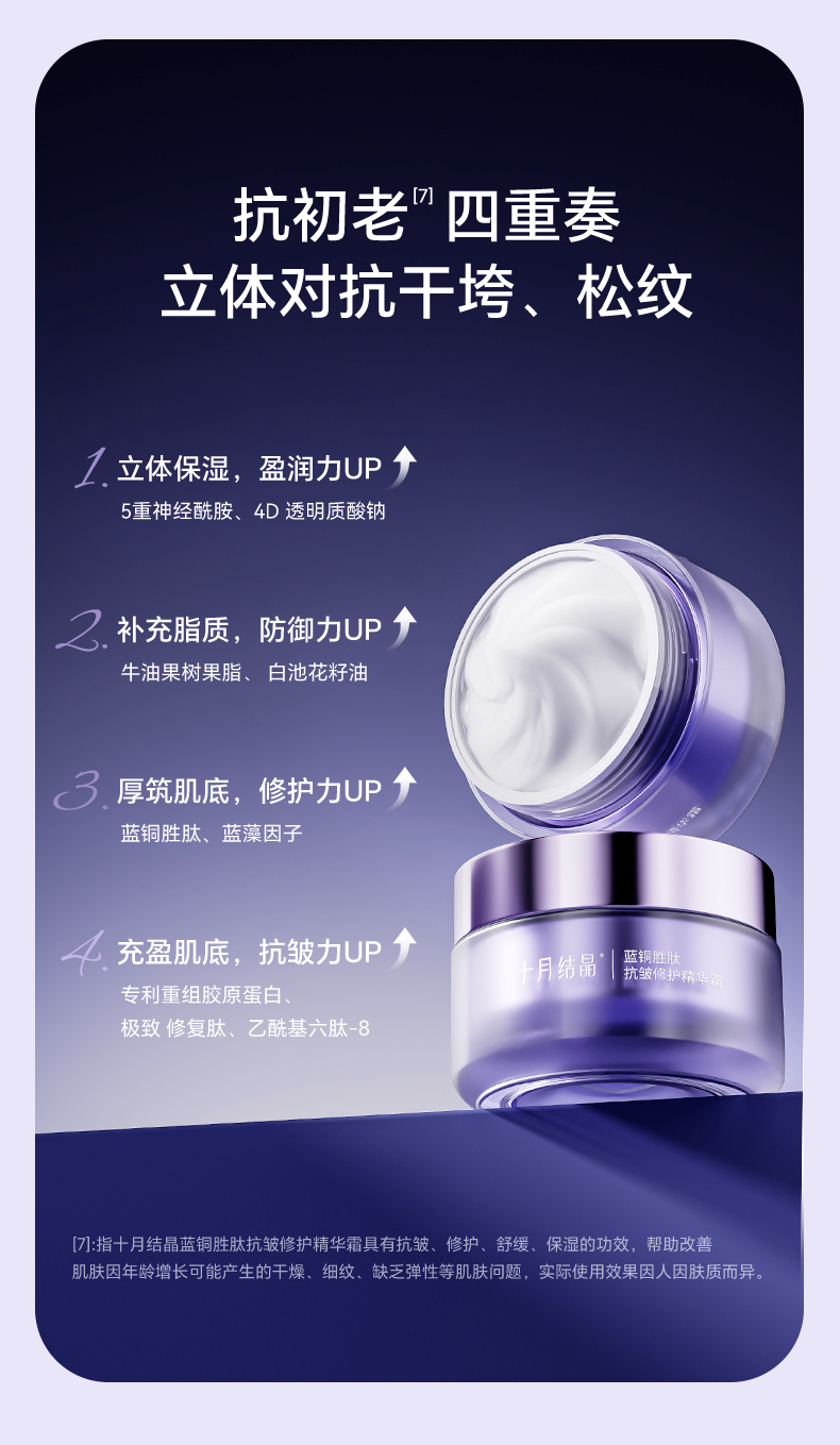 【满99-20/199-50】双蓝系列保湿精华霜清爽不油腻抗皱修护面