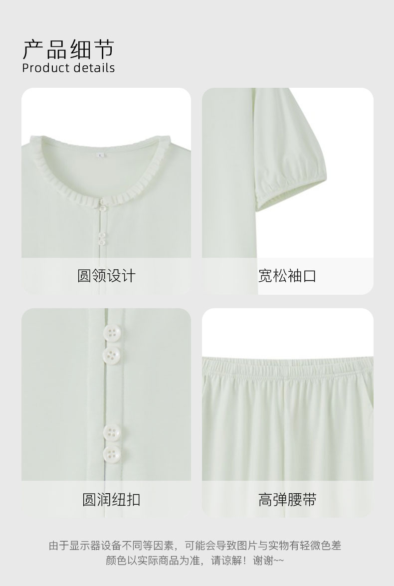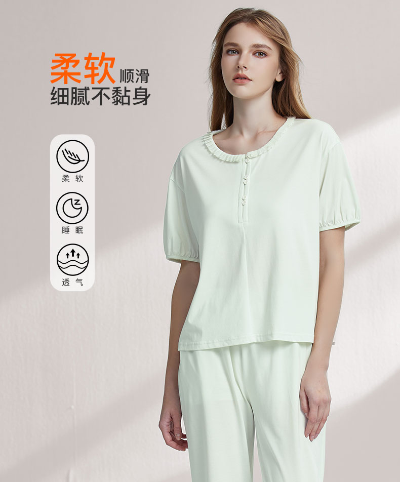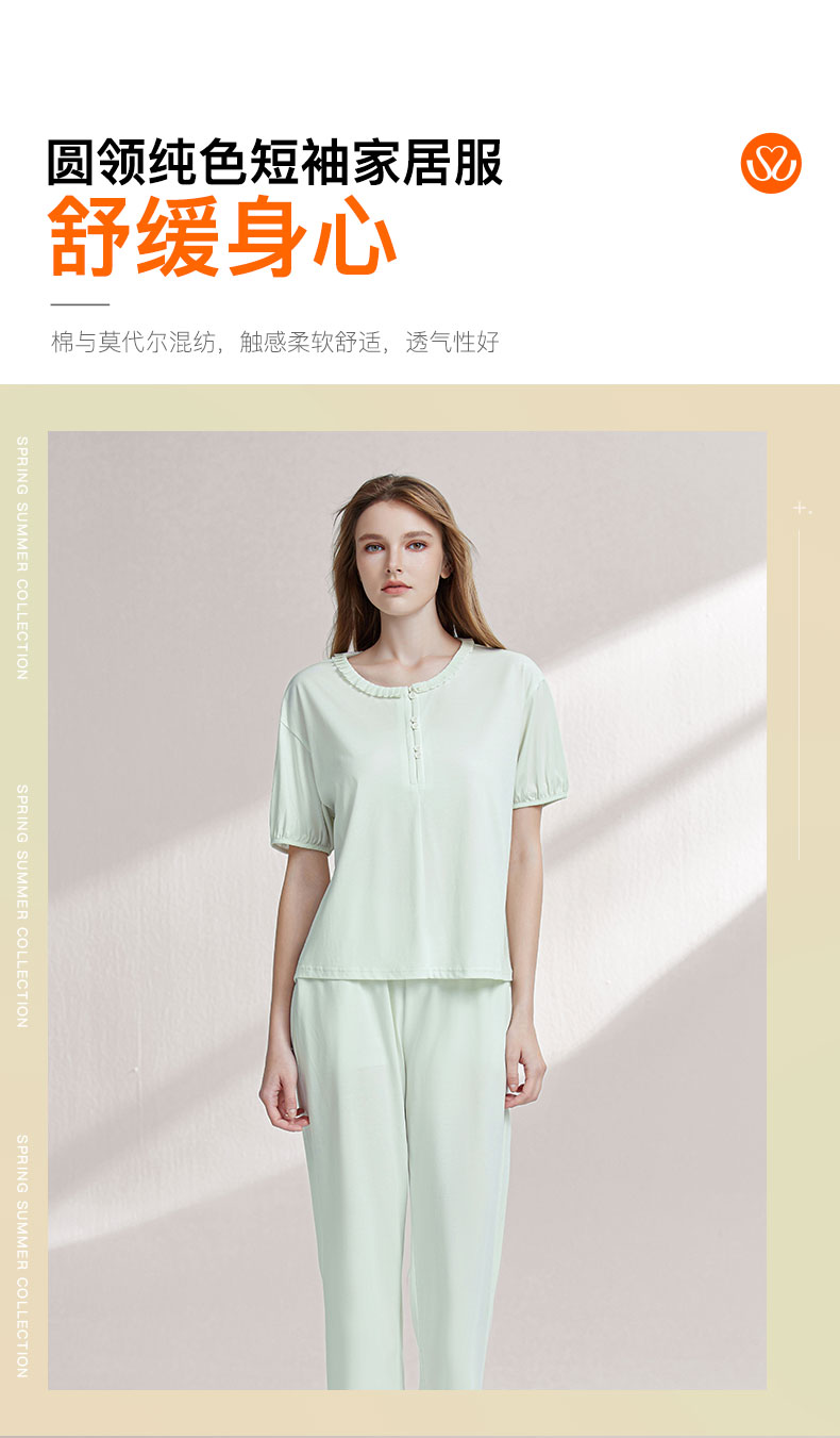 【7.5折限时特惠】【秀黛】女圆领简雅短袖套装棉丝滑呵护女士夏季睡衣家居服套装W2551033T【门店同款】