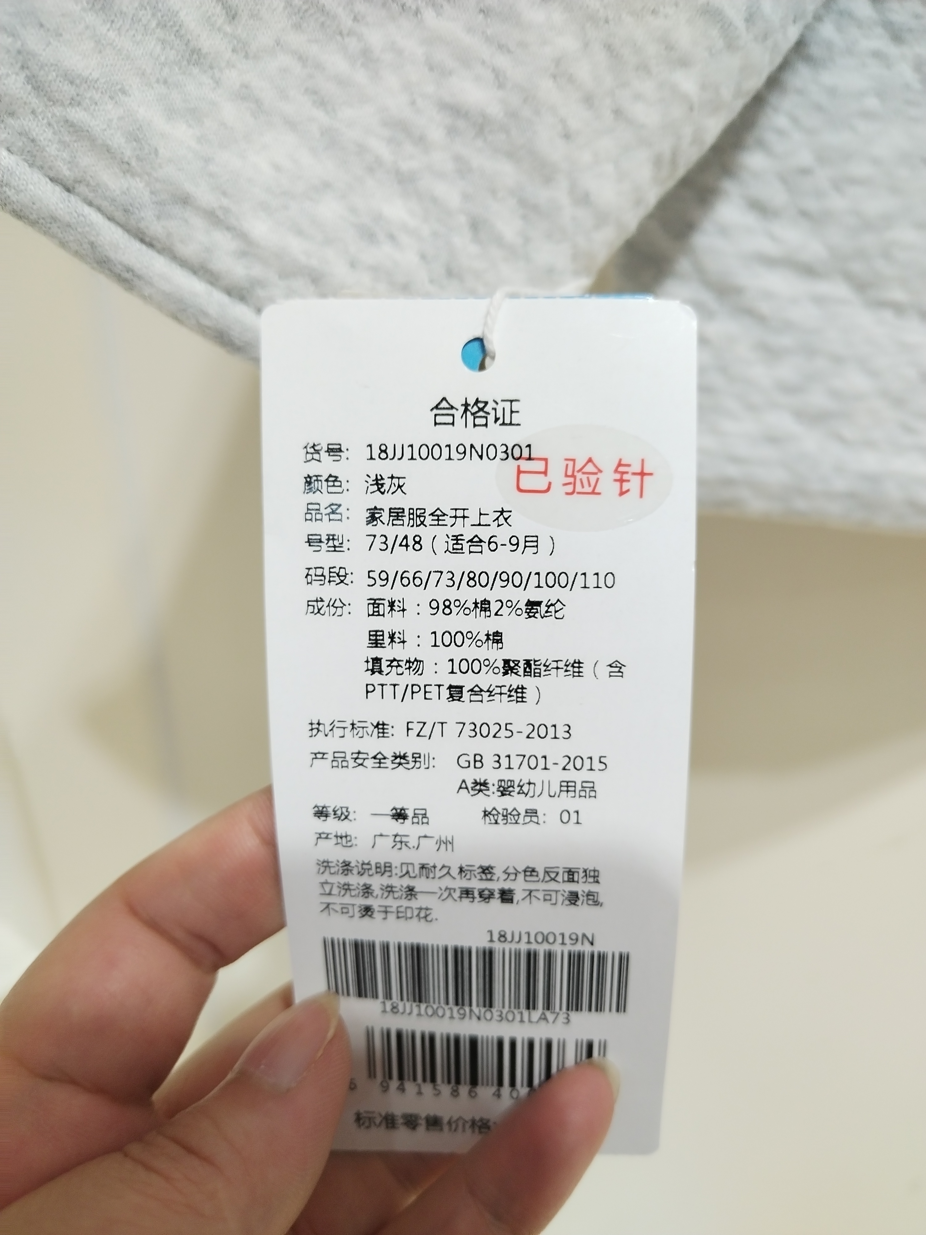 babybean亲豆家居服全开上衣18JJ10019N0301