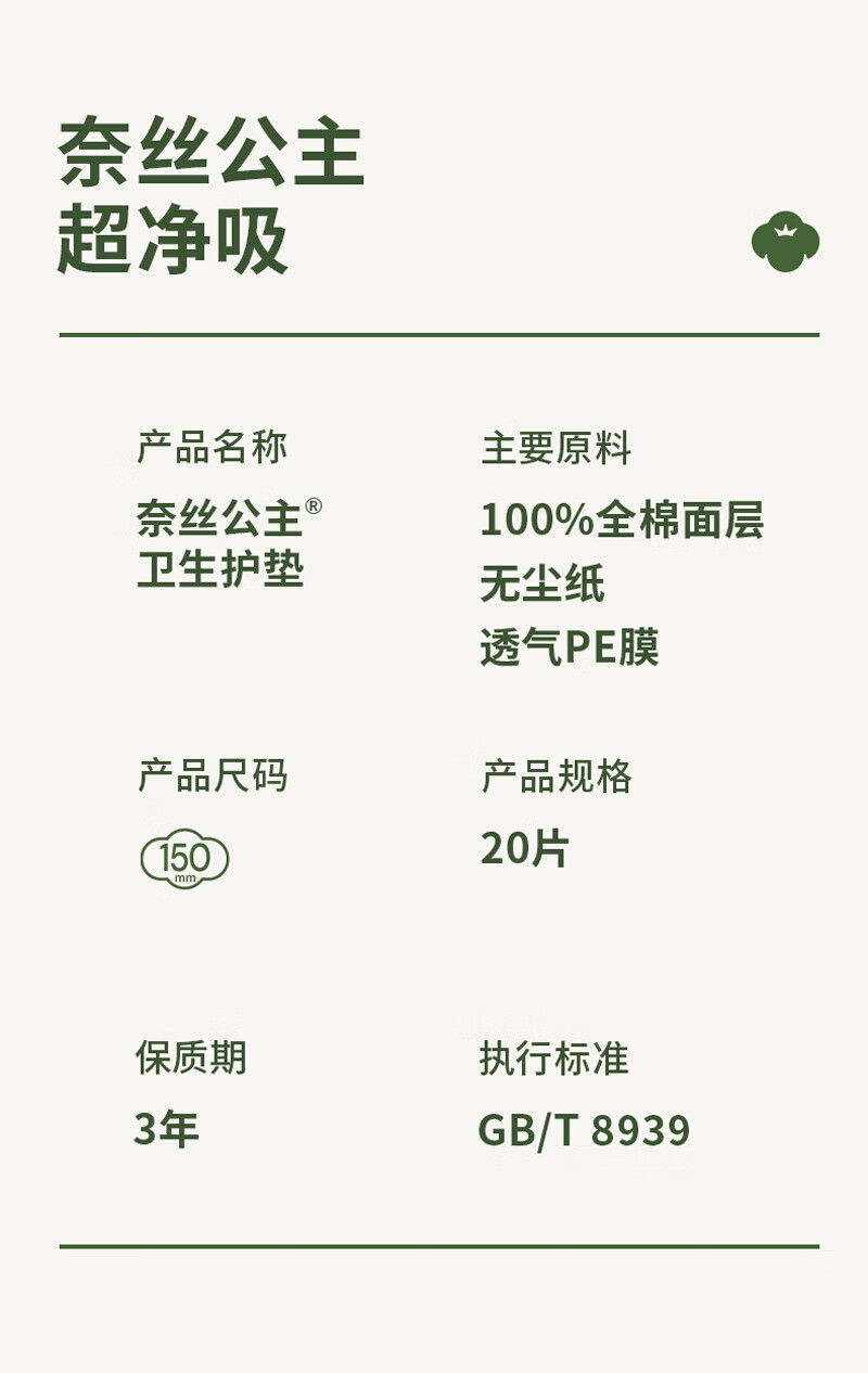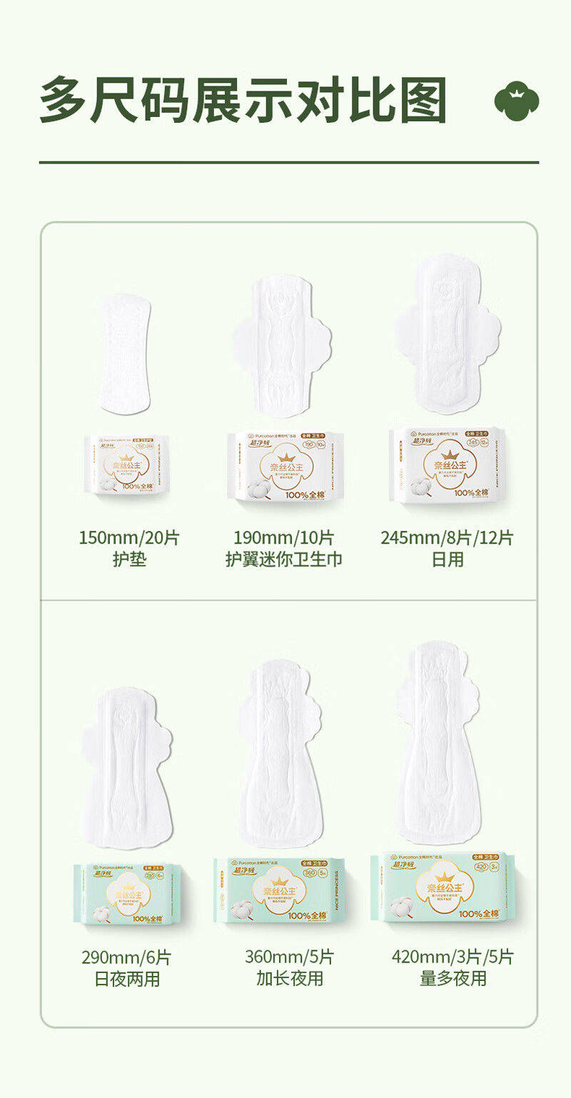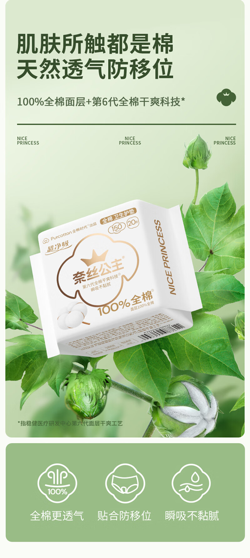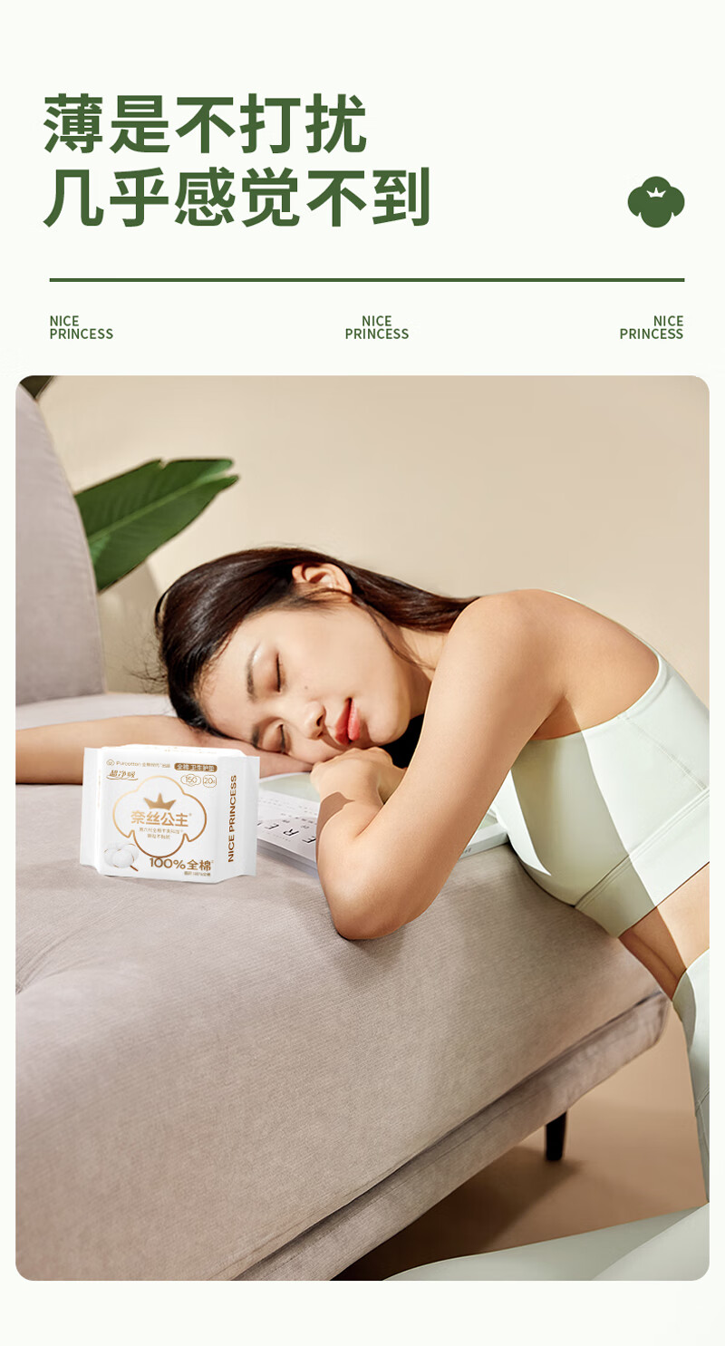 全棉时代奈丝公主超净吸系列100%全棉卫生护垫 150mm 20片*36包