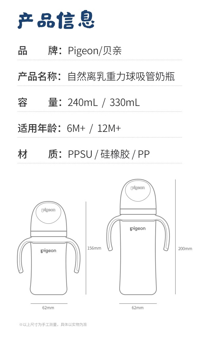 贝亲PIGEON自然离乳重力球吸管奶瓶330ml(12月+)-格鲁比第12届孕婴童展(20周年庆)专享秒杀,12月13日-12月14日上饶国际大酒店活动现场核销,超时未核销自动退款