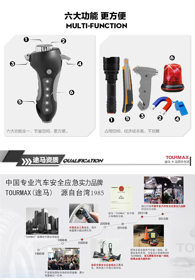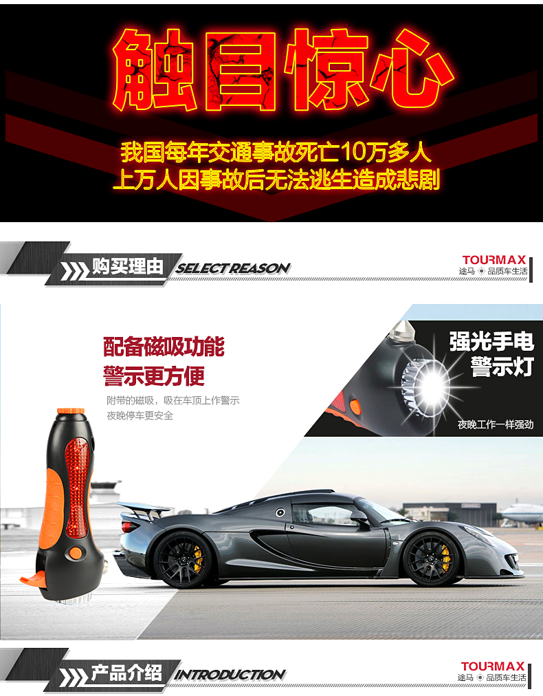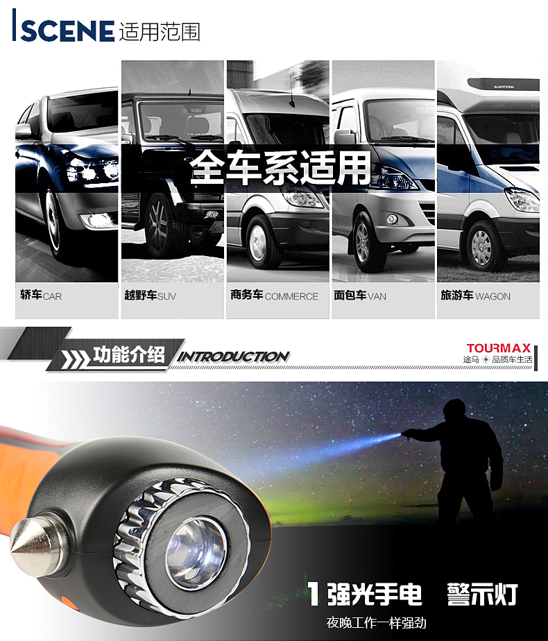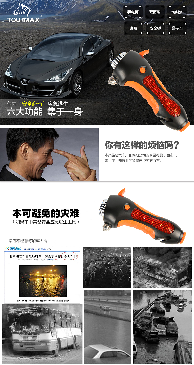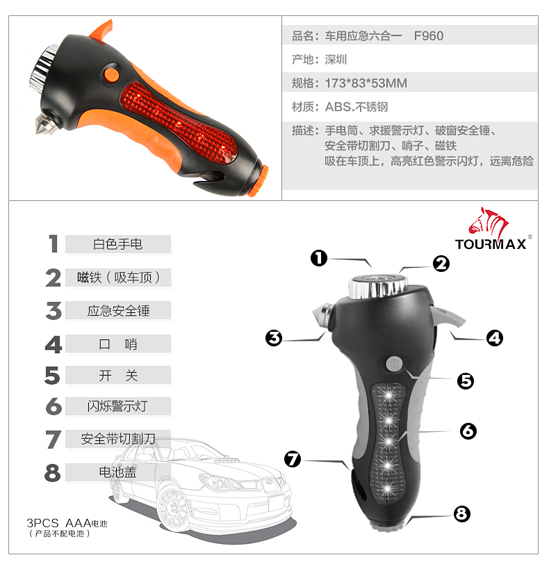 途马 安全锤手电警示灯车用应急六合一 F960 客户关系维护
