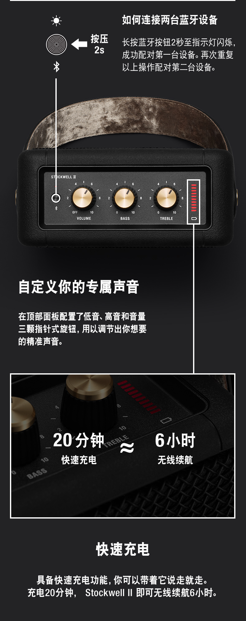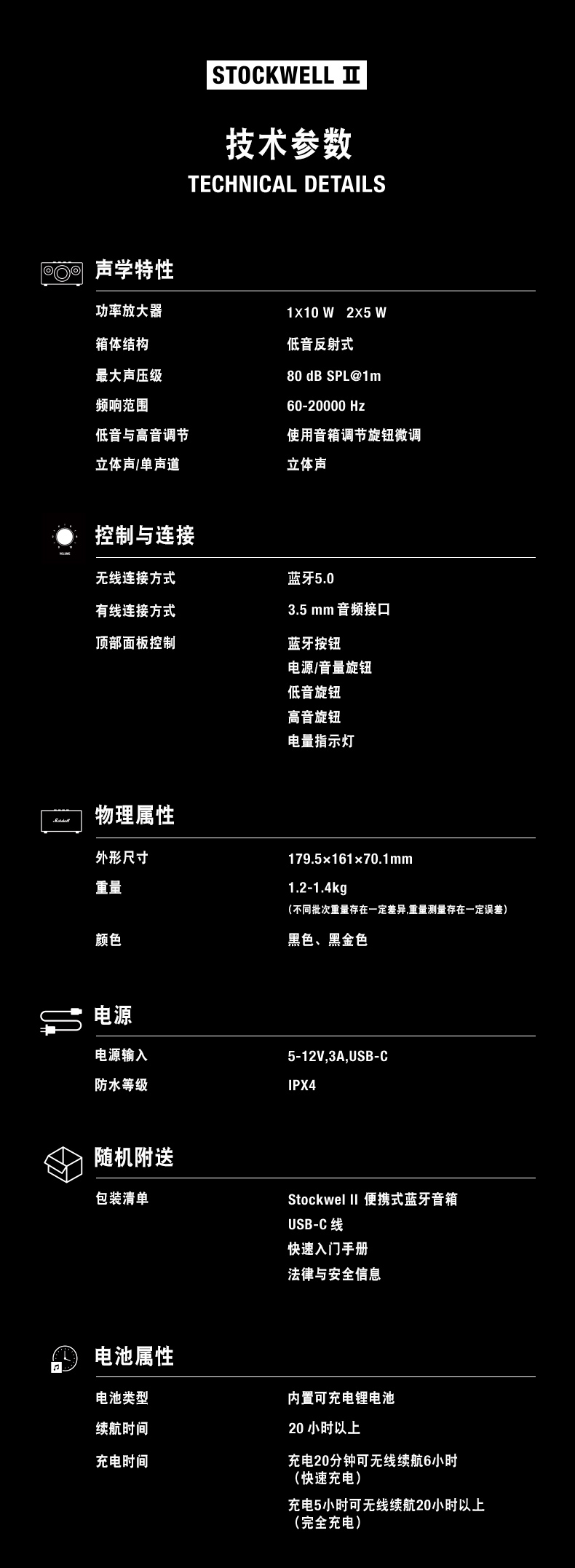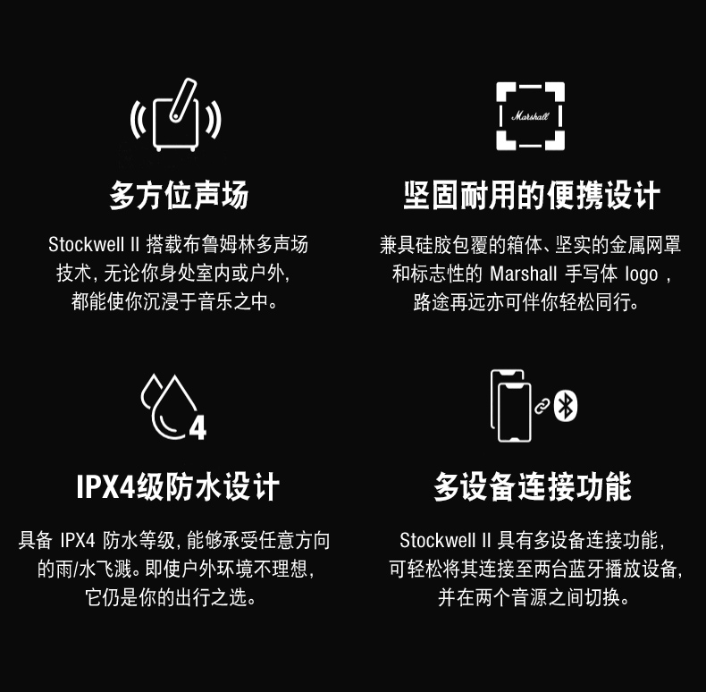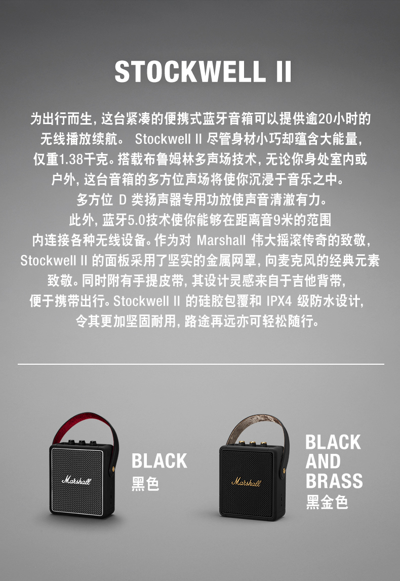 马歇尔Marshall 音箱 Stockwell II 黑色( 3C 版 )MHP-91898