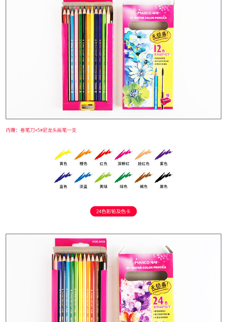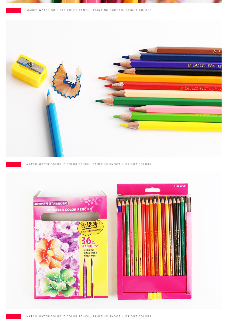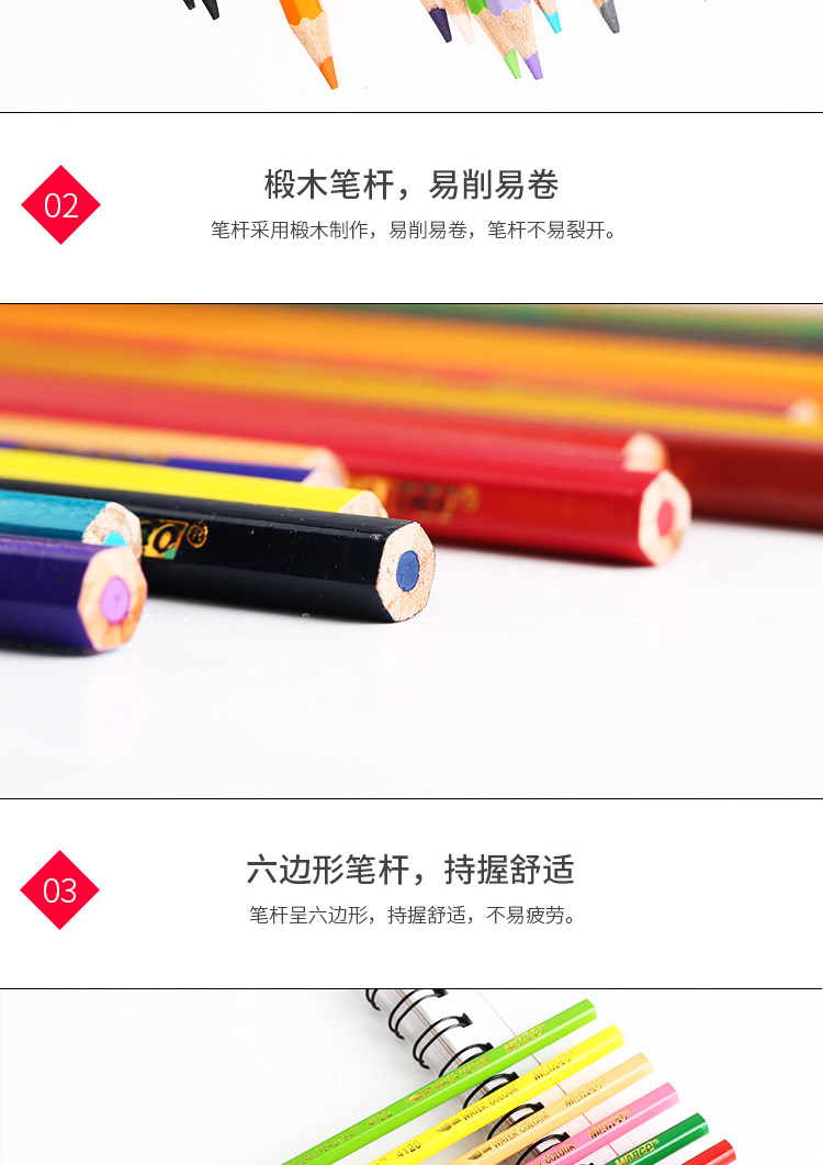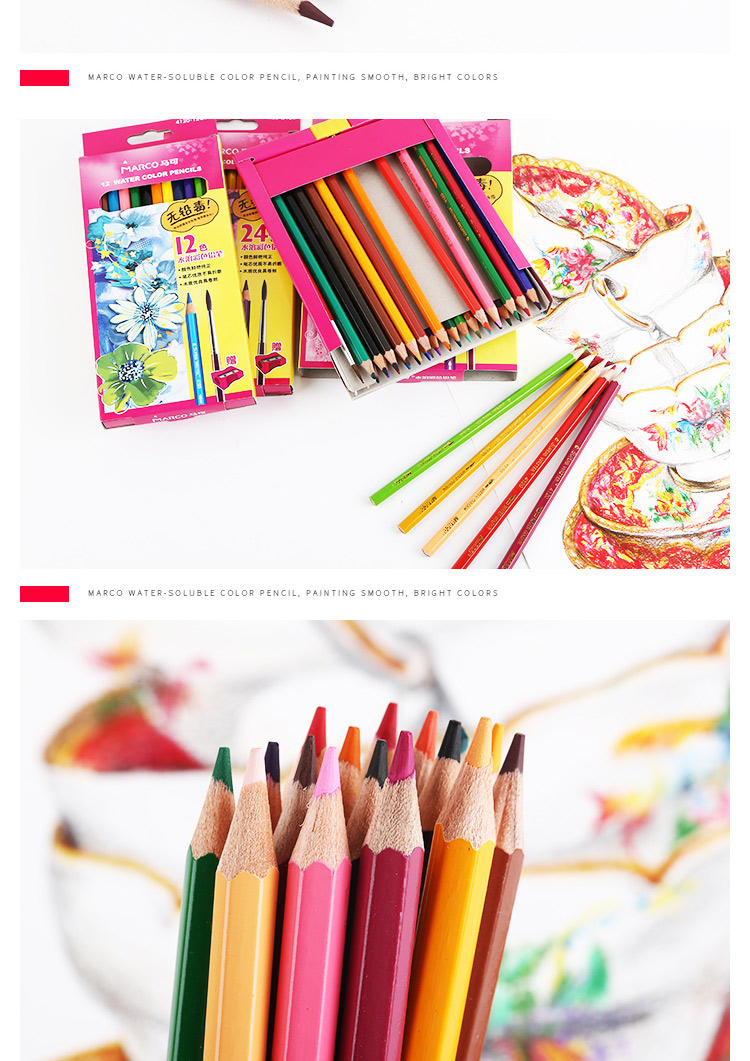 马可水溶性彩色铅笔六角儿童学生手绘画笔涂色填色