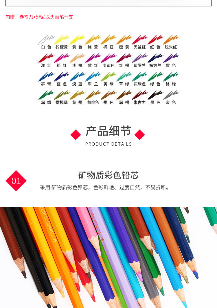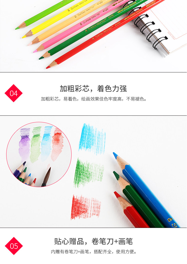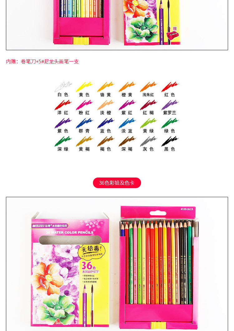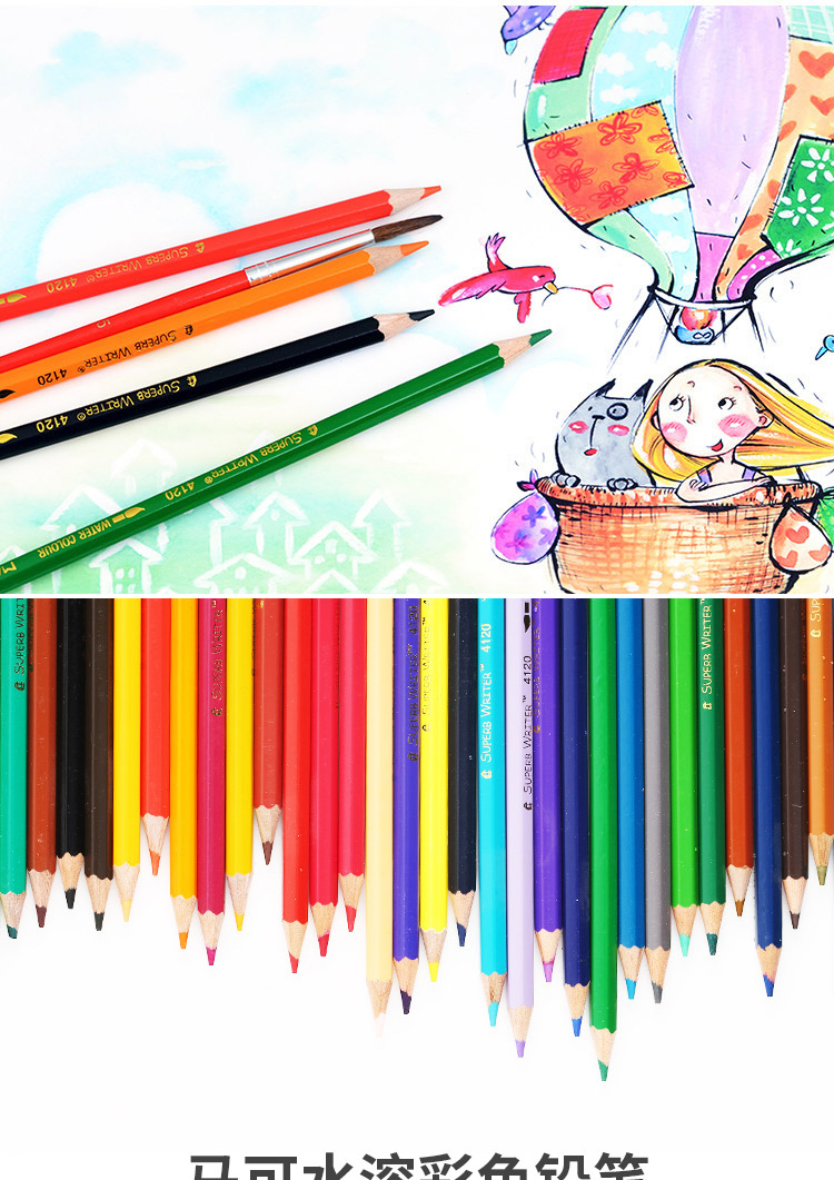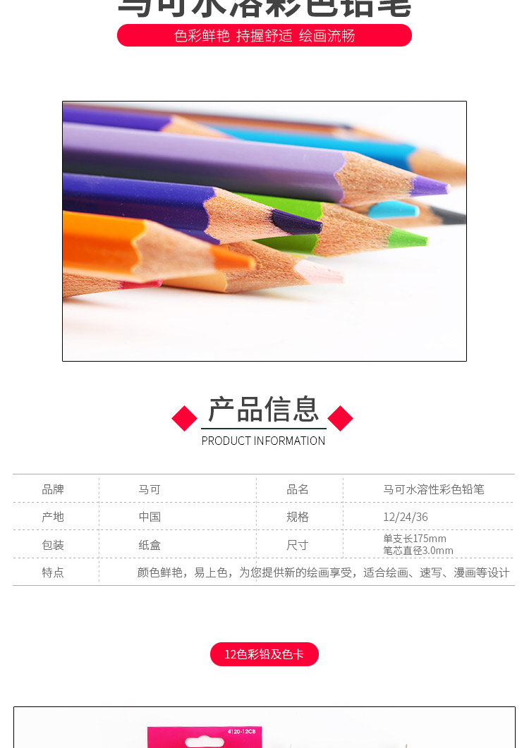 马可水溶性彩色铅笔六角儿童学生手绘画笔涂色填色
