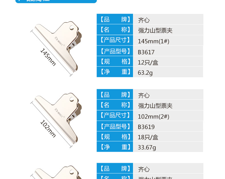 齐心山形夹1号/B3617