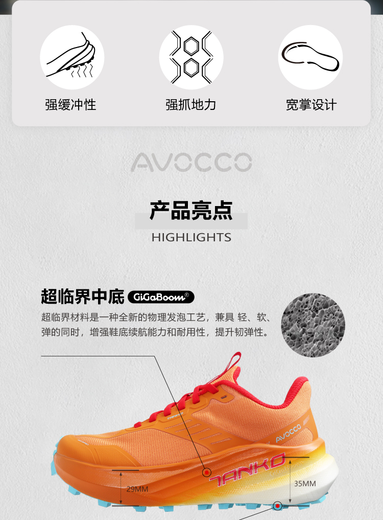 AVOCCO翱戈TANKO坦克 宽掌缓冲越野跑鞋超临界中底Vibram鞋底徒步鞋