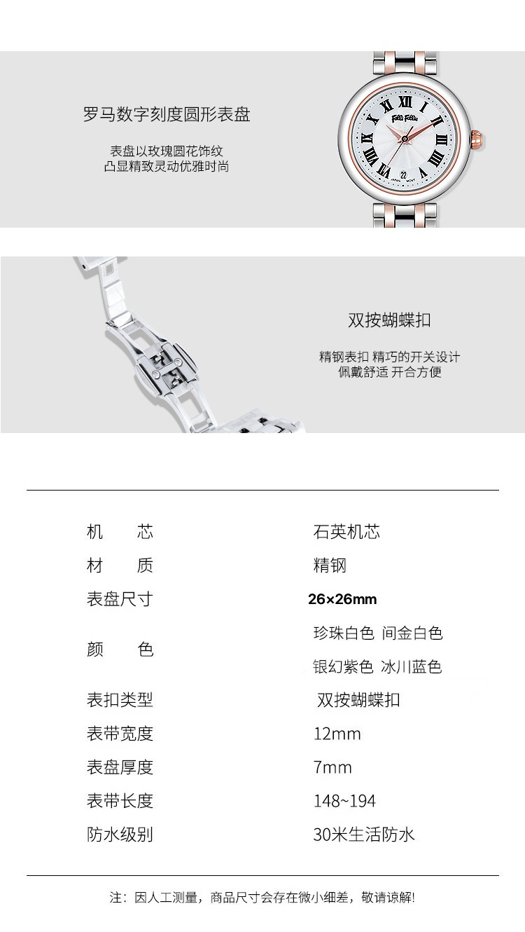 材质:手表:316不锈钢表壳、进口石英机芯;饰品:贝珠