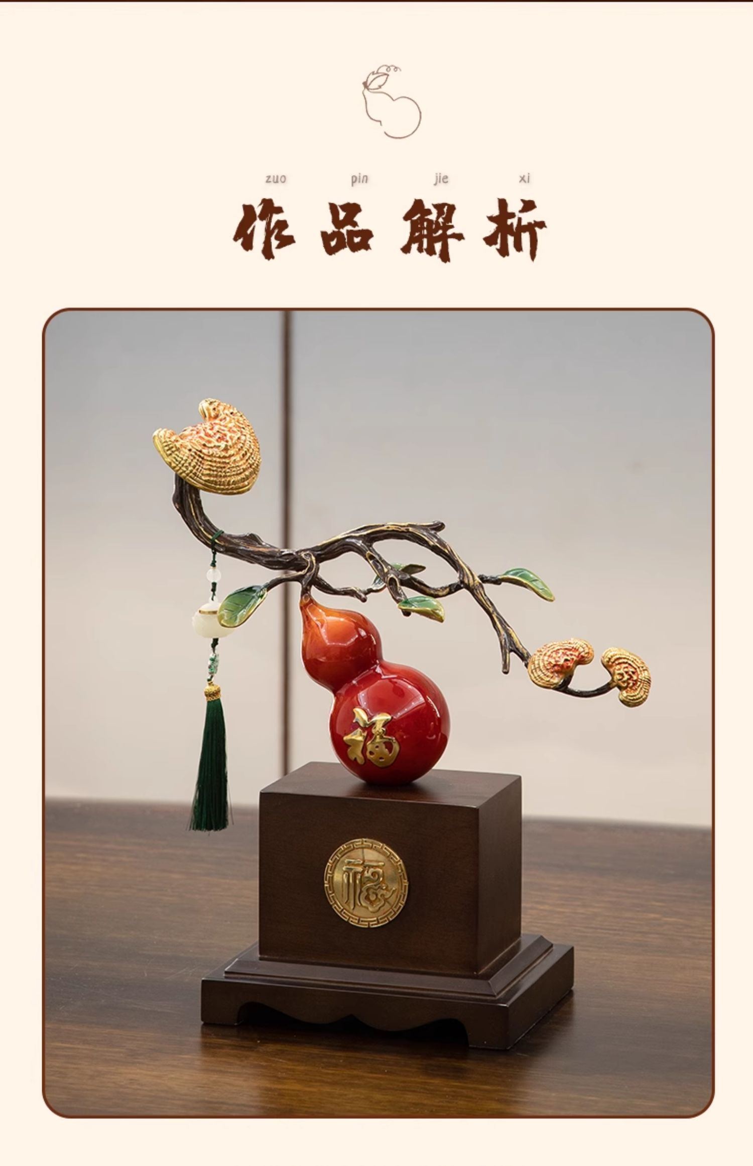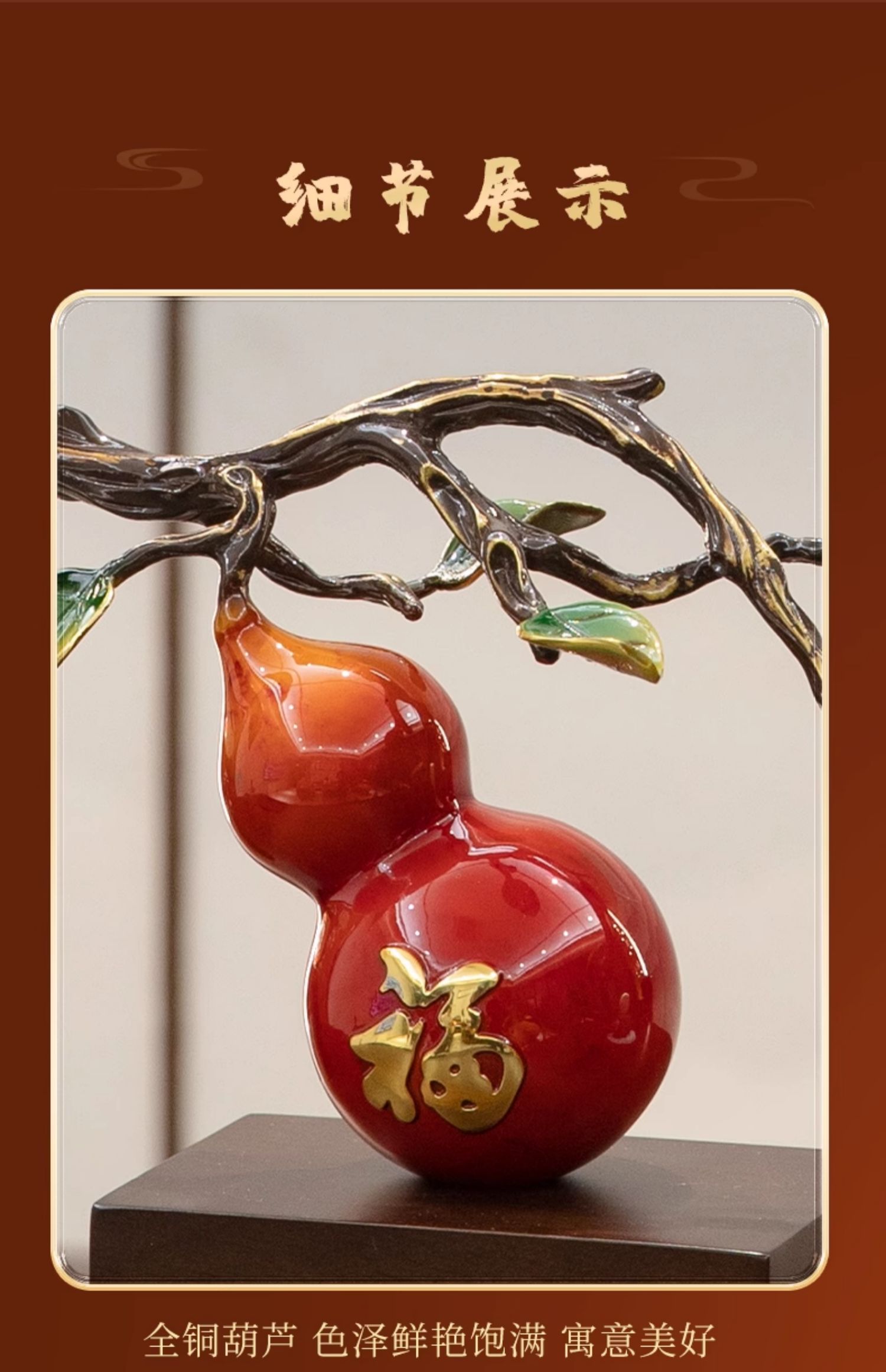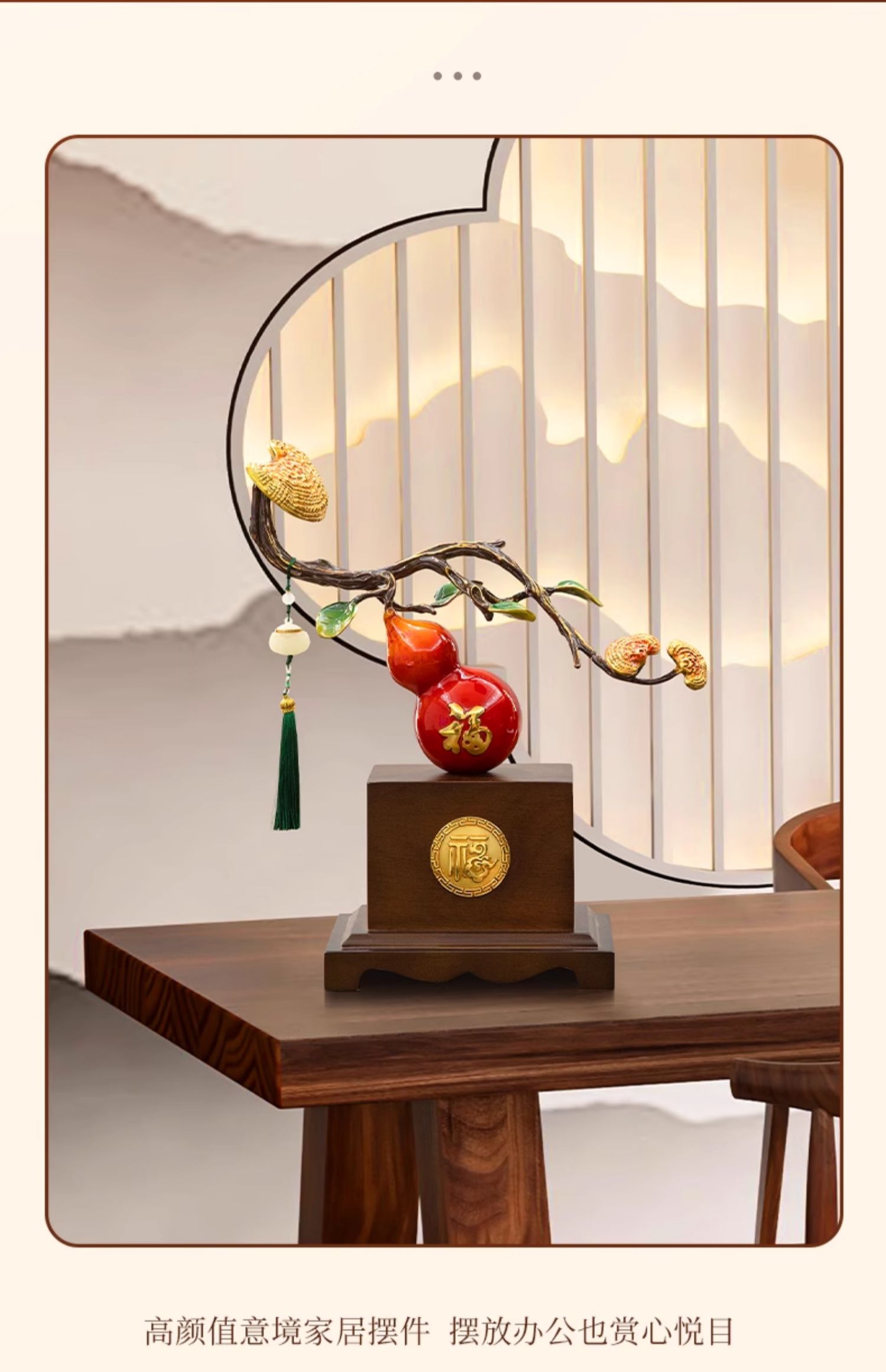 YL事事如意葫芦摆件 300*140*380-新中式黄铜万事葫芦办公室桌面高端大气
