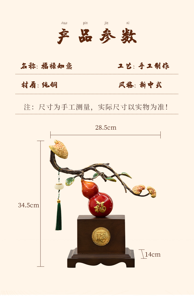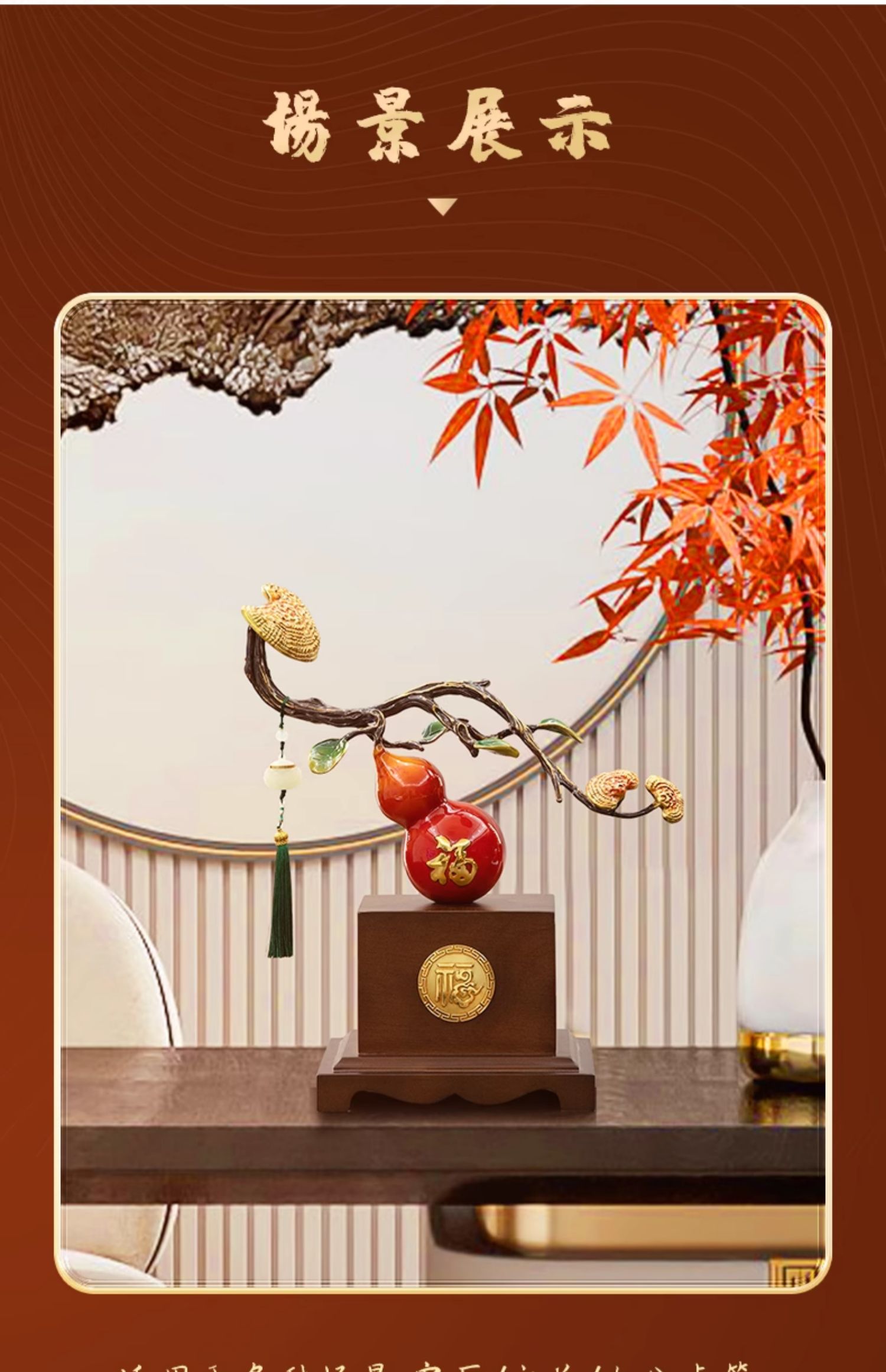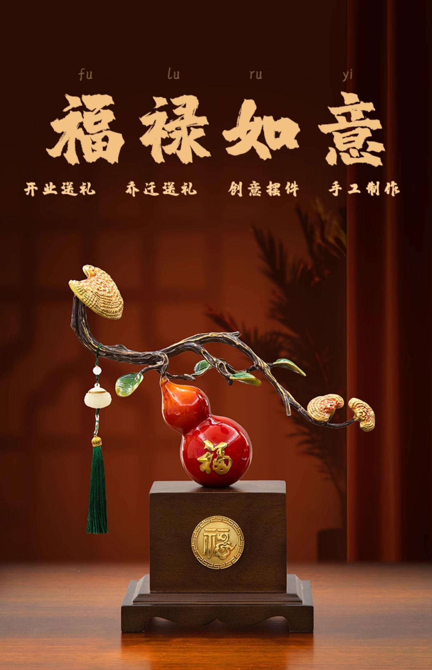 YL事事如意葫芦摆件 300*140*380-新中式黄铜万事葫芦办公室桌面高端大气