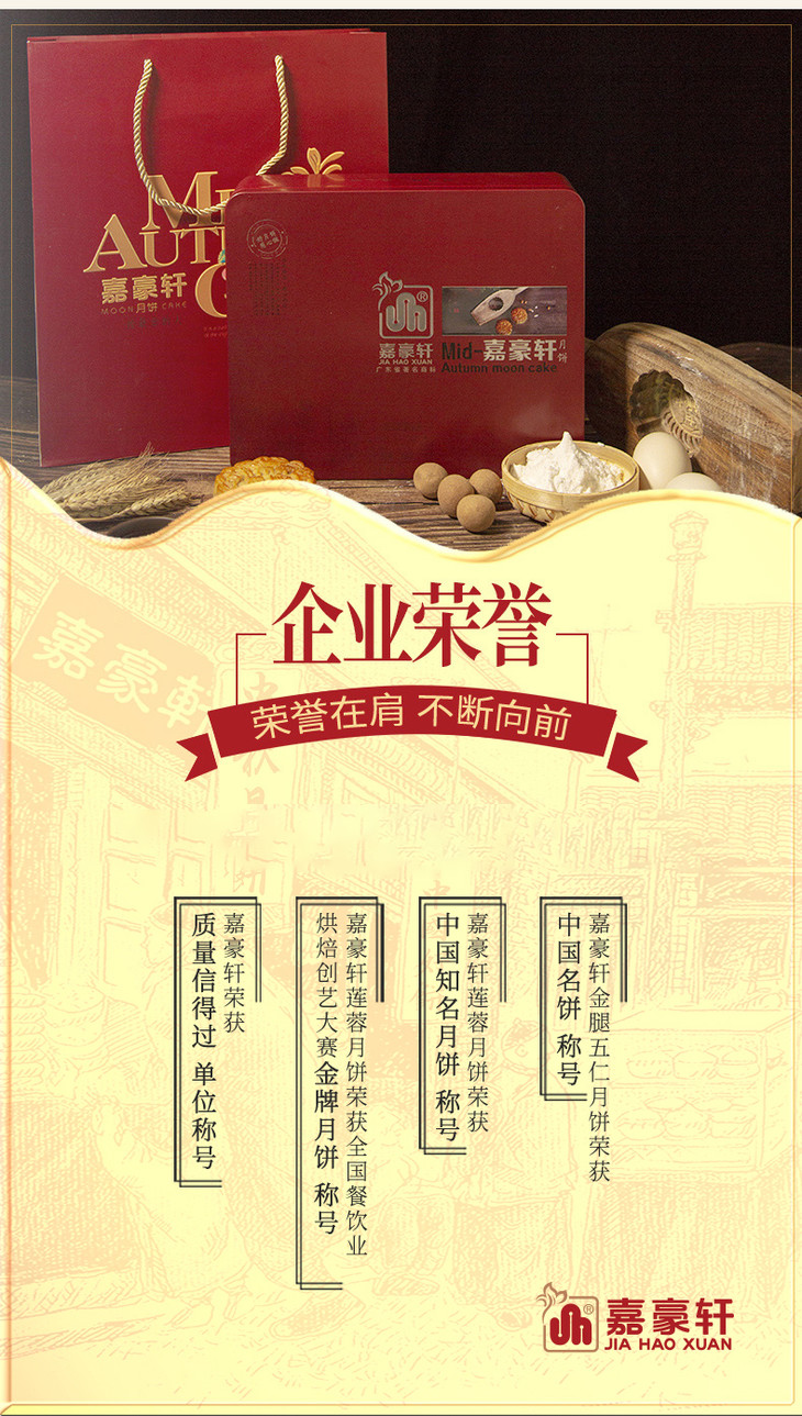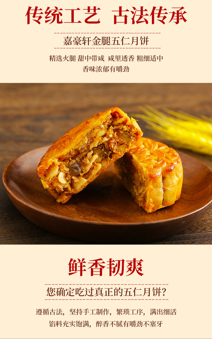 嘉豪轩 广式金腿五仁月饼五仁叉烧月饼礼盒装新鲜零食糕点162克X4个装