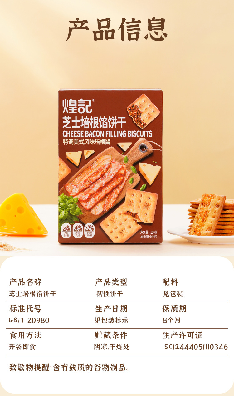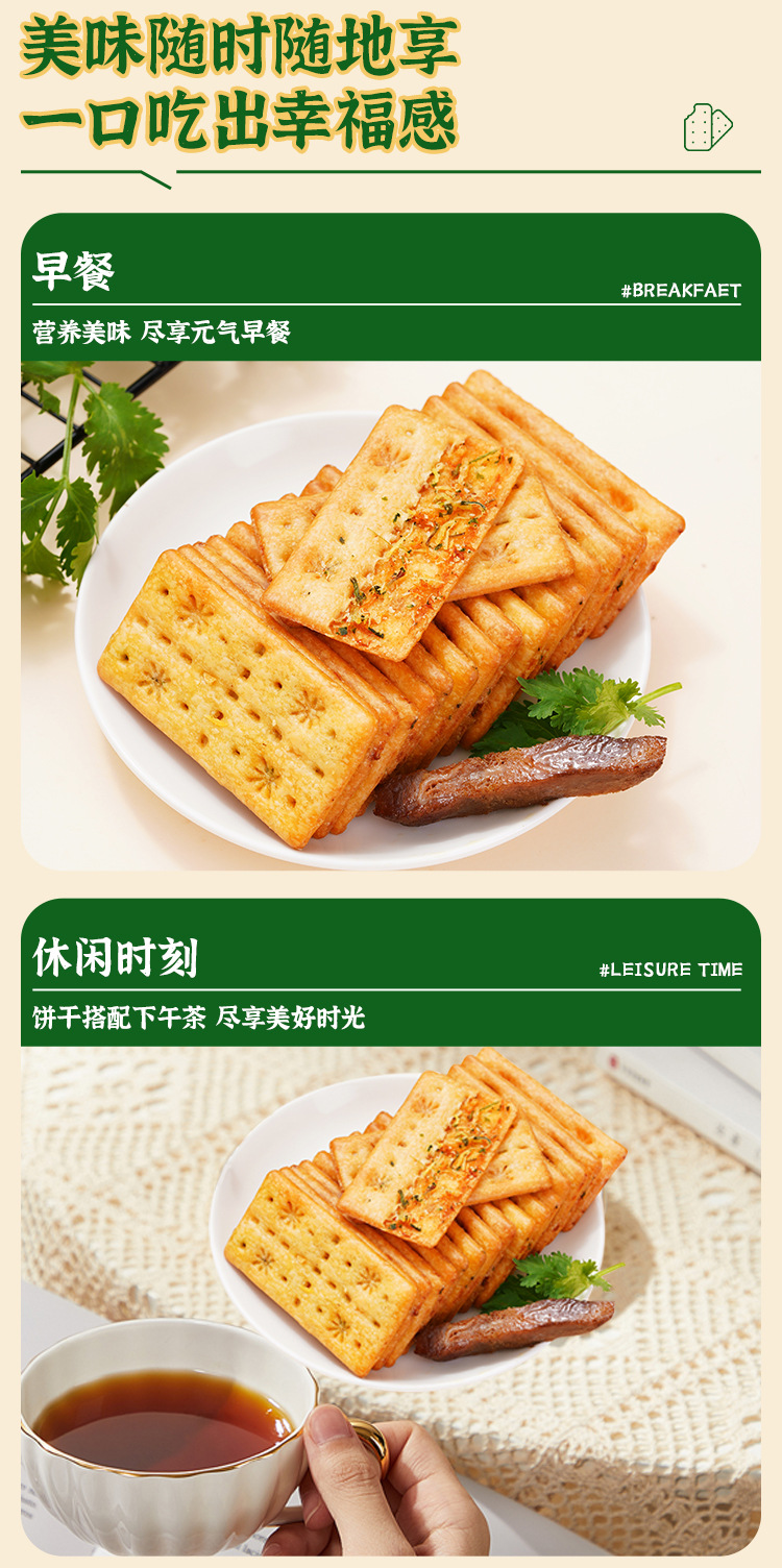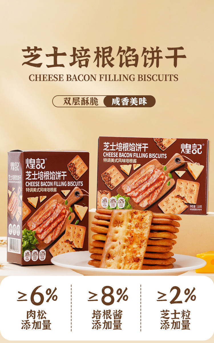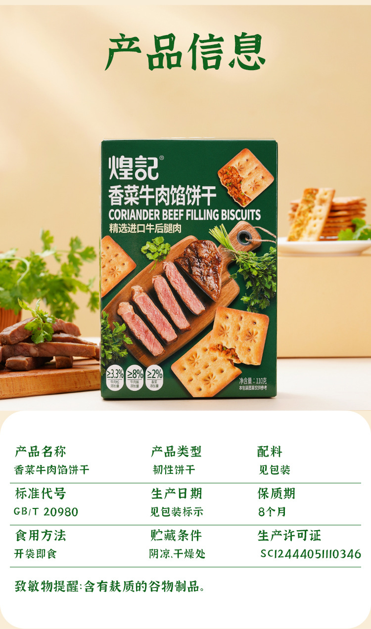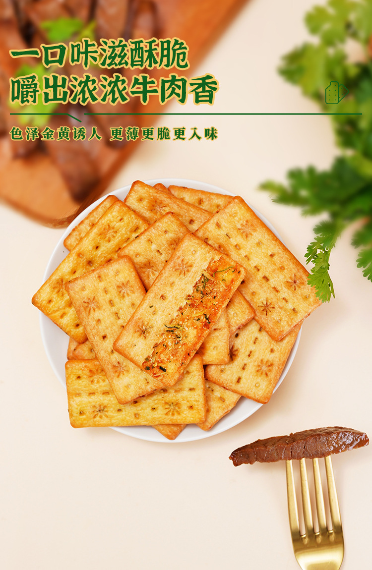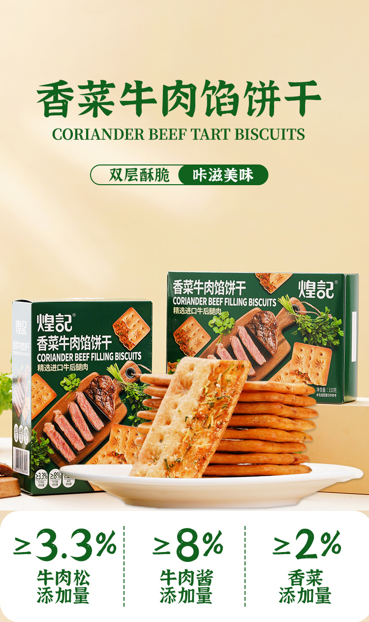 煌记网红爆款香菜牛肉馅苏打饼干110g芝士培根零食新款新品办公室休闲零食童年记忆故乡小吃零食