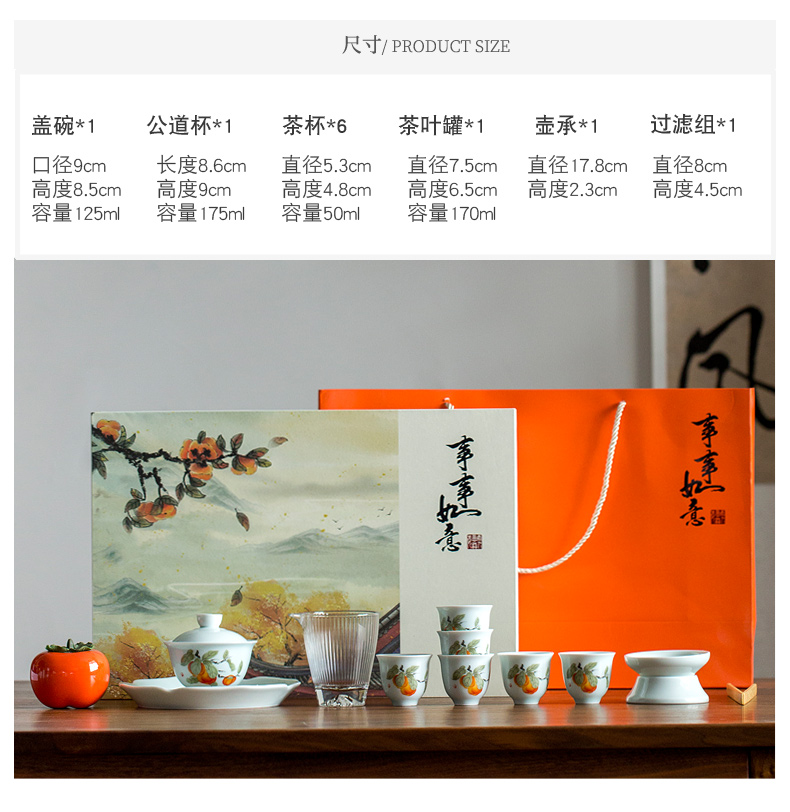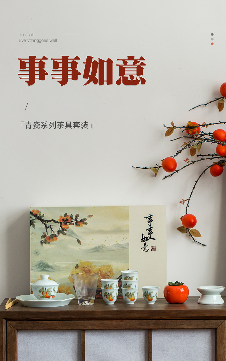 玉青瓷 观自在系列 一壶四杯一公道一茶盘 茶盘包装 观自在A