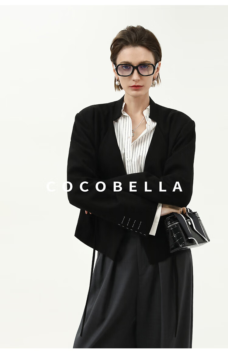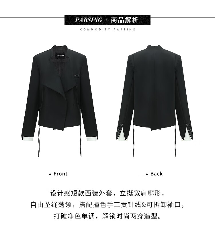 【限时特惠】COCOBELLA设计师款手缝装饰线西装可脱卸撞色袖假两件西服SI3019