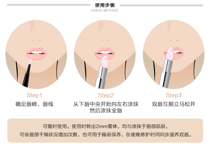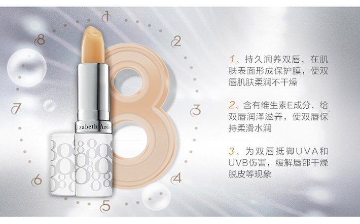 使娇嫩双唇常保柔嫩平滑;防晒成份还能有效保护双唇,拒绝因UVA和UVB照晒而造成干燥脱皮及提早老化的现象