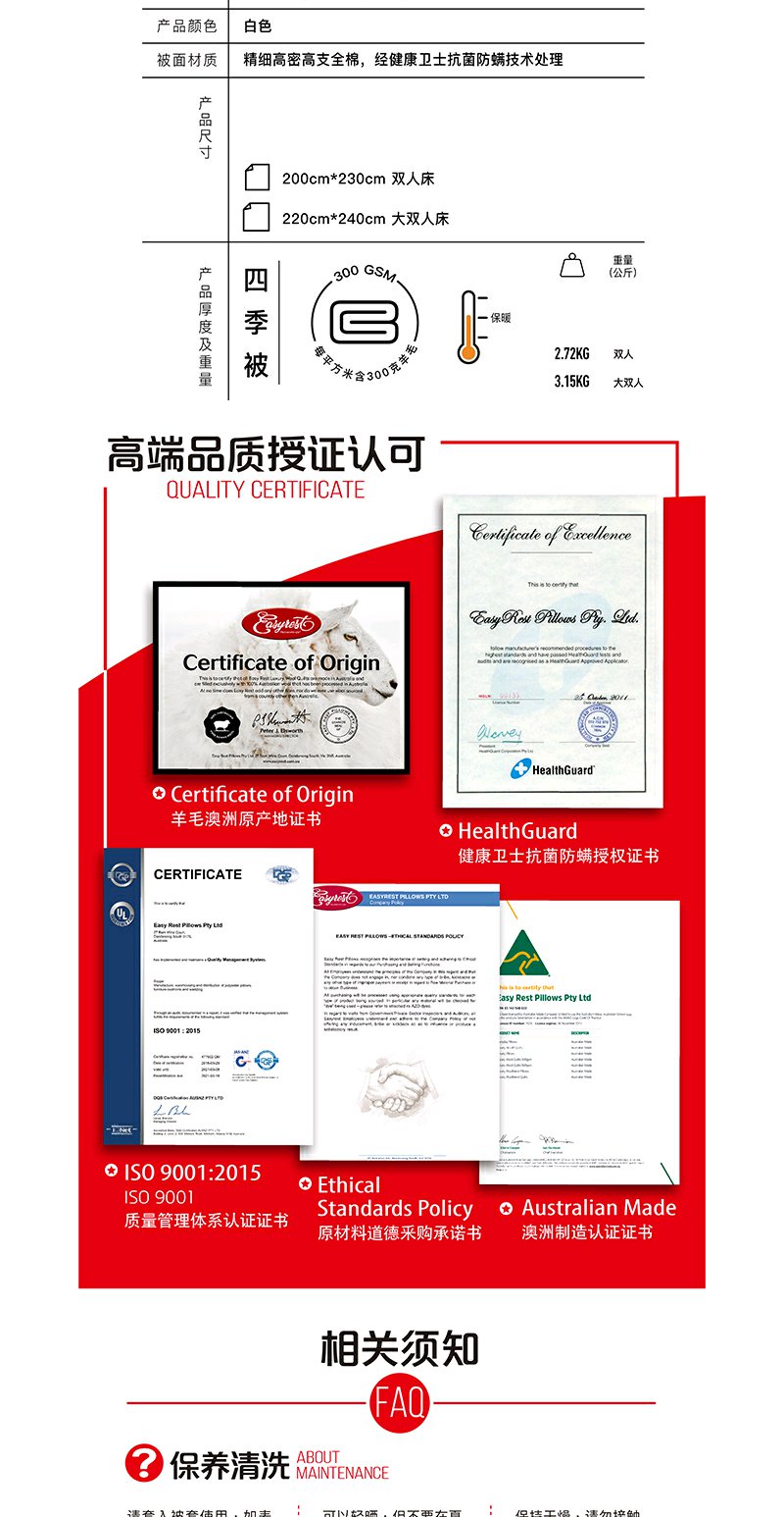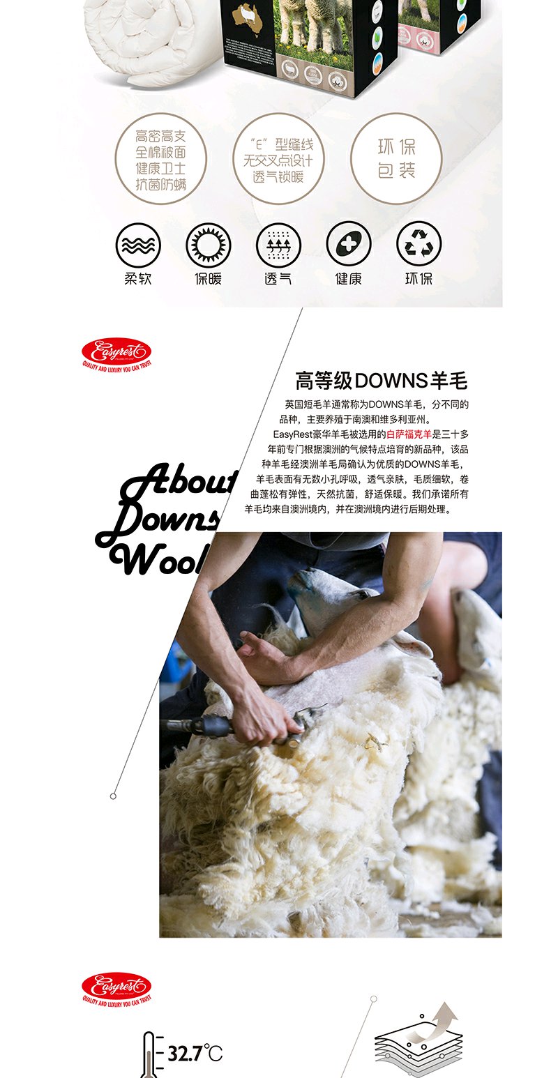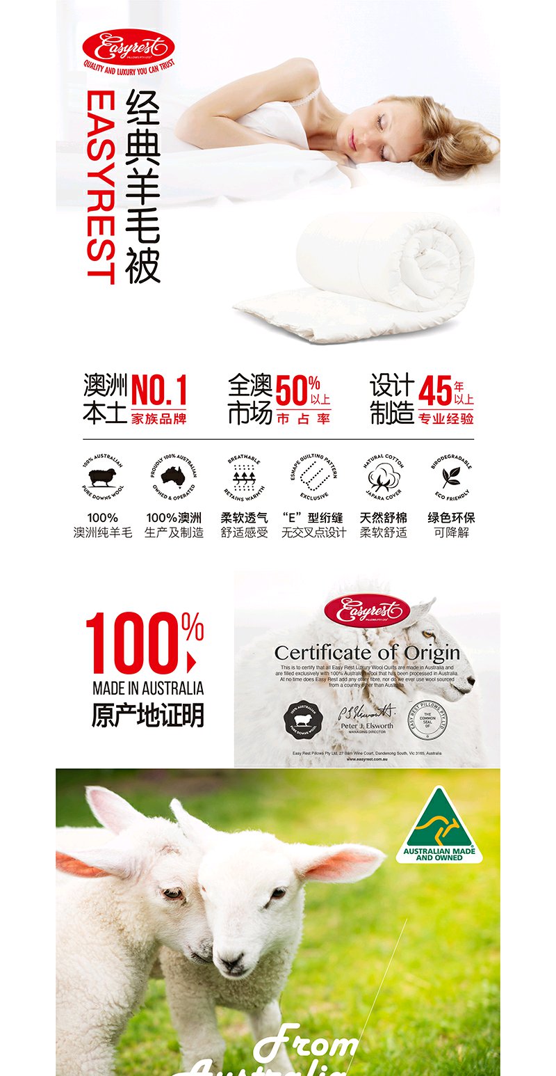 【原装进口】澳大利亚EasyRest经典羊毛四季通用春秋被