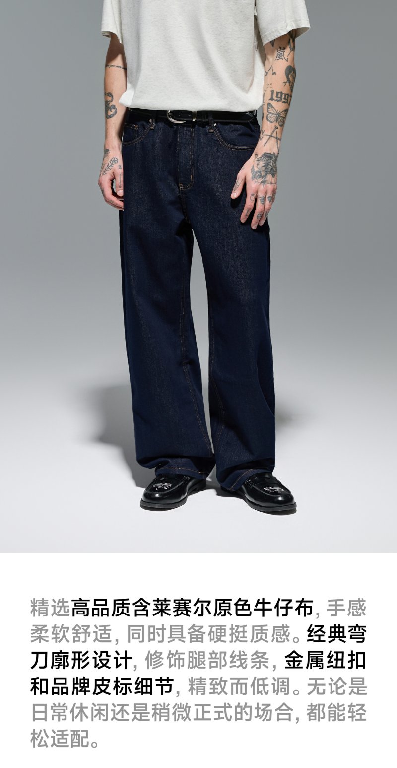CHINISM赤尘 莱赛尔弯刀牛仔裤男夏季新款原牛直筒宽松男士裤子