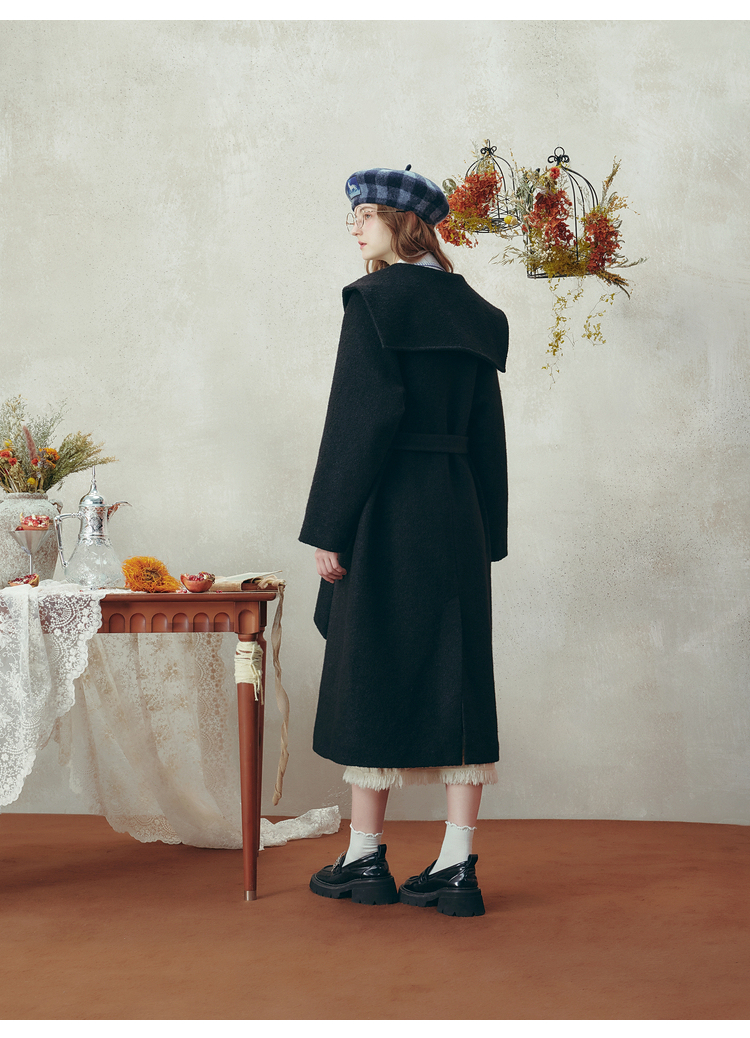 【暖冬内购】两三事庭下玉立2024冬季新款复古盘扣立领羊毛呢外套女呢大衣