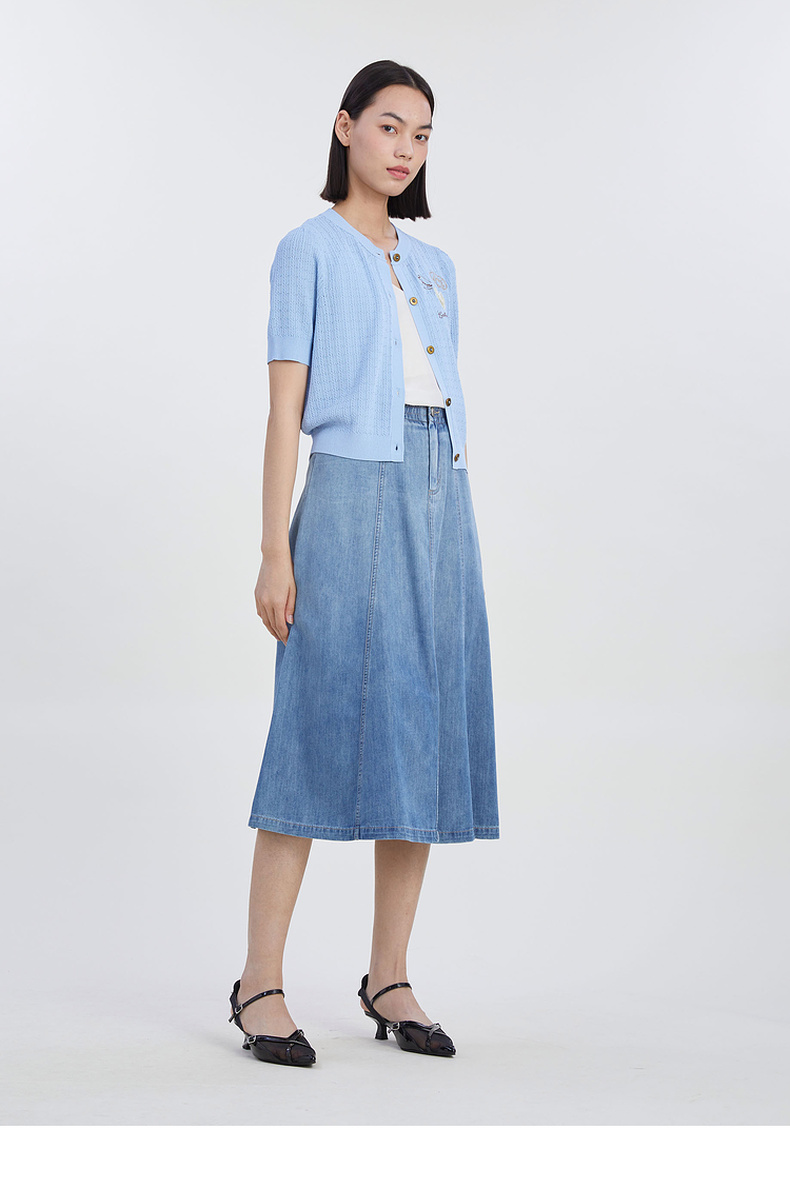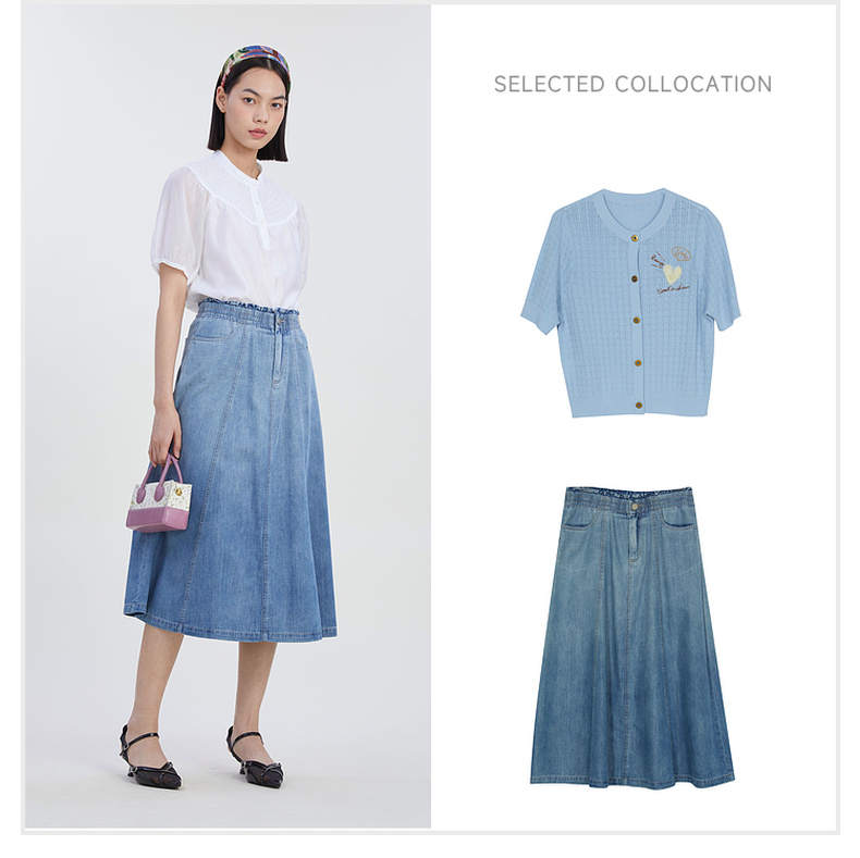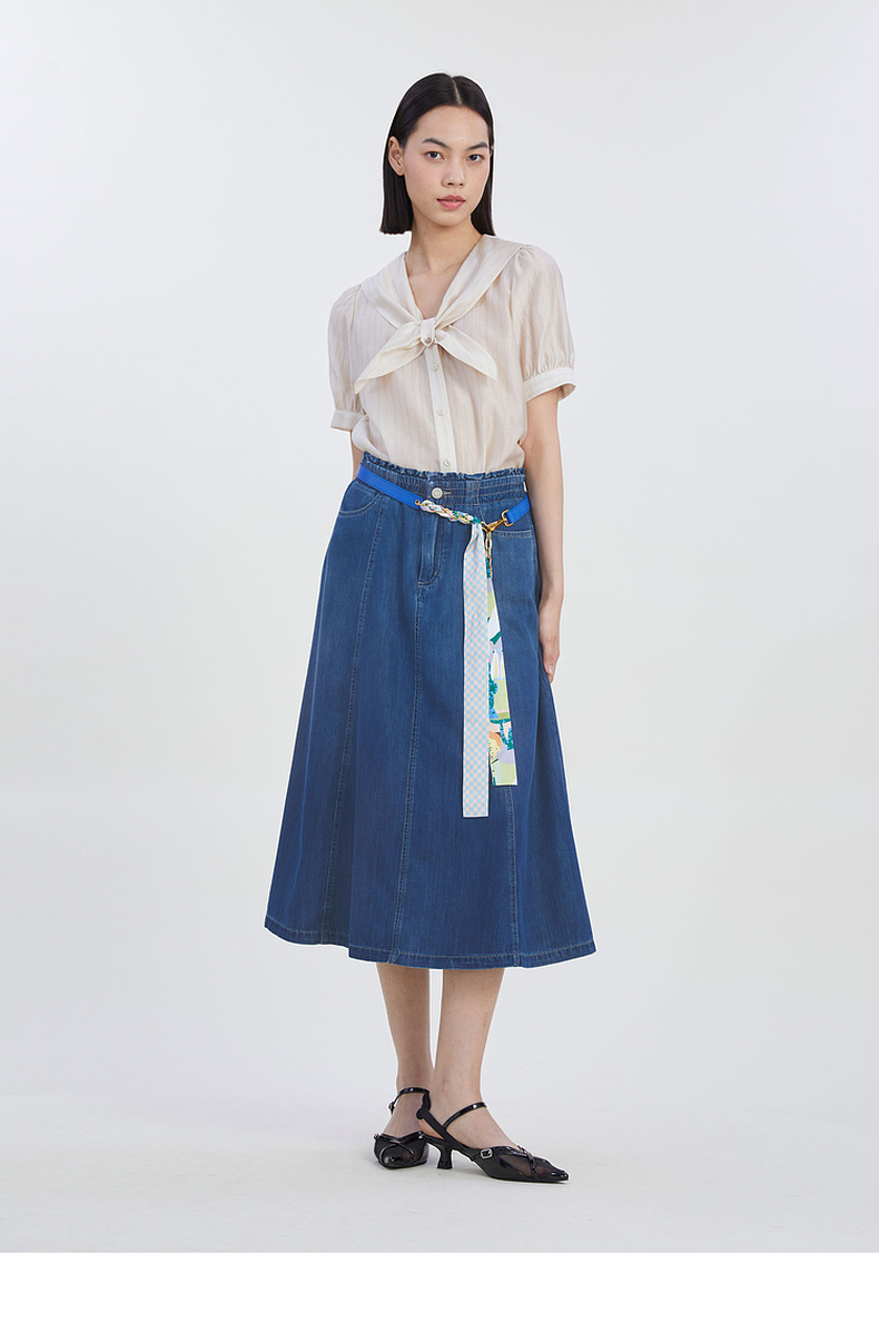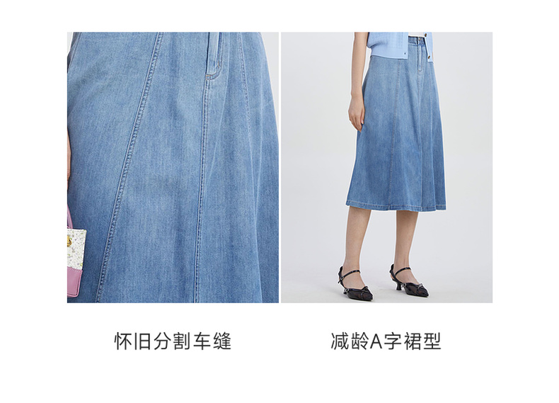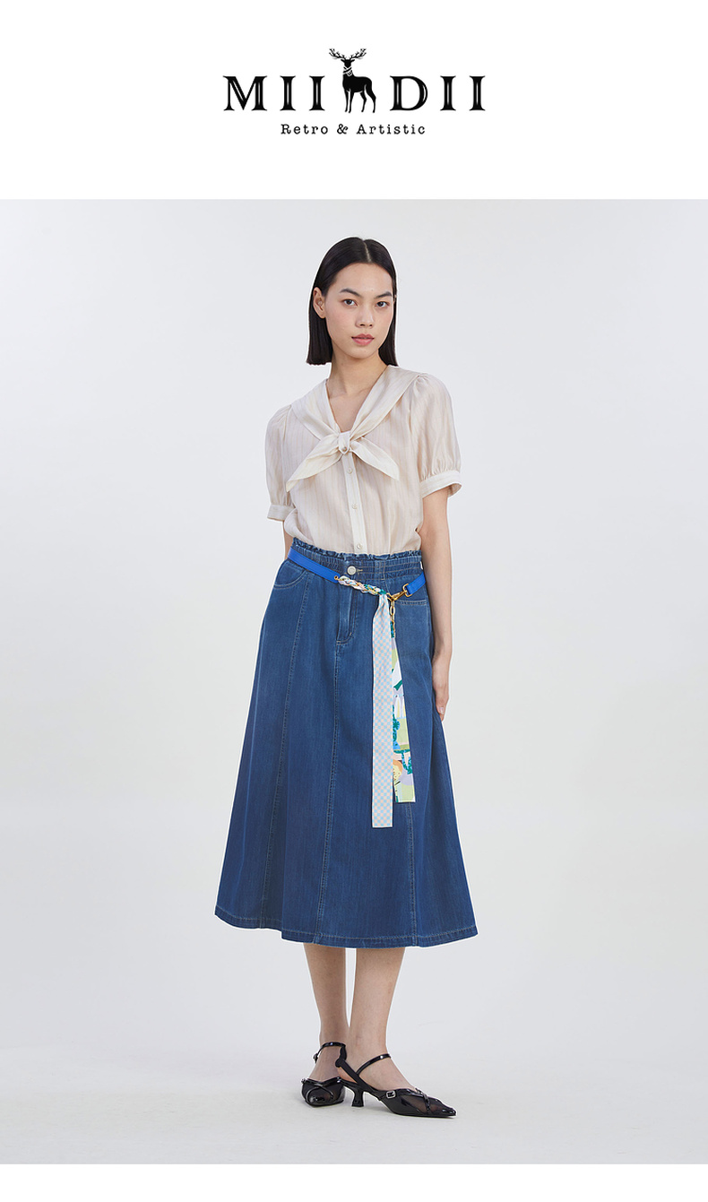 谜底气质牛仔半身裙2023夏季新款复古高腰A型长裙松紧腰232MB0556