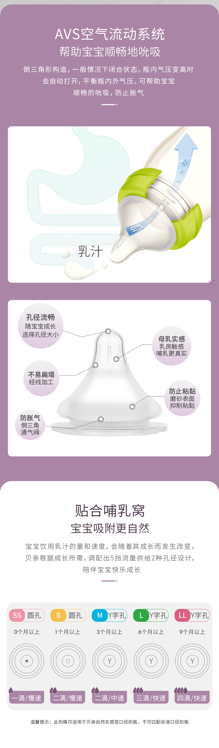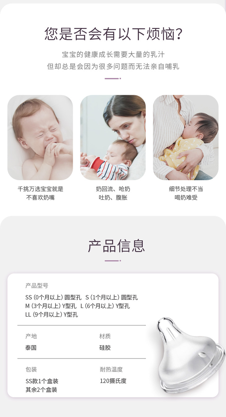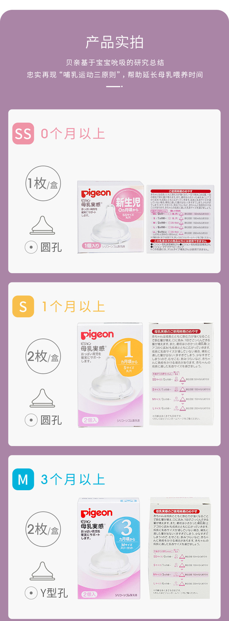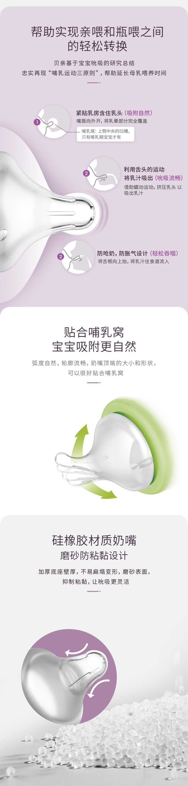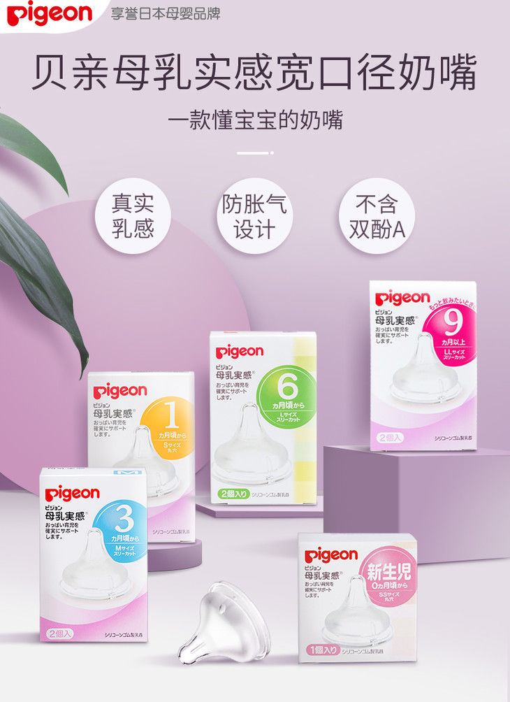贝亲母乳实感柔软婴儿宽口径奶嘴