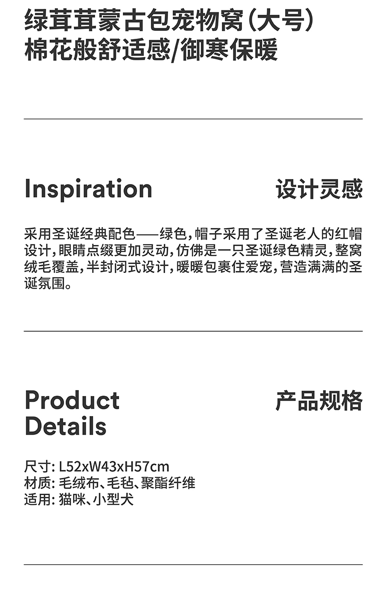 zeze绿茸茸蒙古包宠物窝大号-B