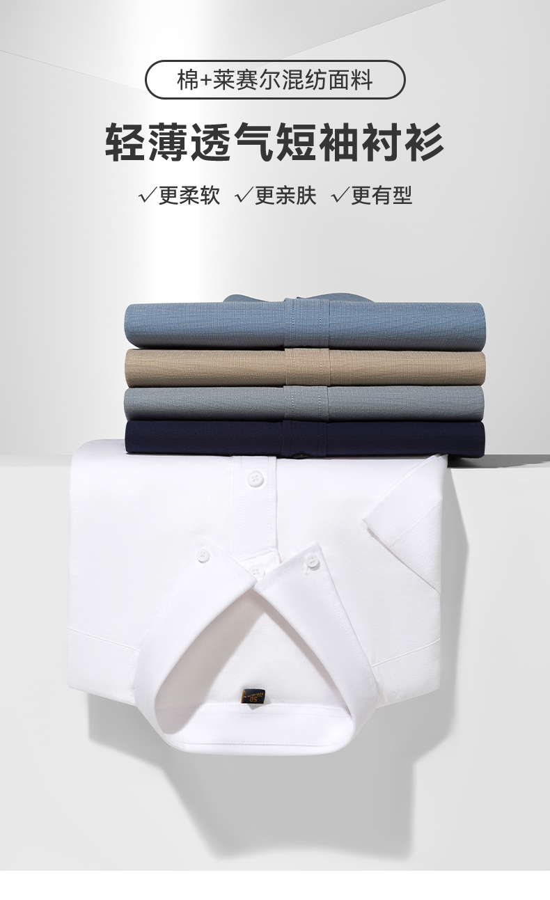【含莱赛尔】罗蒙男士莱赛尔夏季短袖休闲衬衫透气百搭日常通勤男衬衫