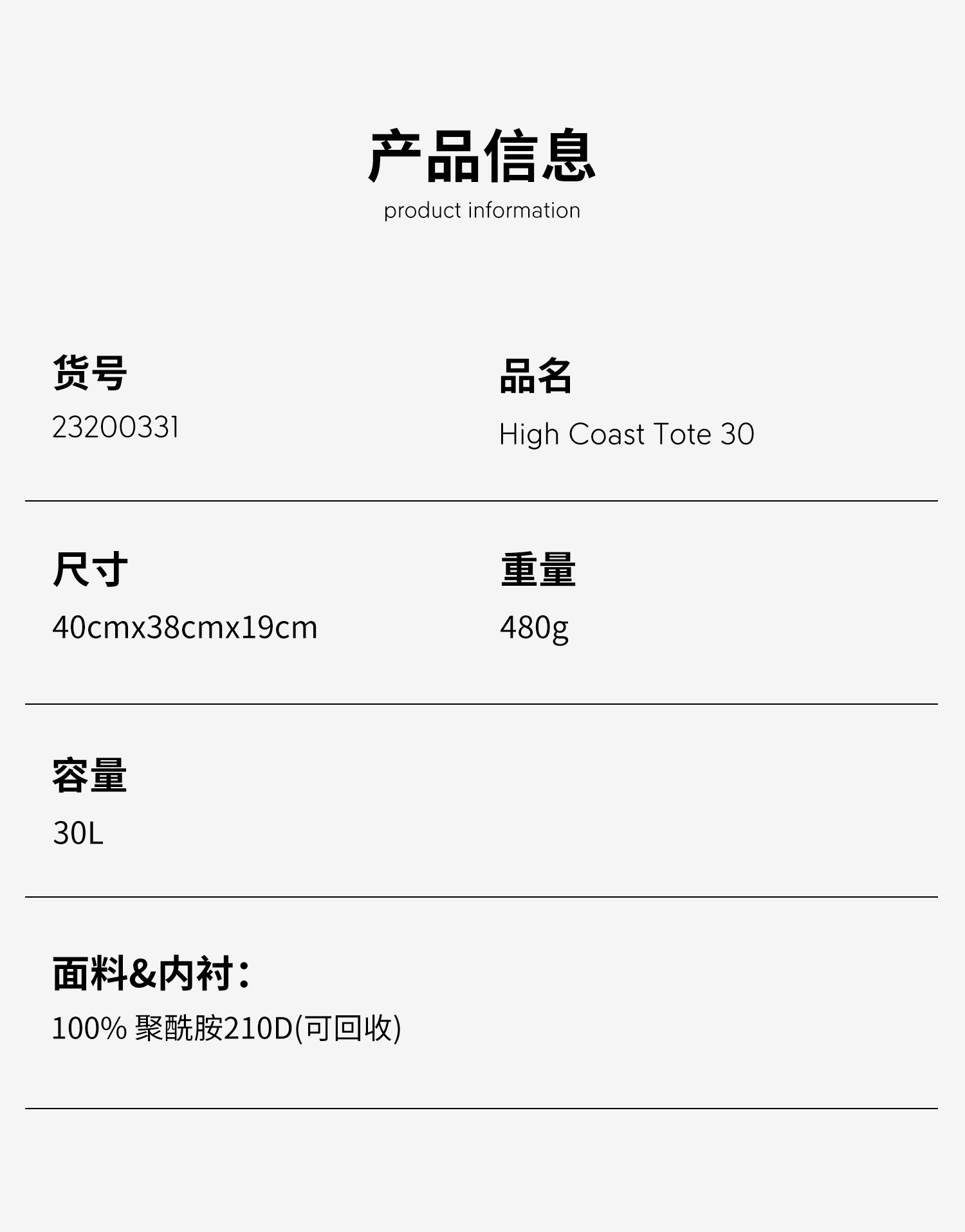 北极狐 25新款highcoast大容量30L男女单肩斜挎包 托特包23200331