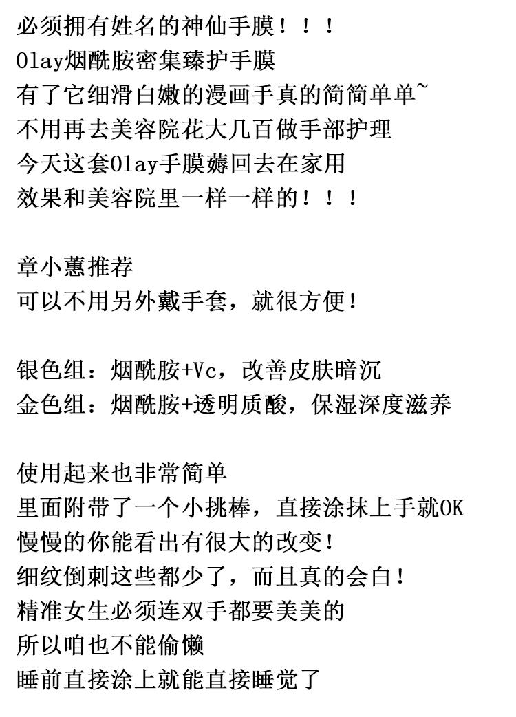 OLAY密集臻护手膜套组,添加瑞士高纯度明星护肤精华烟触胺