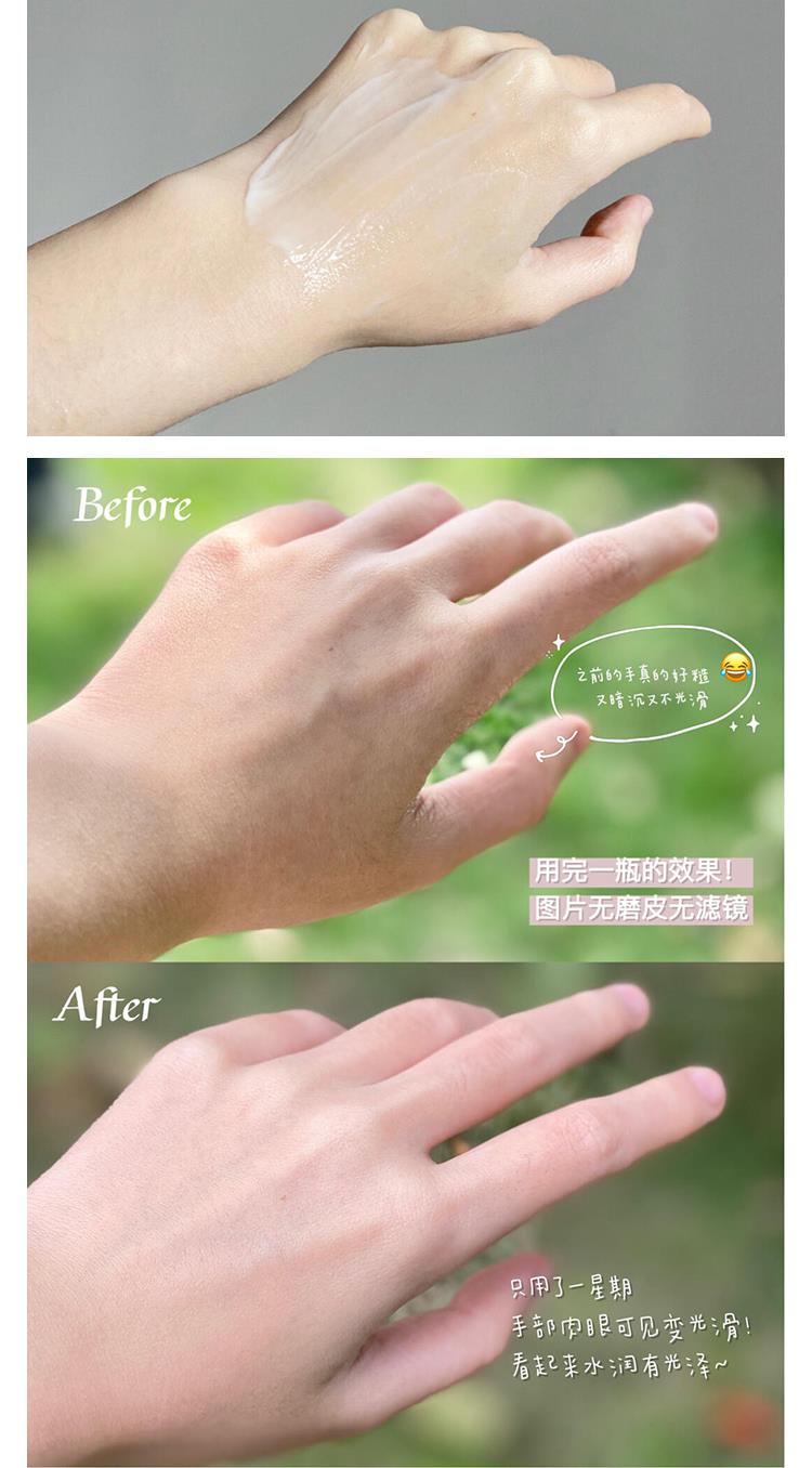 使用后手部肌肤瞬间细腻净润,持久莹亮。