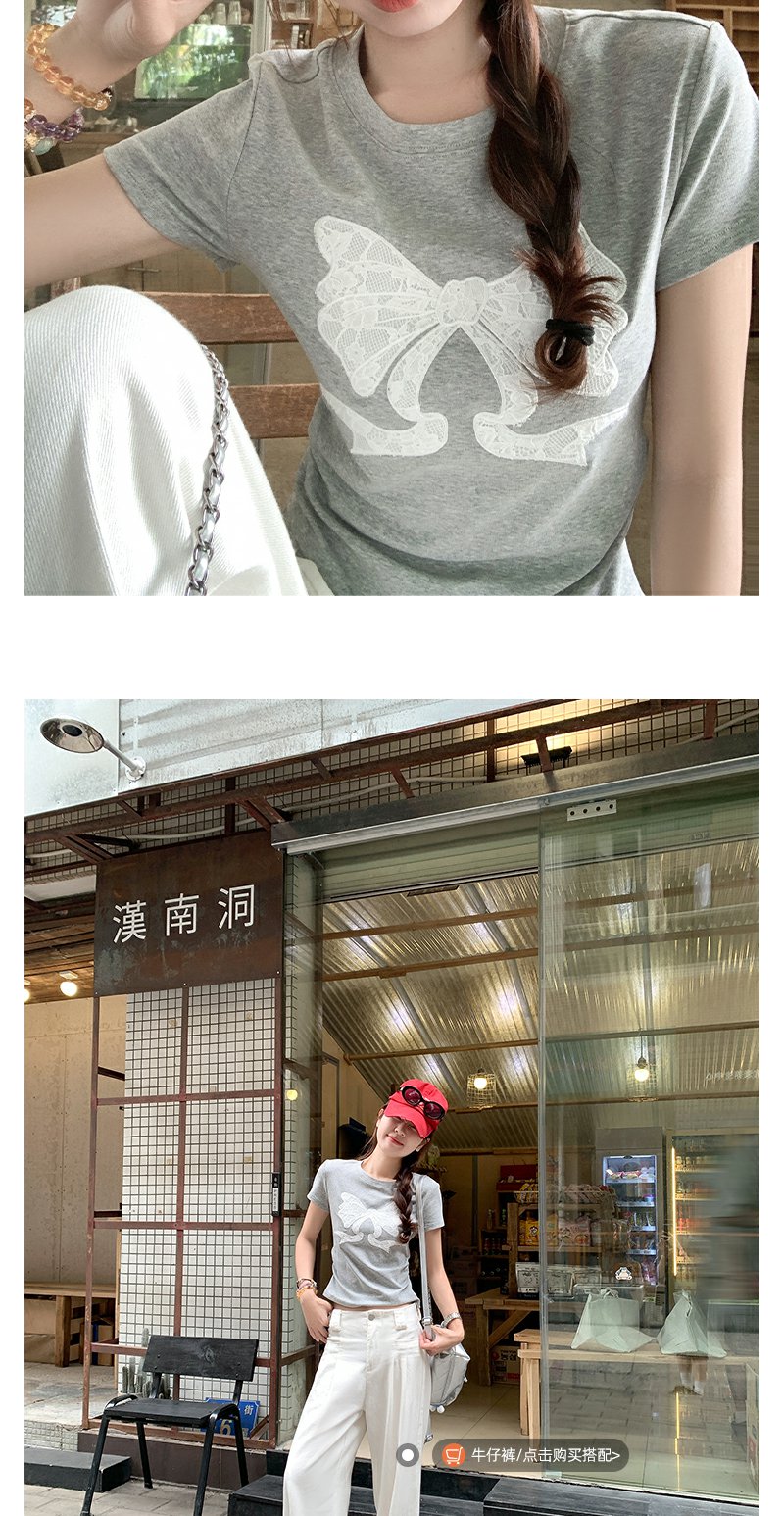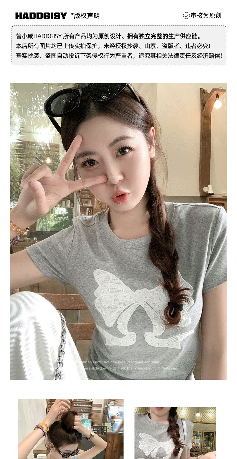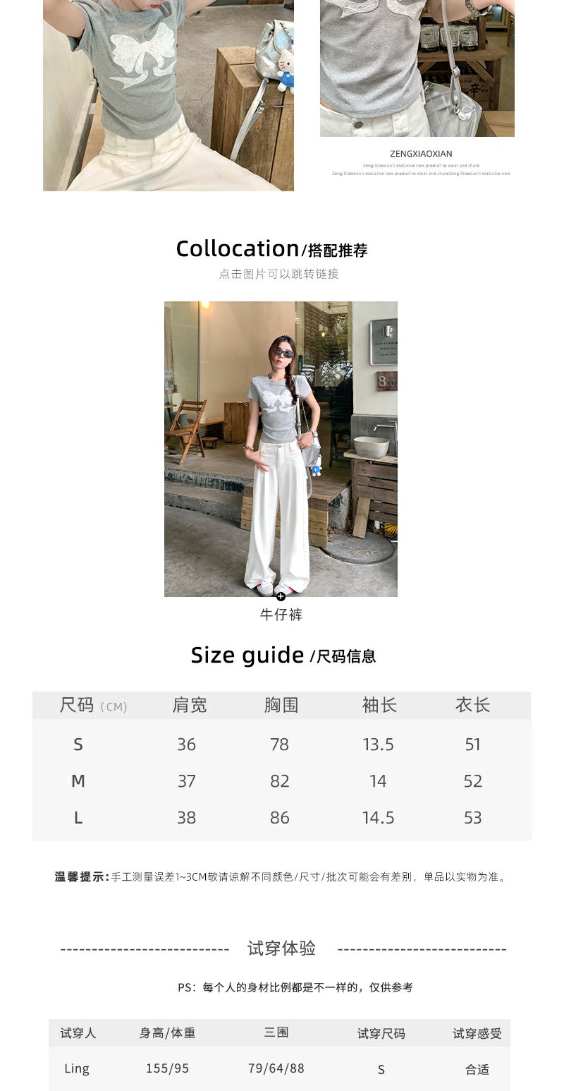 <曾小咸推荐>气质蝴蝶结印花修身短款上衣T恤