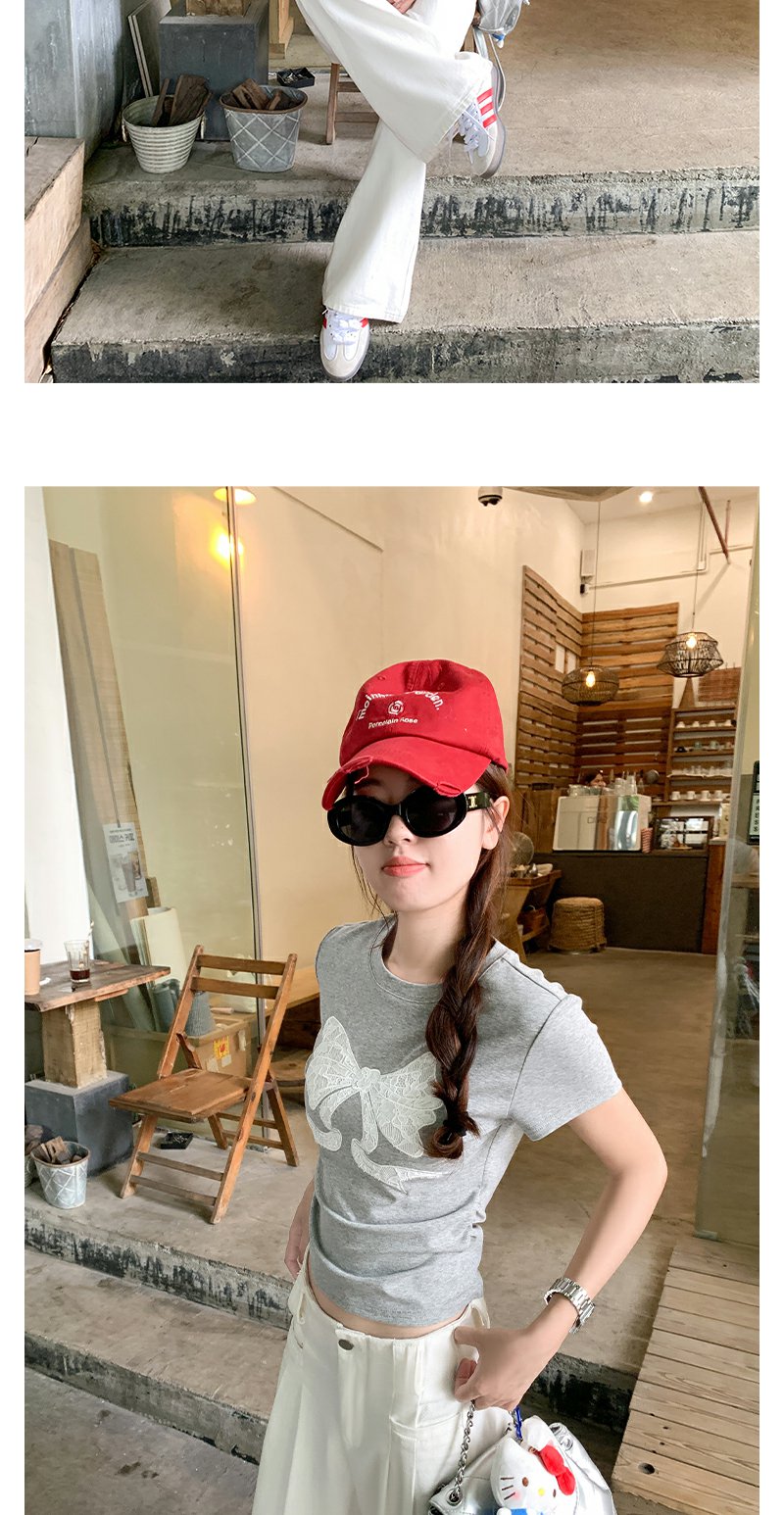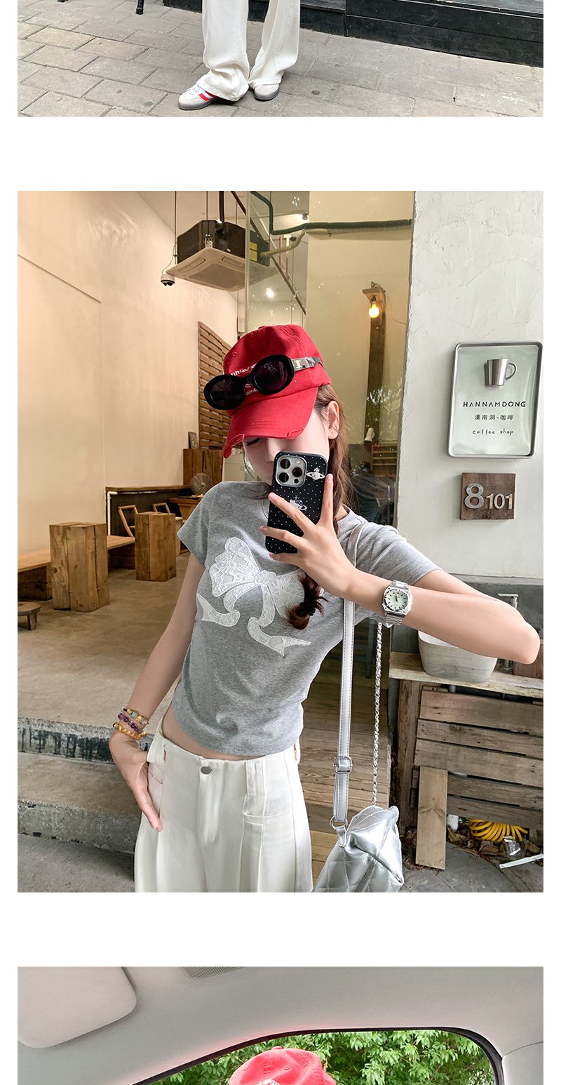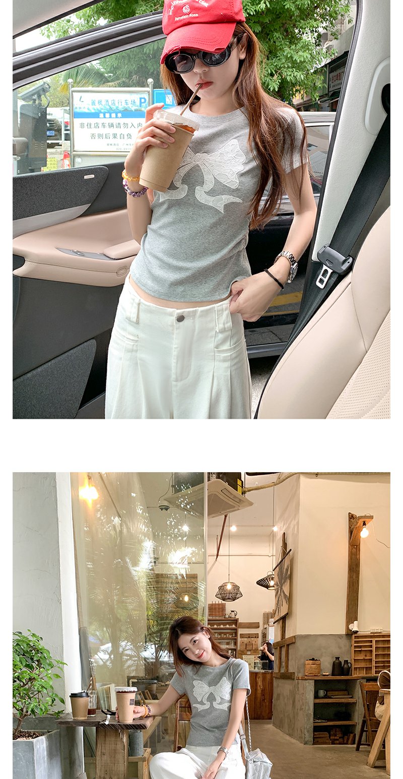 <曾小咸推荐>气质蝴蝶结印花修身短款上衣T恤