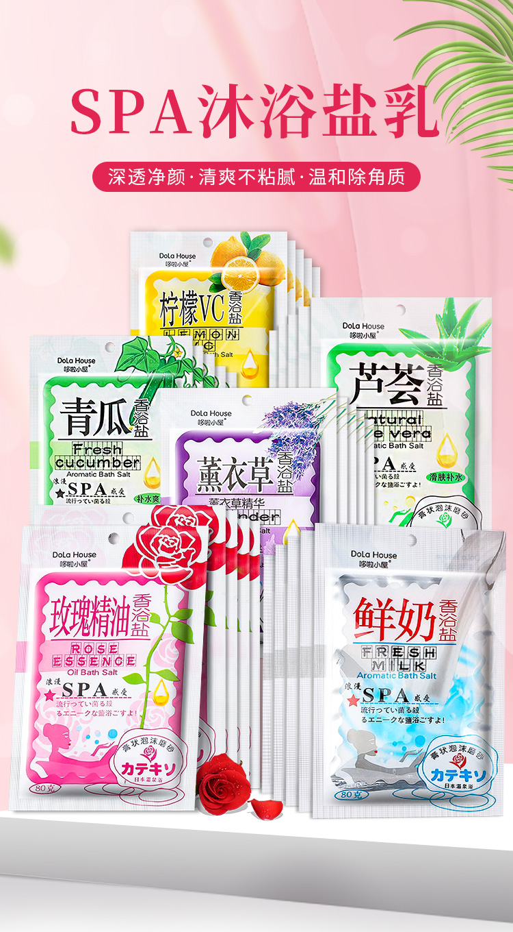 20袋装 柠檬沐浴盐乳海盐磨砂膏精油spa水疗全身体去角质泡澡用品