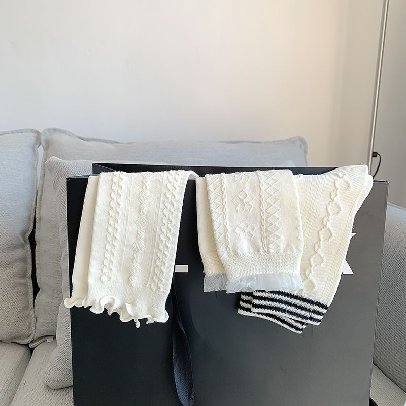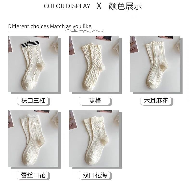 「19.9到手5双!白色jk袜」女中筒袜ins潮制服花边袜可爱堆堆袜纯色长袜配饰