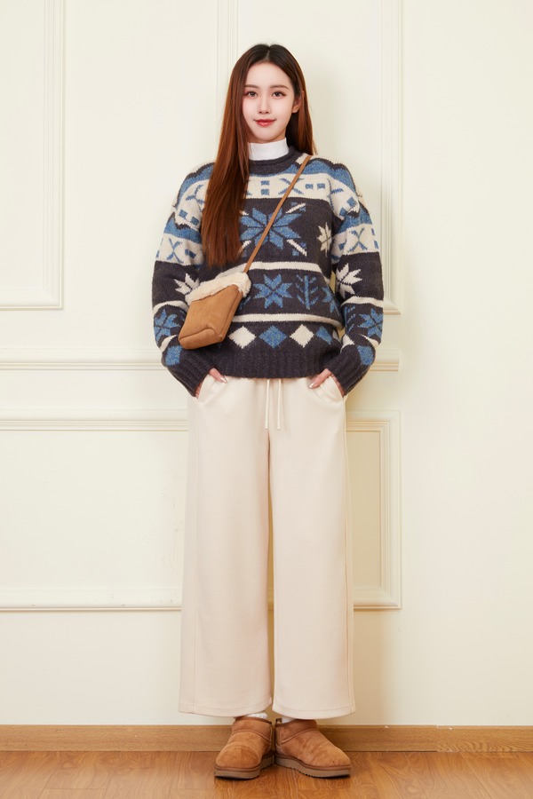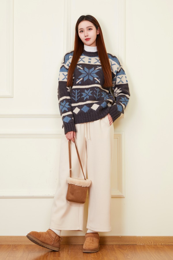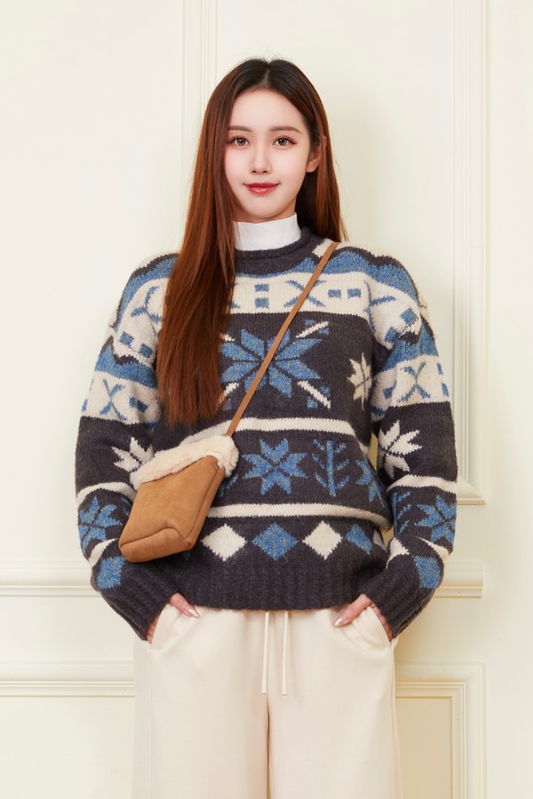 HAYES 撞色提花高级慵懒感套头毛衣 21969