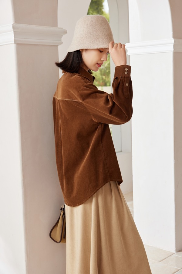 Kai & Kiera 简约设计感灯芯绒复古翻领上衣 19414
