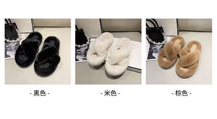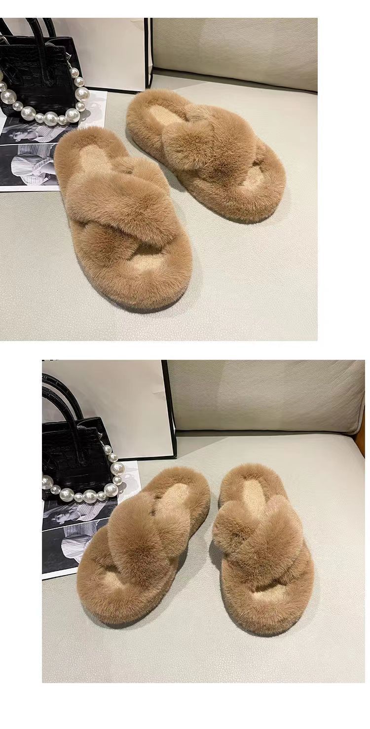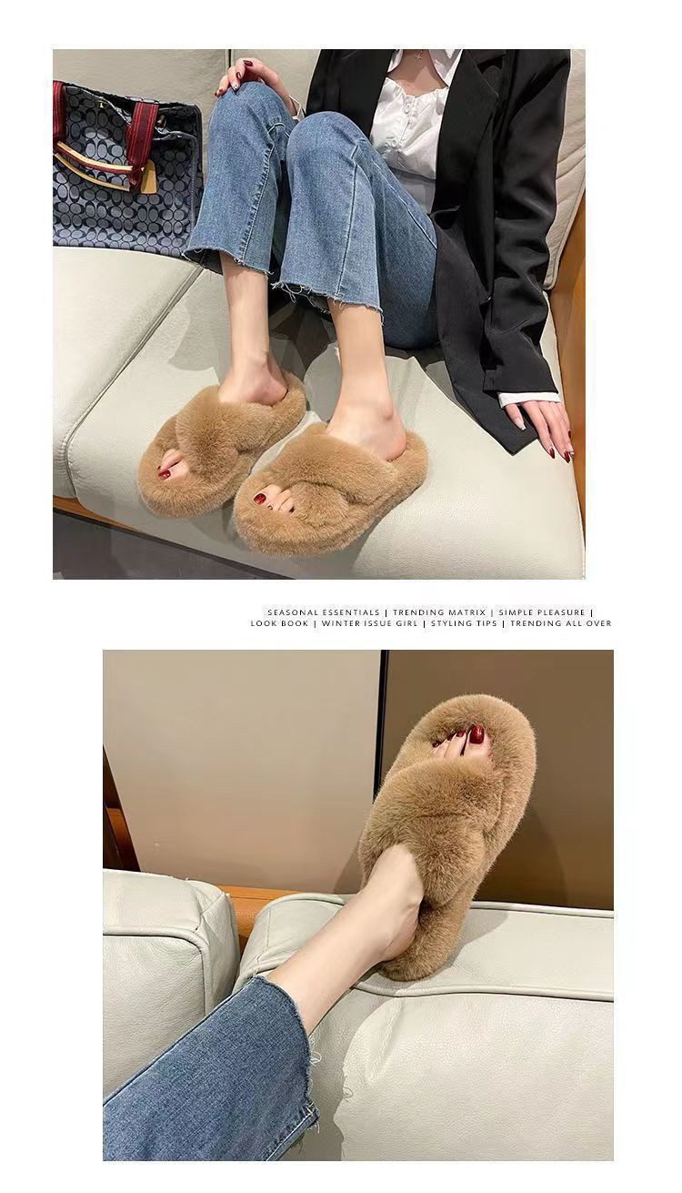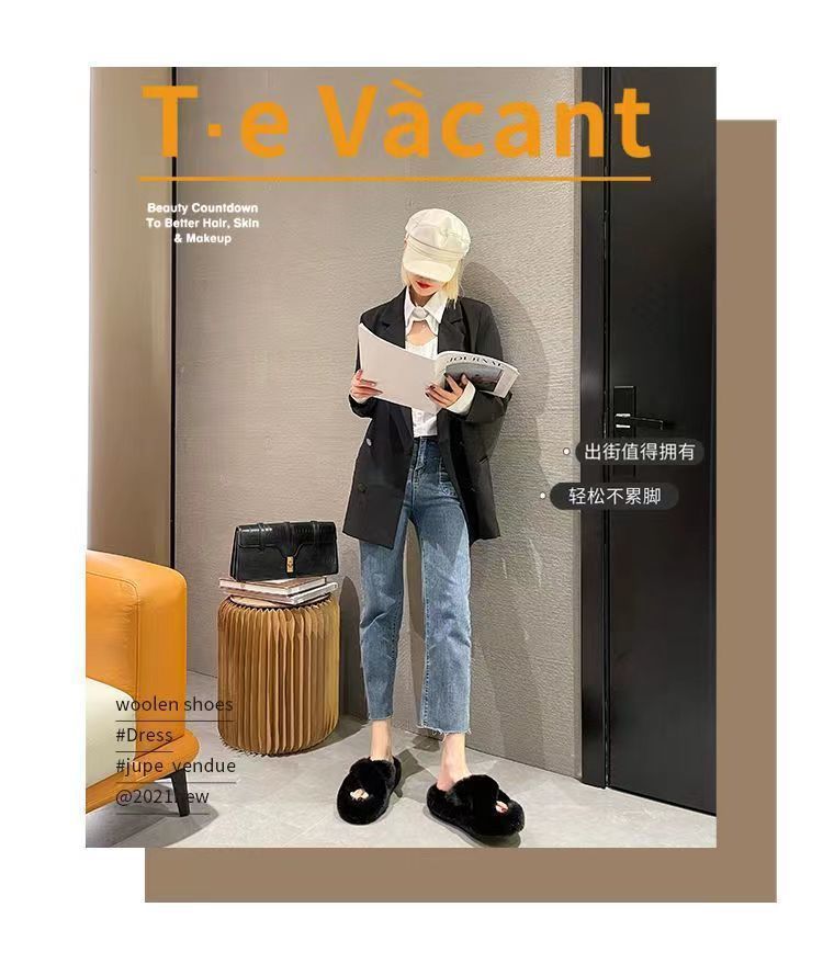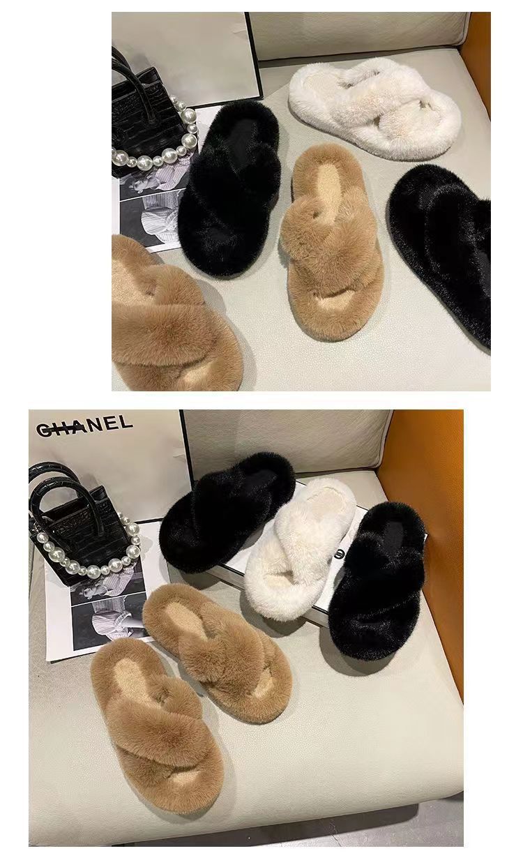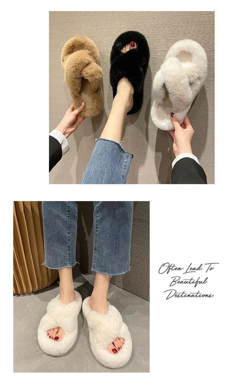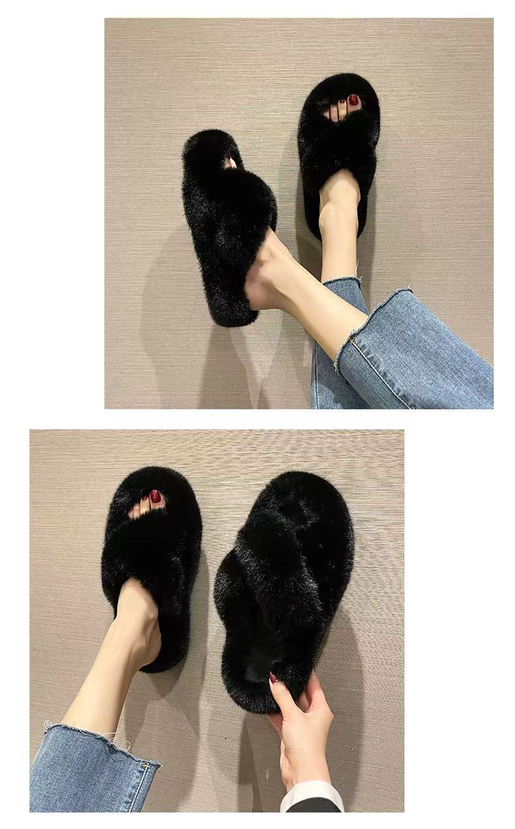 【防滑耐磨底!毛毛拖鞋】交叉带秋冬新款拖鞋女,网红百搭链条软底防滑外穿一字拖鞋