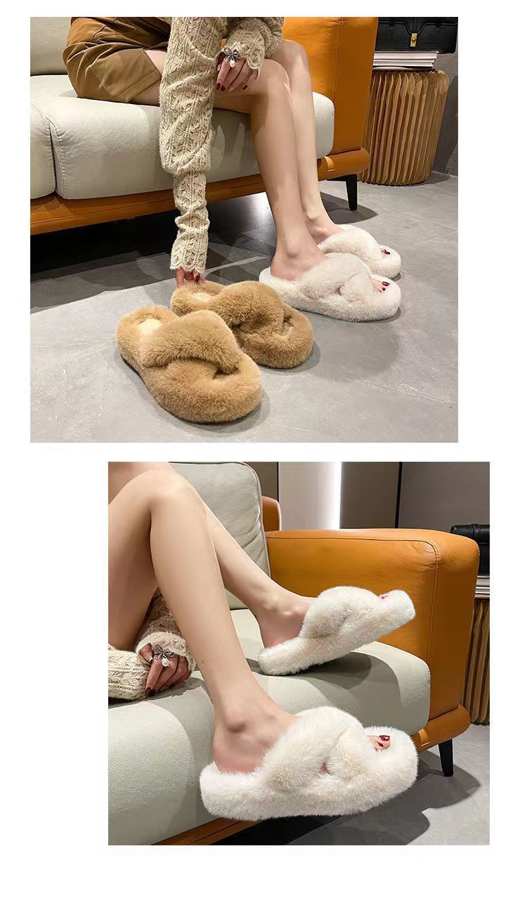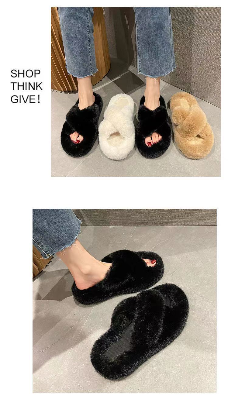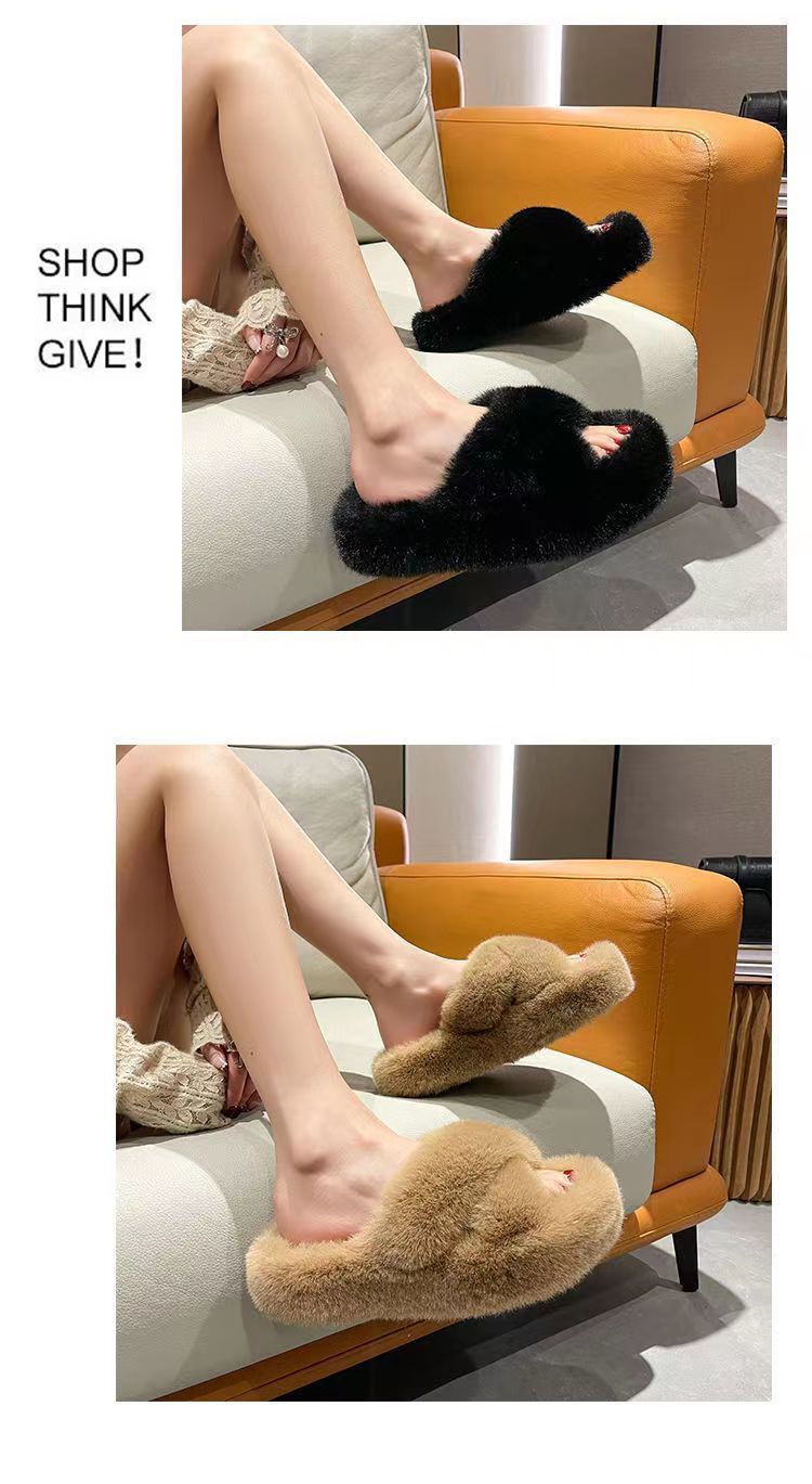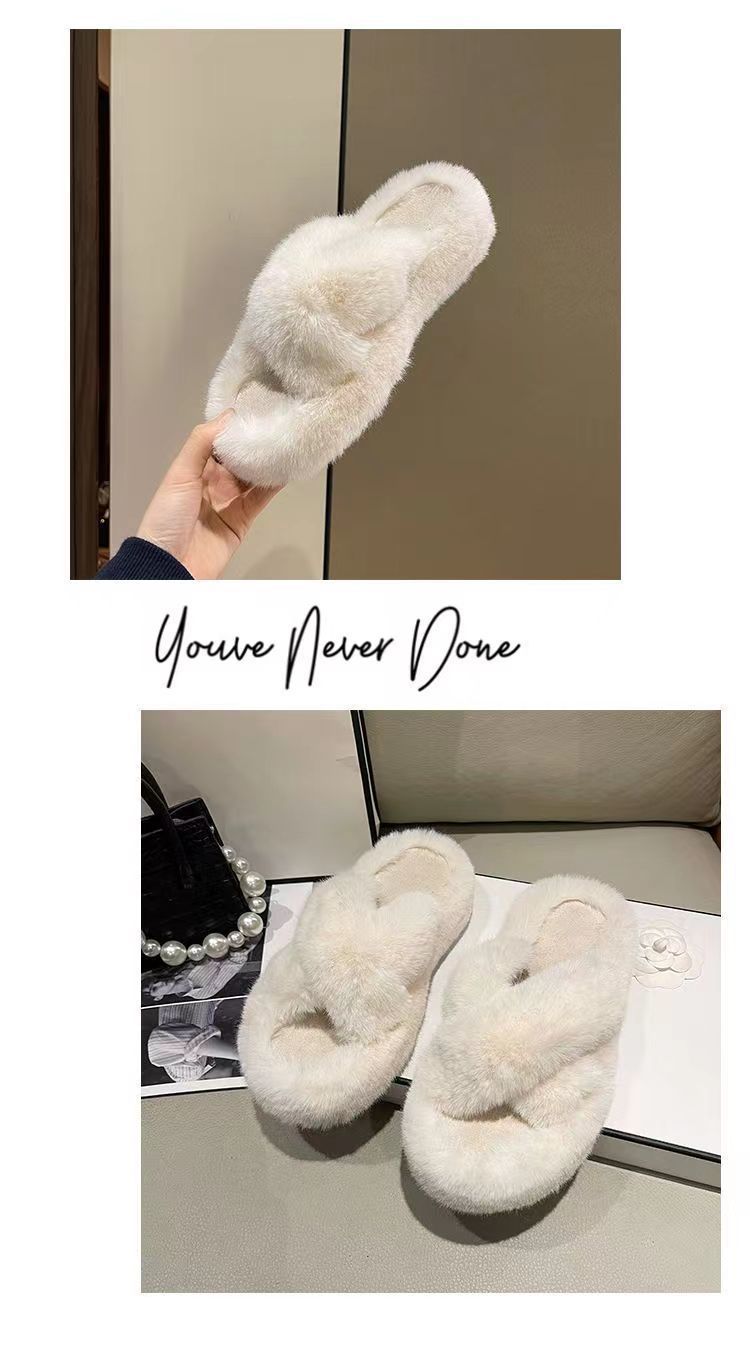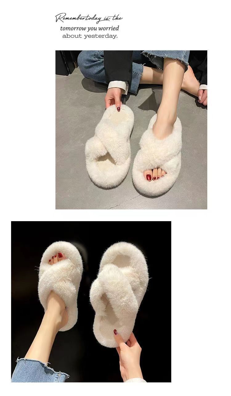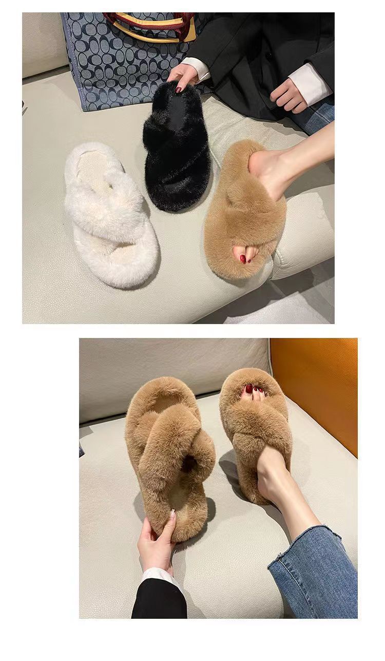 【防滑耐磨底!毛毛拖鞋】交叉带秋冬新款拖鞋女,网红百搭链条软底防滑外穿一字拖鞋