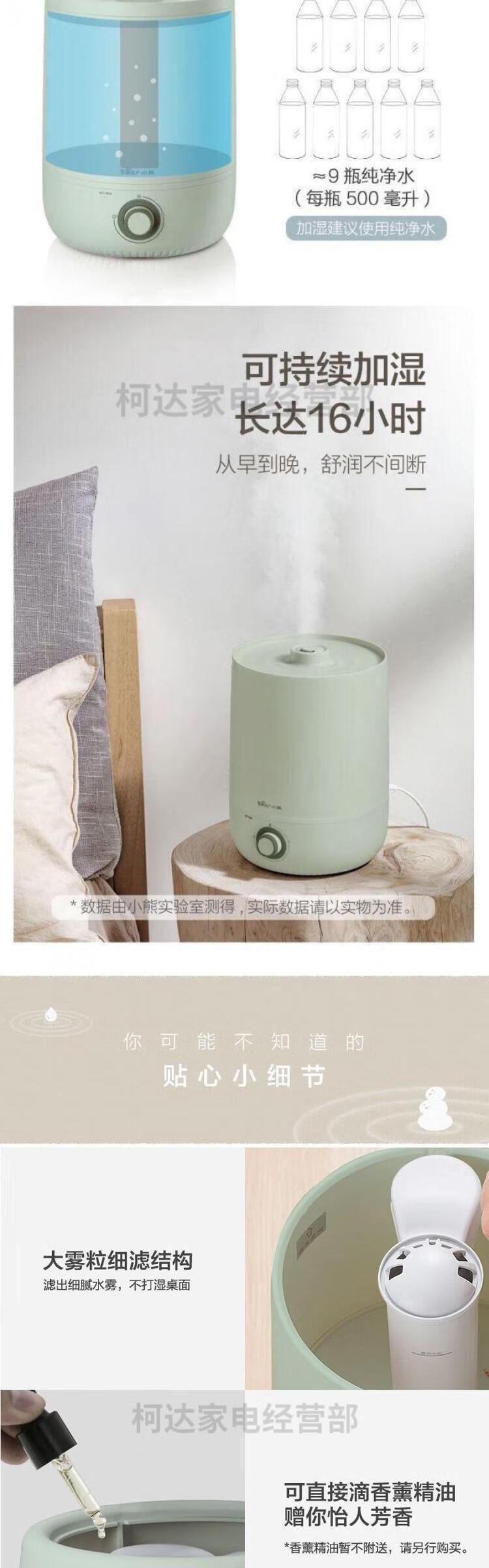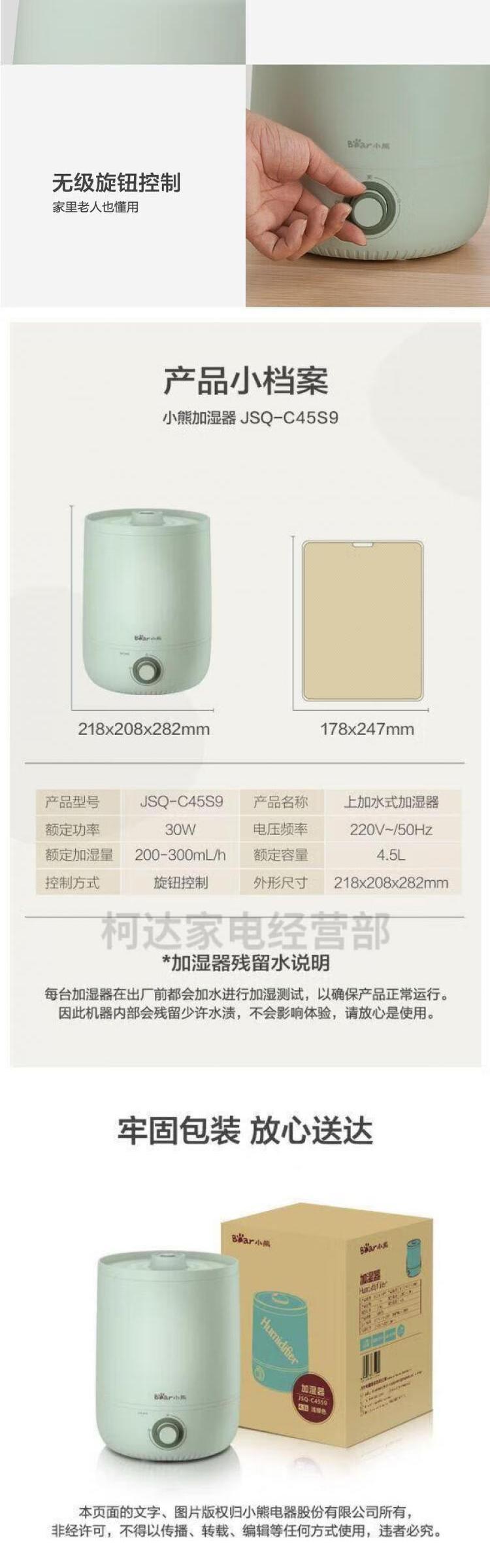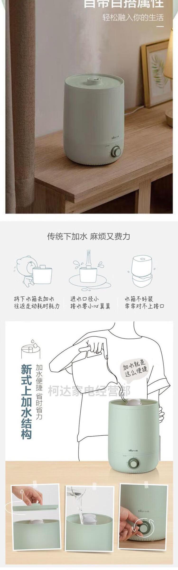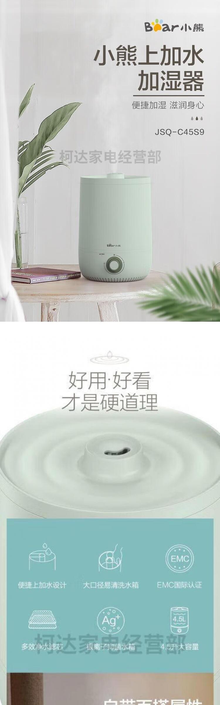 【自营】小熊(Bear) 加湿器 卧室婴儿用办公室桌面香薰机便捷上加水设计 家用低噪智能银离子加湿机带滤芯 JSQ-C45S9大雾量恒湿抑菌静音睡眠模式智能恒湿