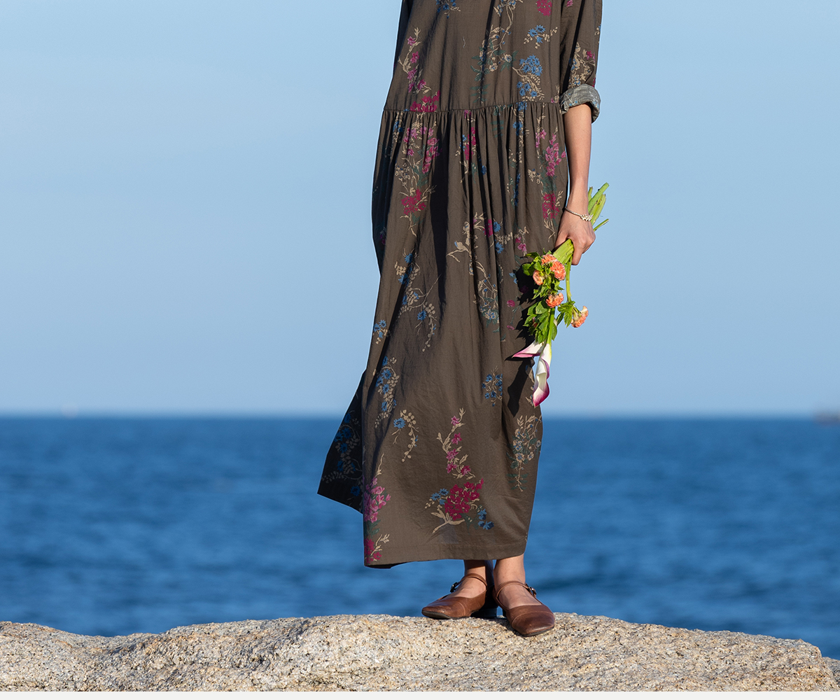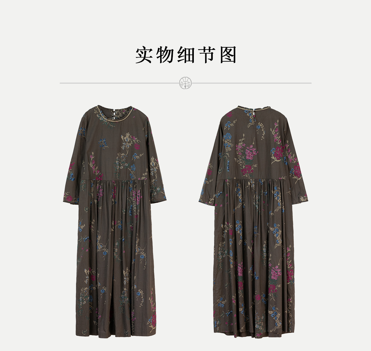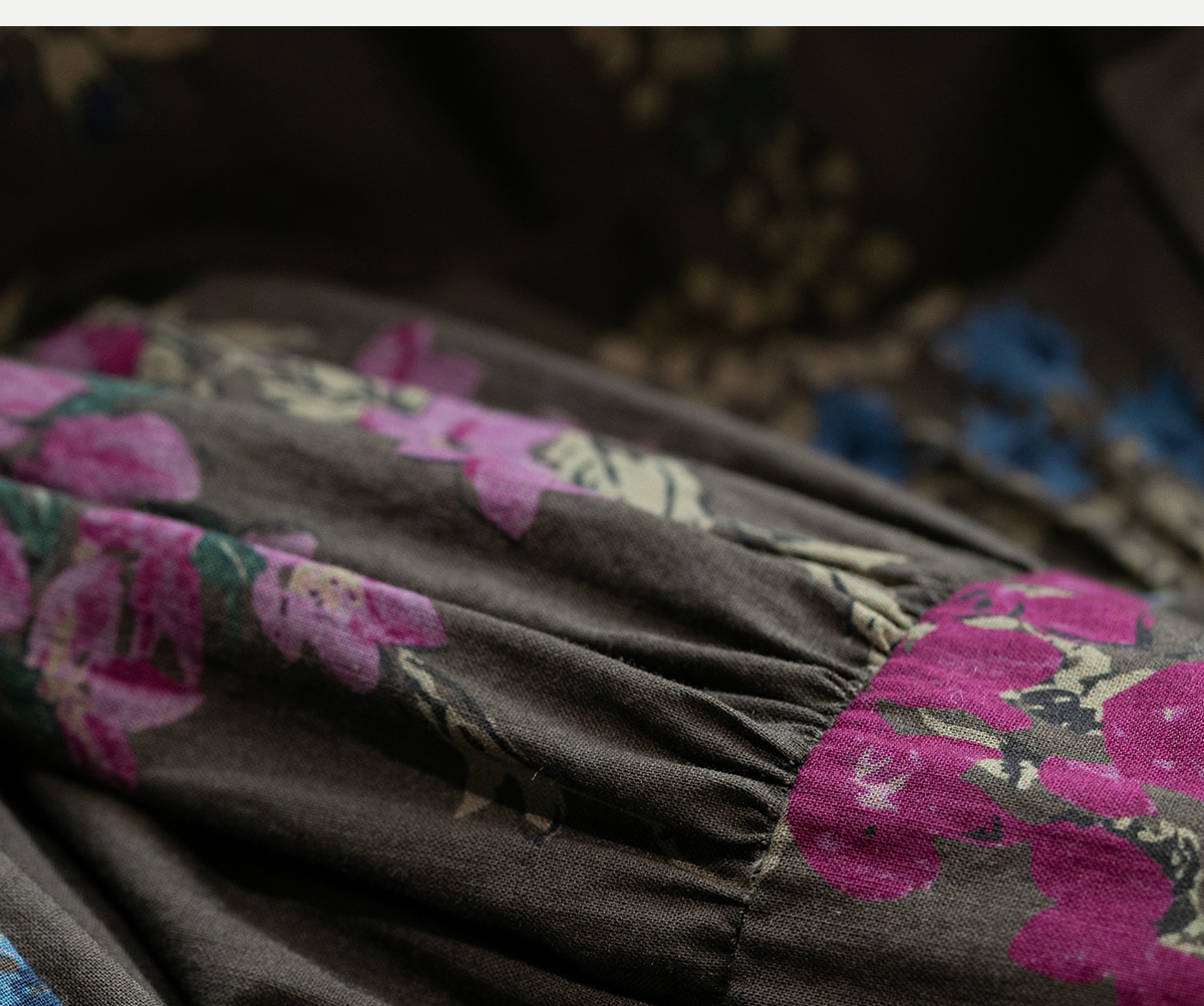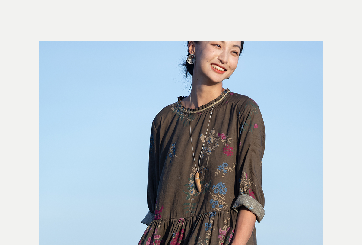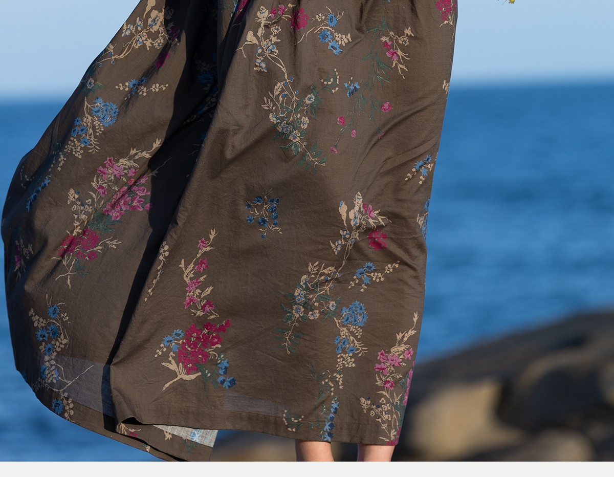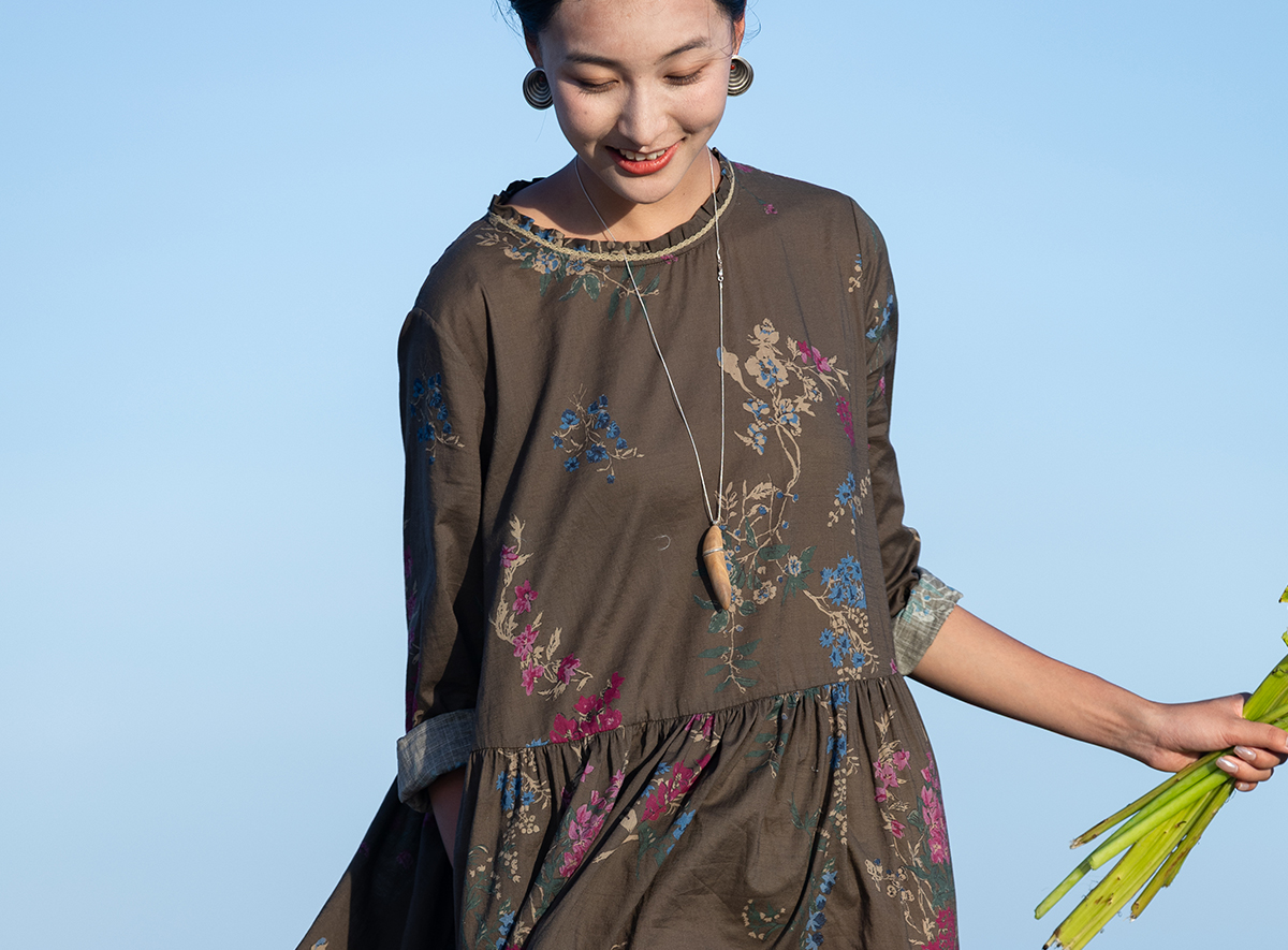牧衣游原创 印花纯棉连衣裙早秋新款文艺复古碎花气质长裙 碧梧