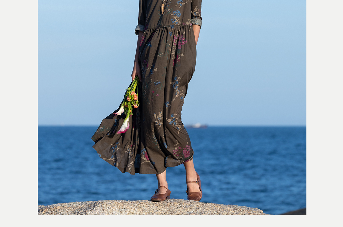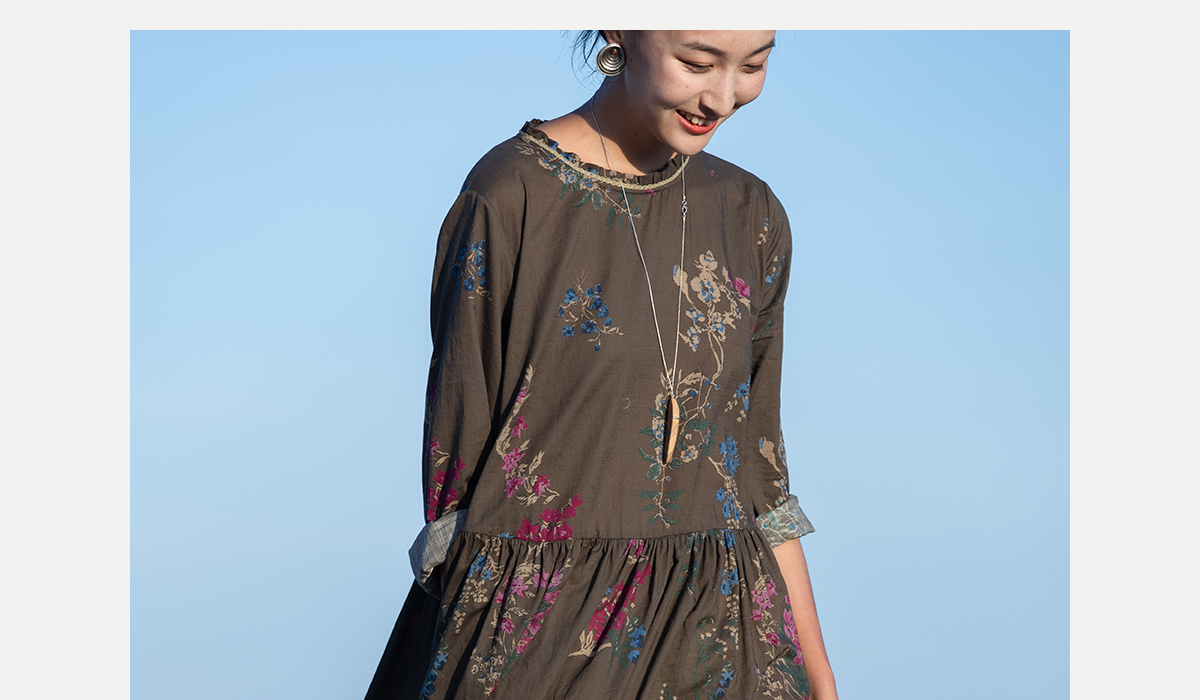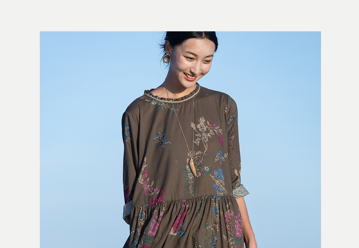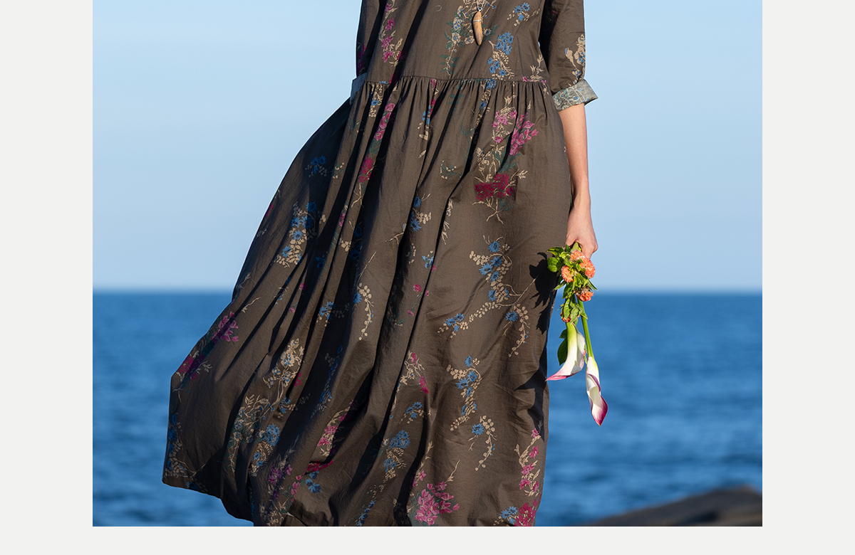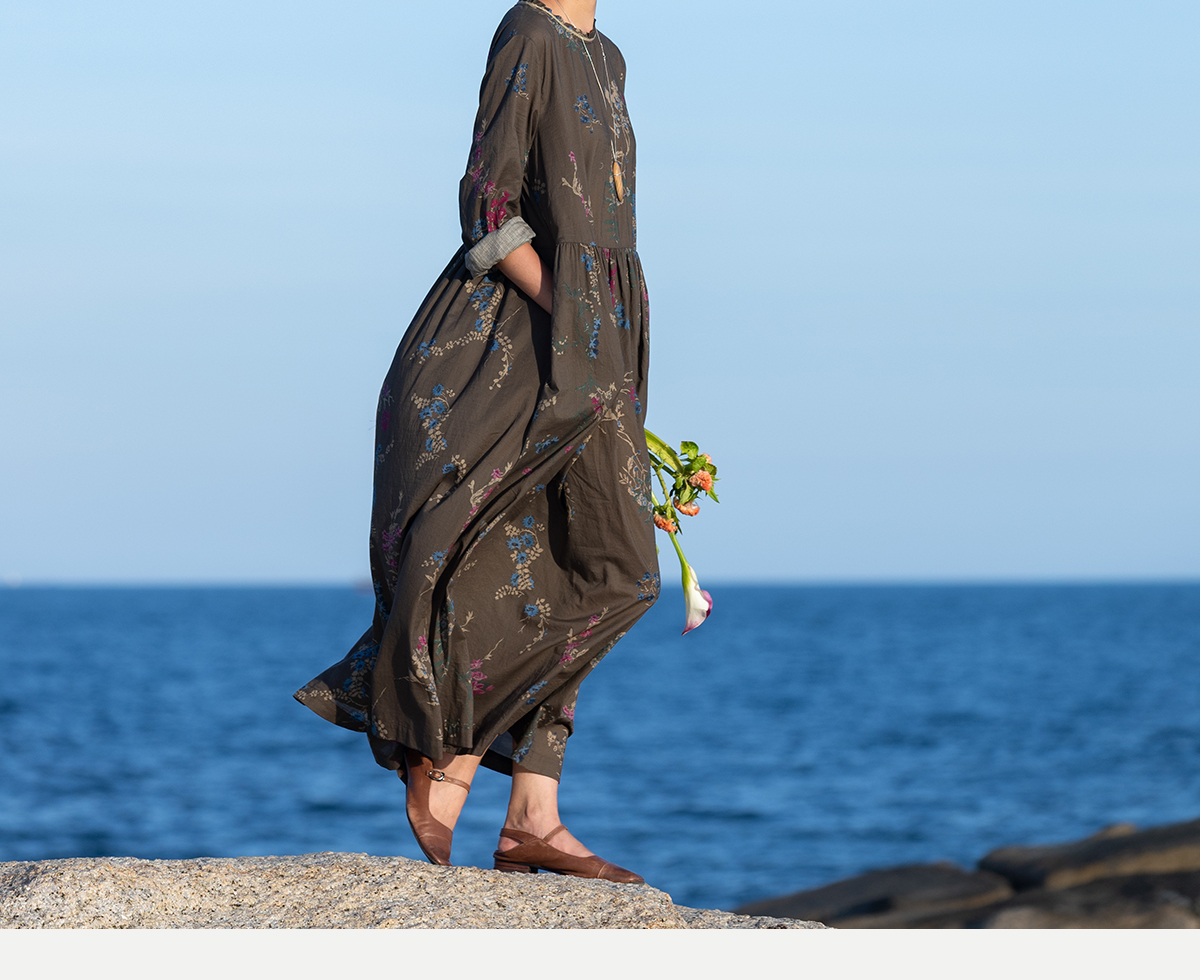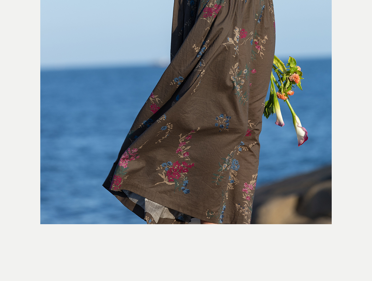 牧衣游原创 印花纯棉连衣裙早秋新款文艺复古碎花气质长裙 碧梧